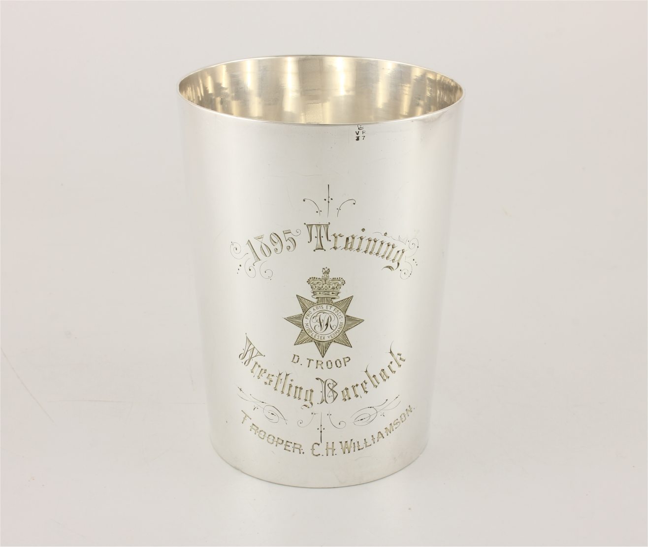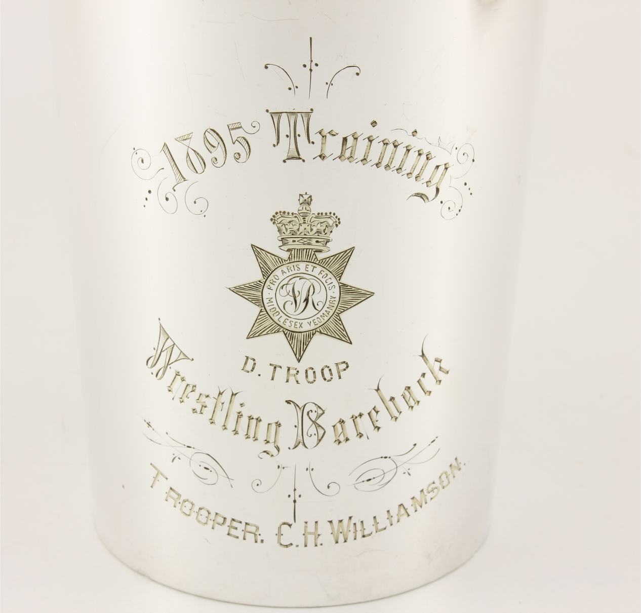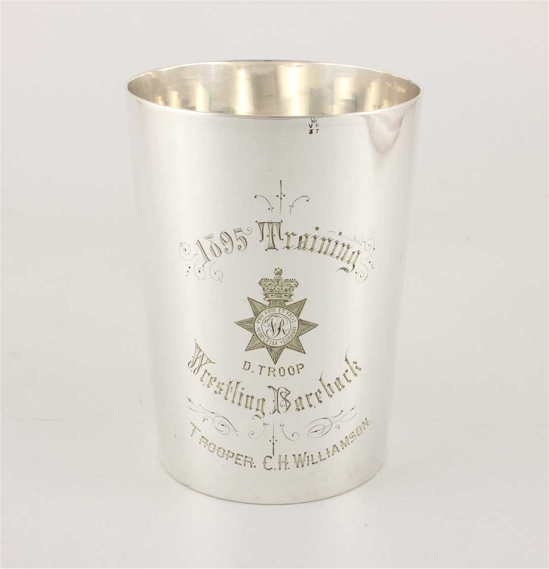 This Victorian 1 pint silver plated tankard which is by Mappin & Webb has an important connection as it was given as a trophy in 1895 and has an inscription reading: