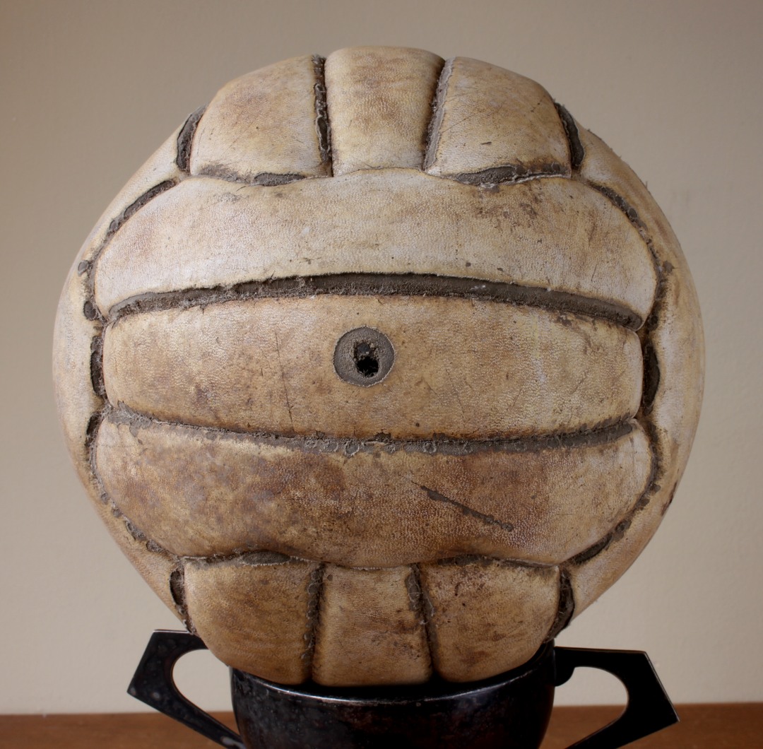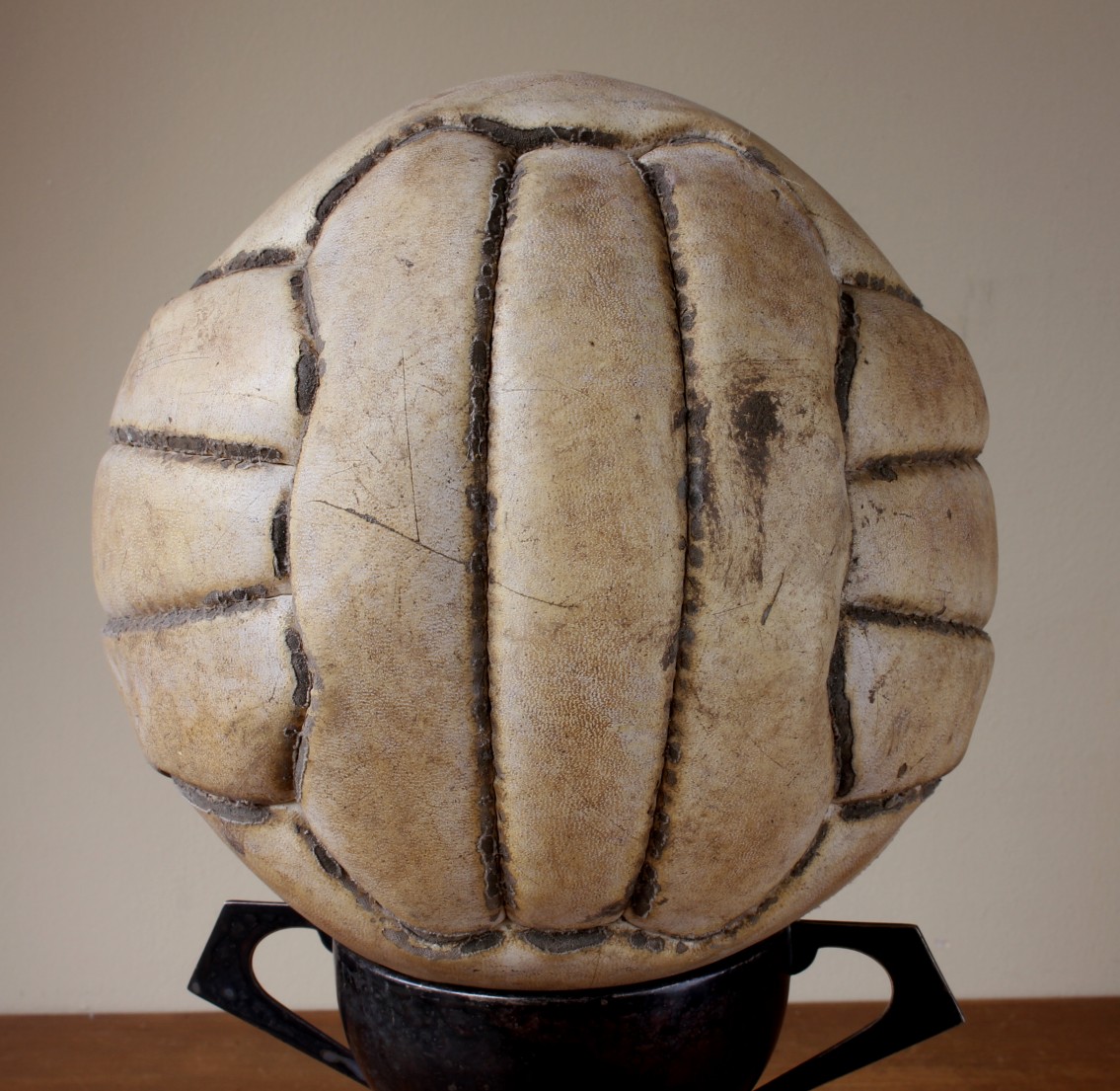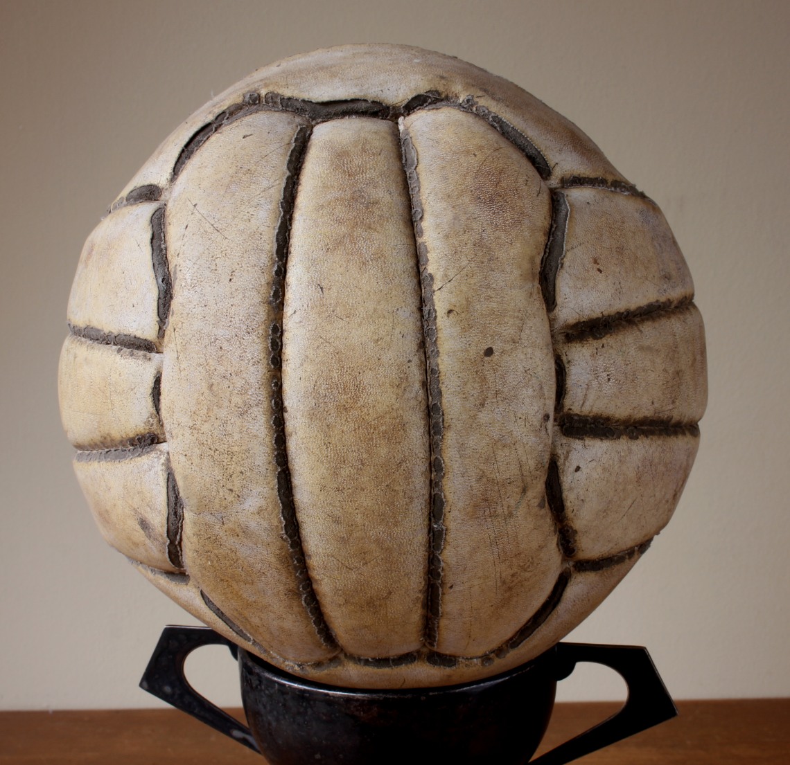 This original vintage Mitre football which has seen lots of use is made of white leather, dates from the 1960's and with all the age related wear makes a nice collectable display ball.