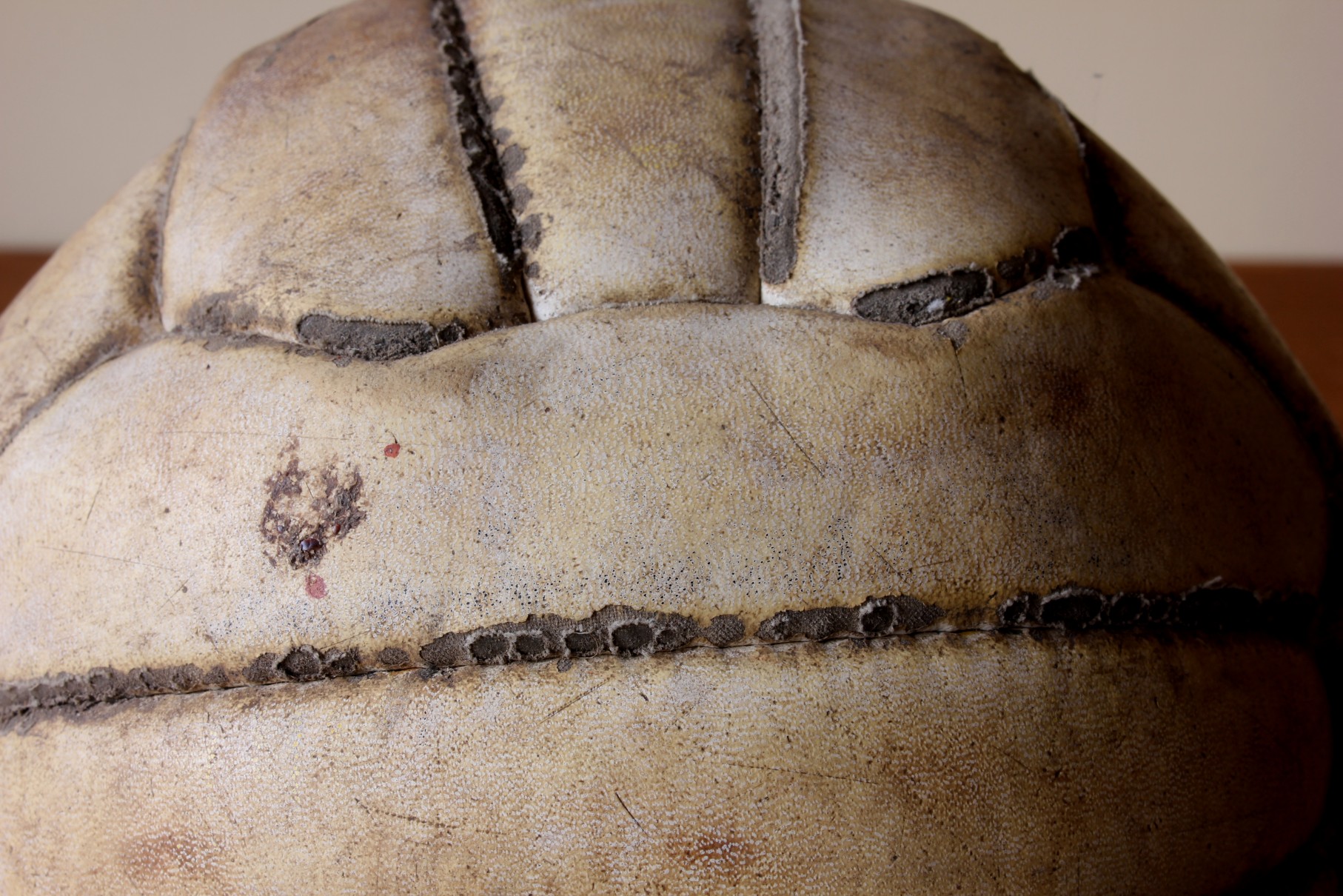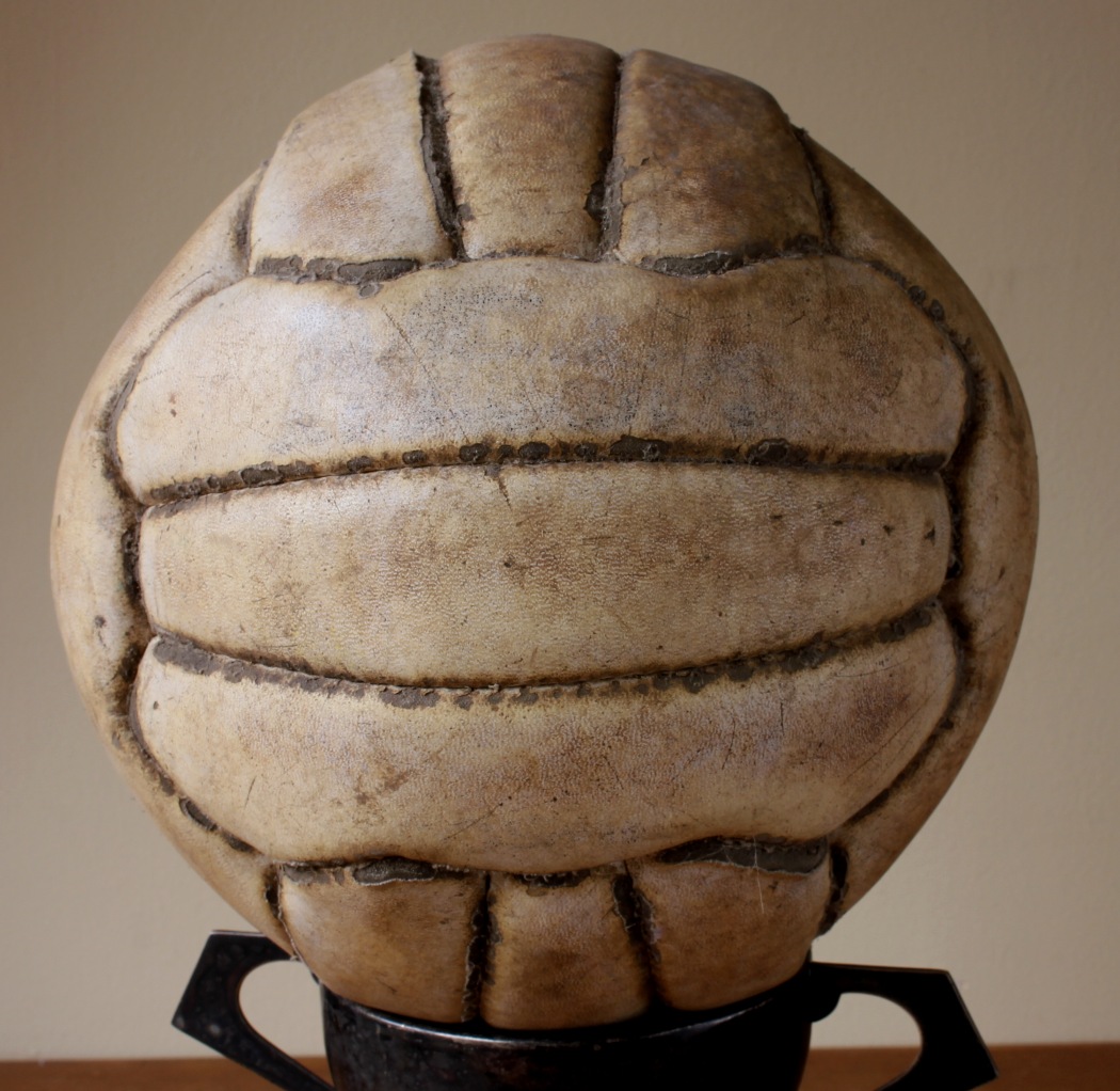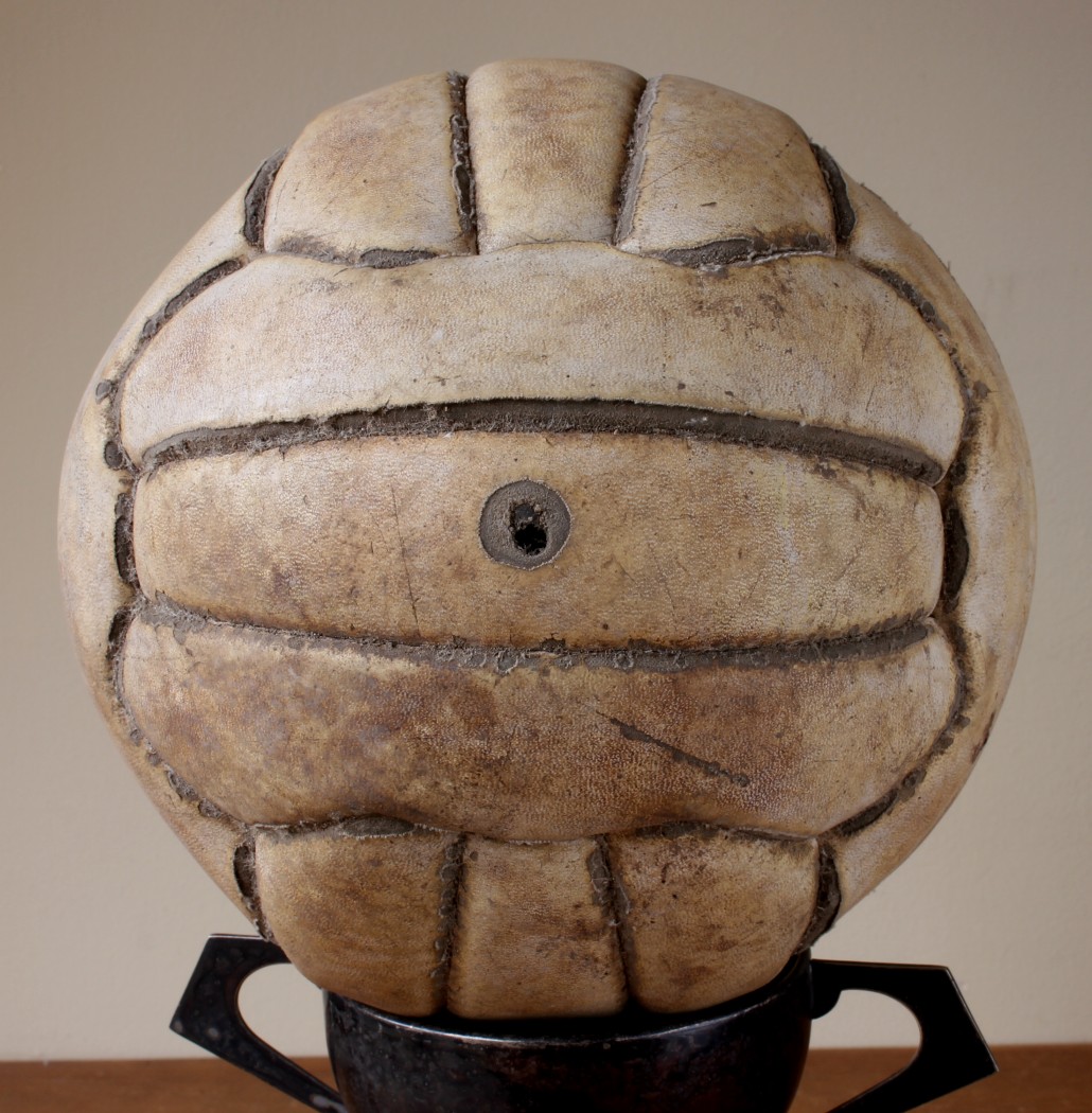 This original vintage Mitre football which has seen lots of use is made of white leather, dates from the 1960's and with all the age related wear makes a nice collectable display ball.