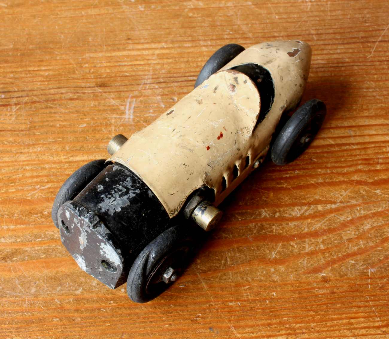The model which looks to date from the second quarter of the 20th century is well designed and has a tether car feel to it but is a home built slot car.