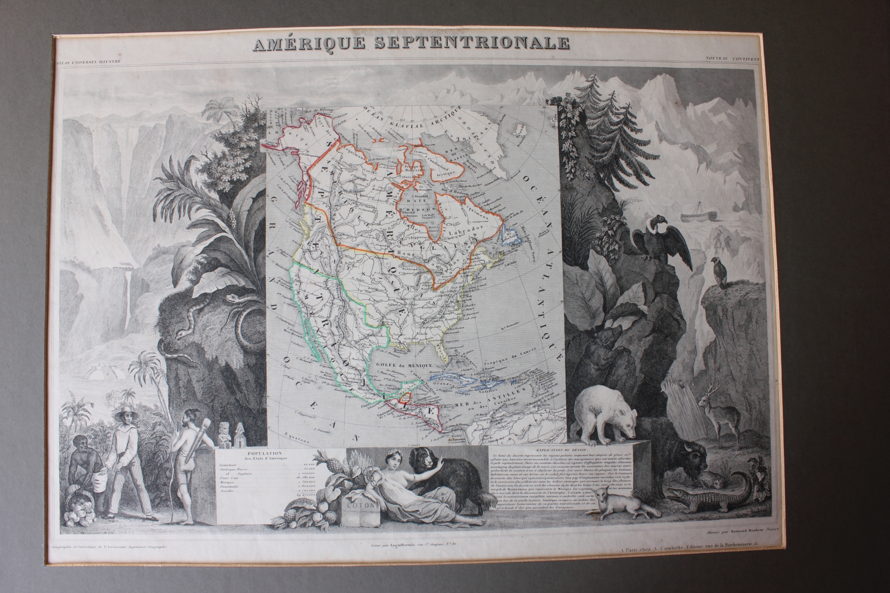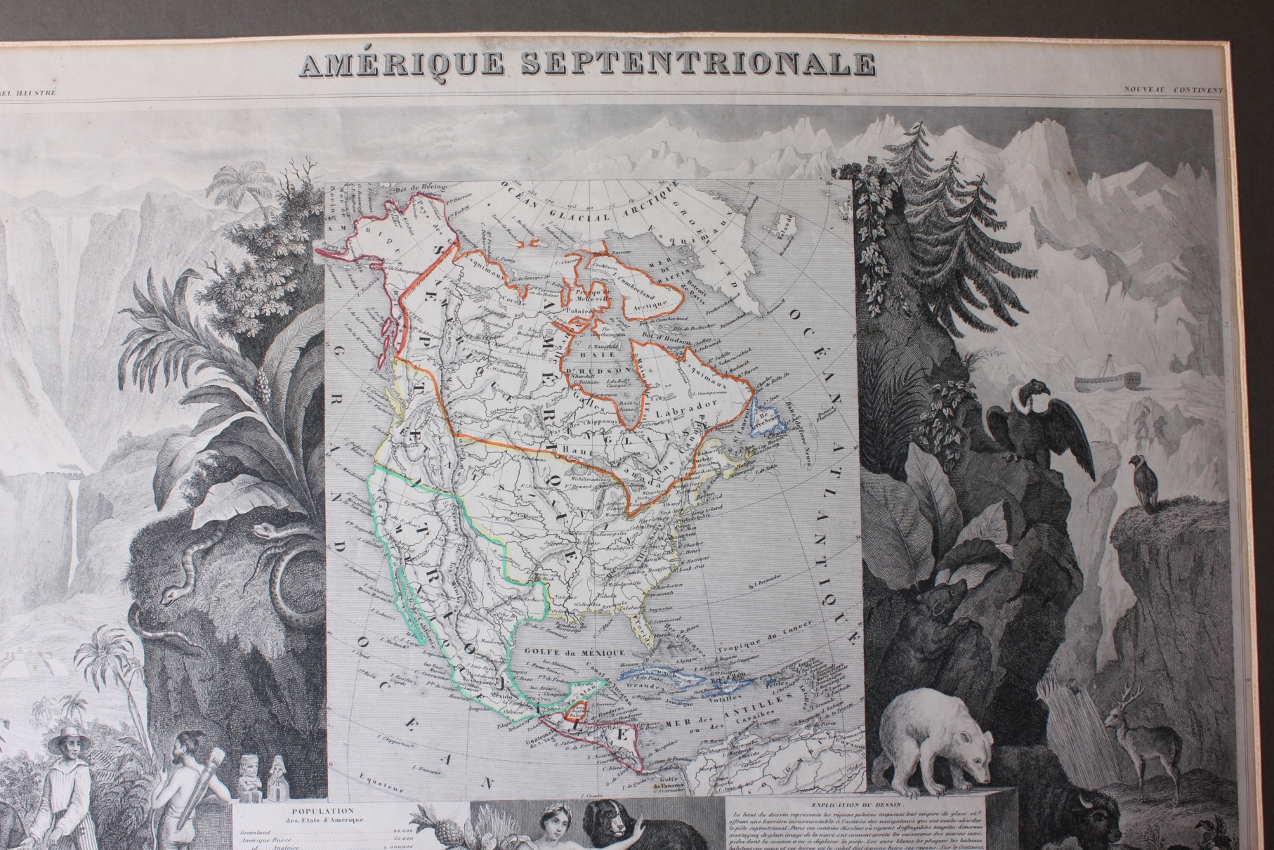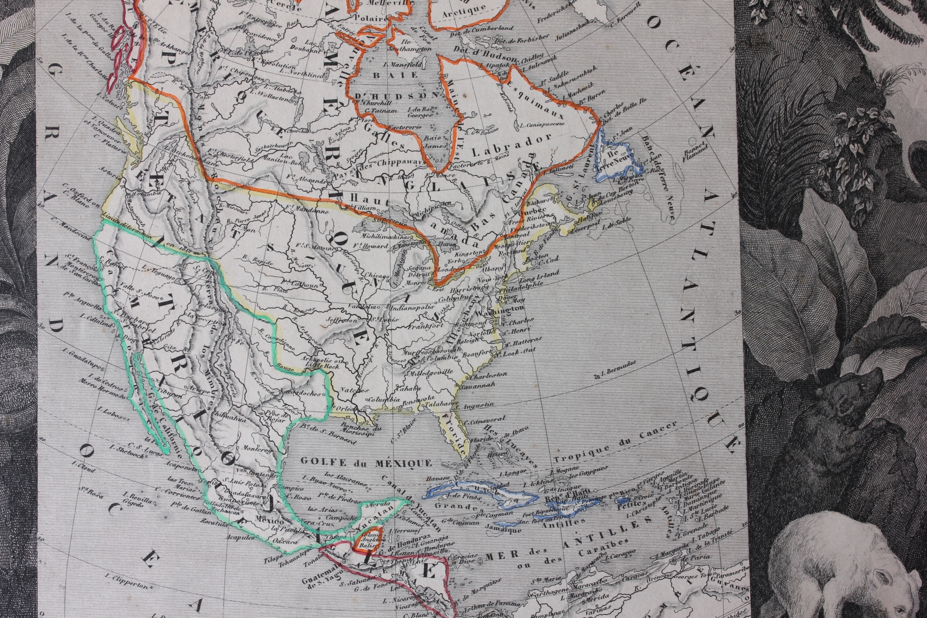This genuine, interesting and scarce antique map of North America (Amerique Septentrionale) with original hand colouring is by Victor Levasseur and is from the Atlas Universel Illustre which was published in Paris in c1845 and is one of the finest decorative atlases of the 19th century.