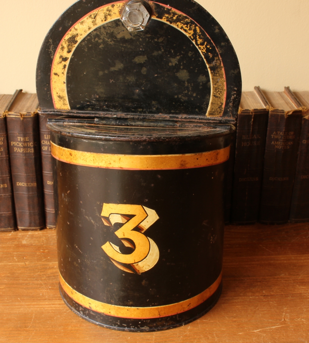 This fabulous French toleware Coffee or Tea container which dates from the late 19th century is beautifully hand painted with gold detailing and a gold number 3 to the front.