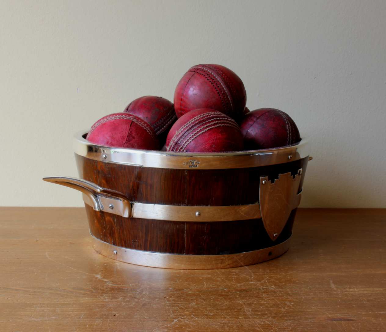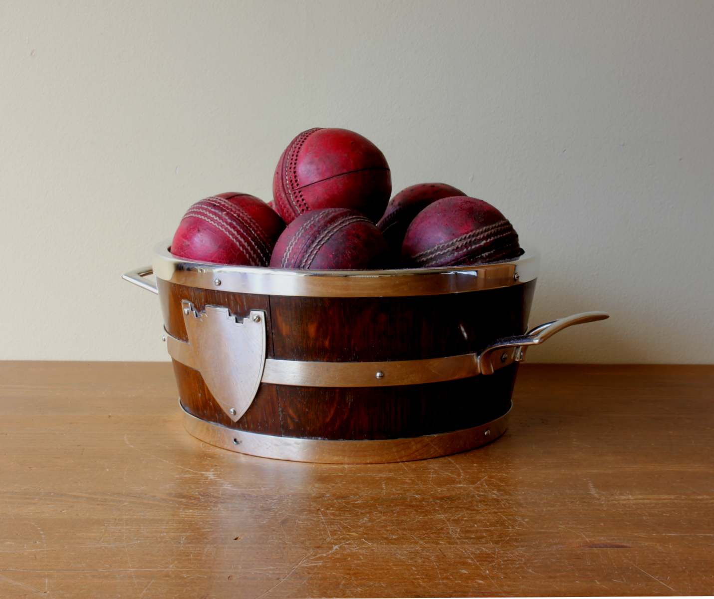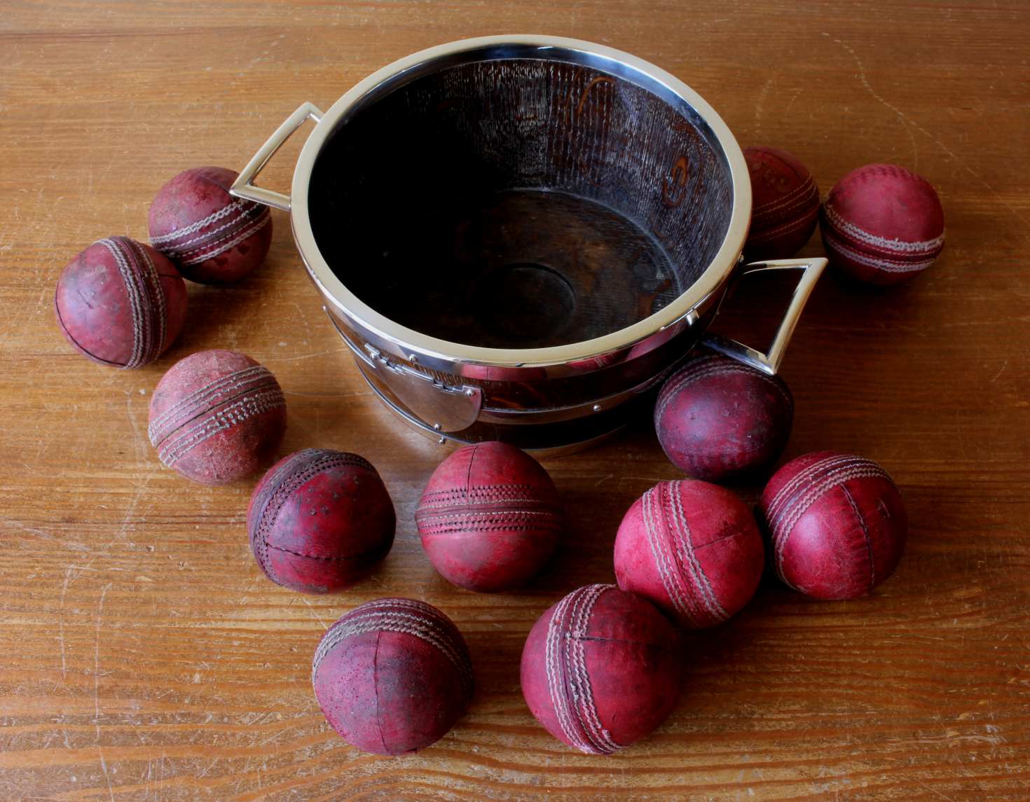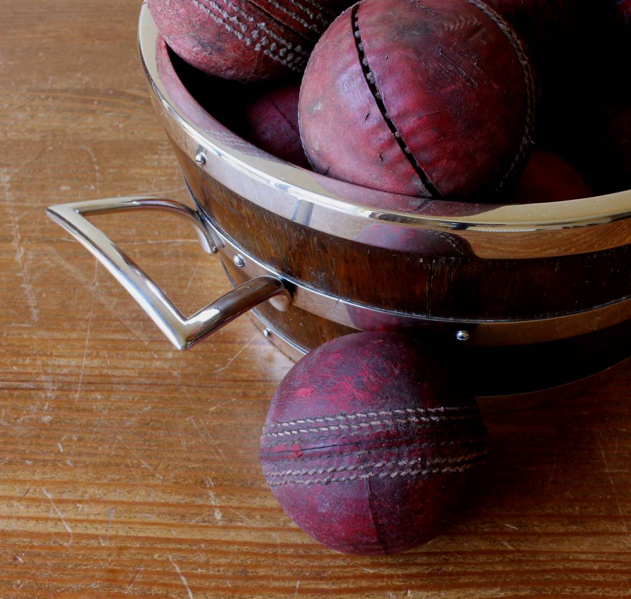 This decorative bowl is filled with 12 vintage cricket balls and makes a handsome display piece for a cricket enthusiast.