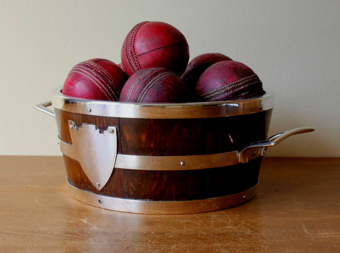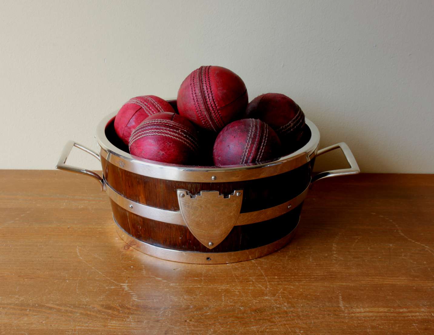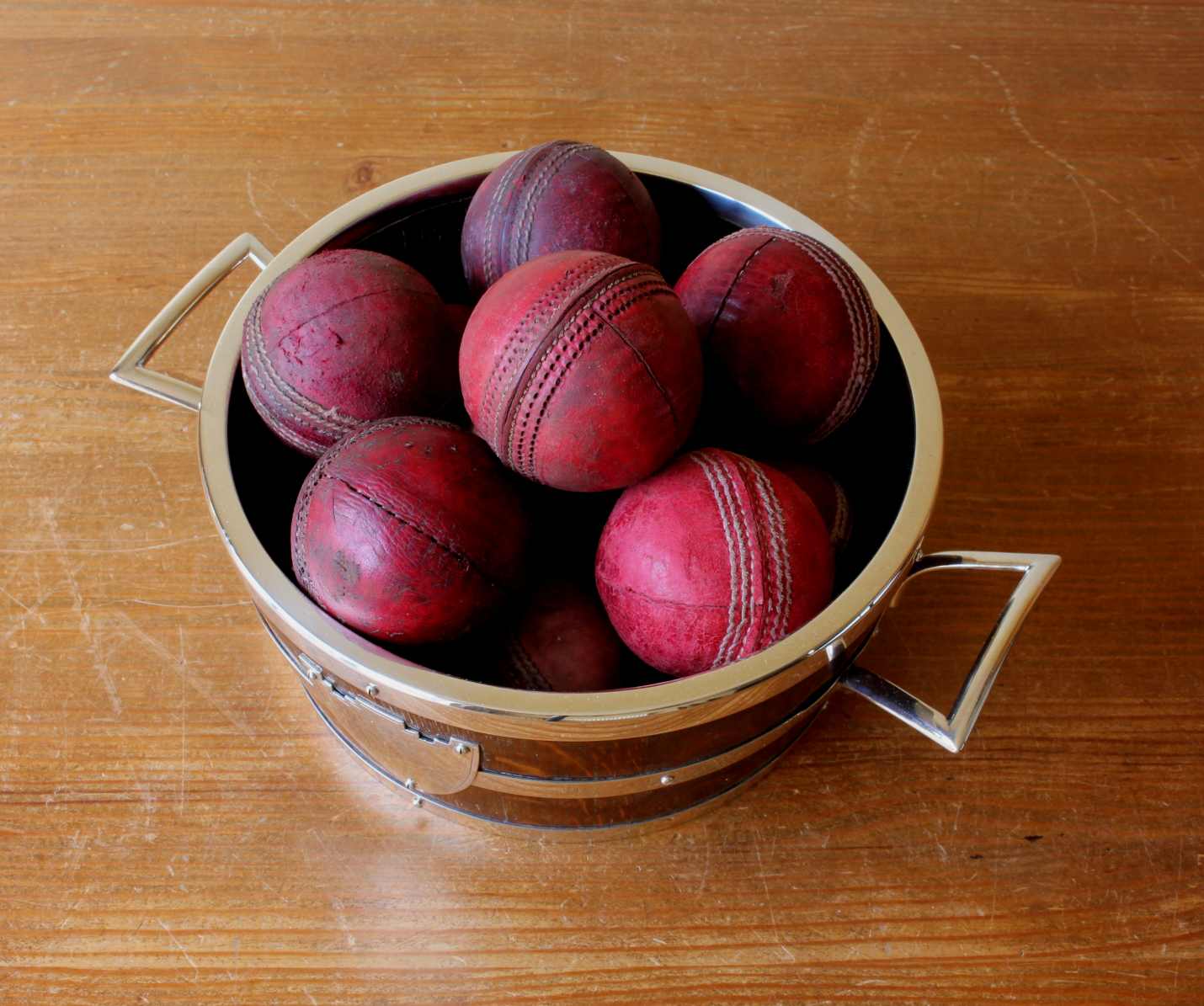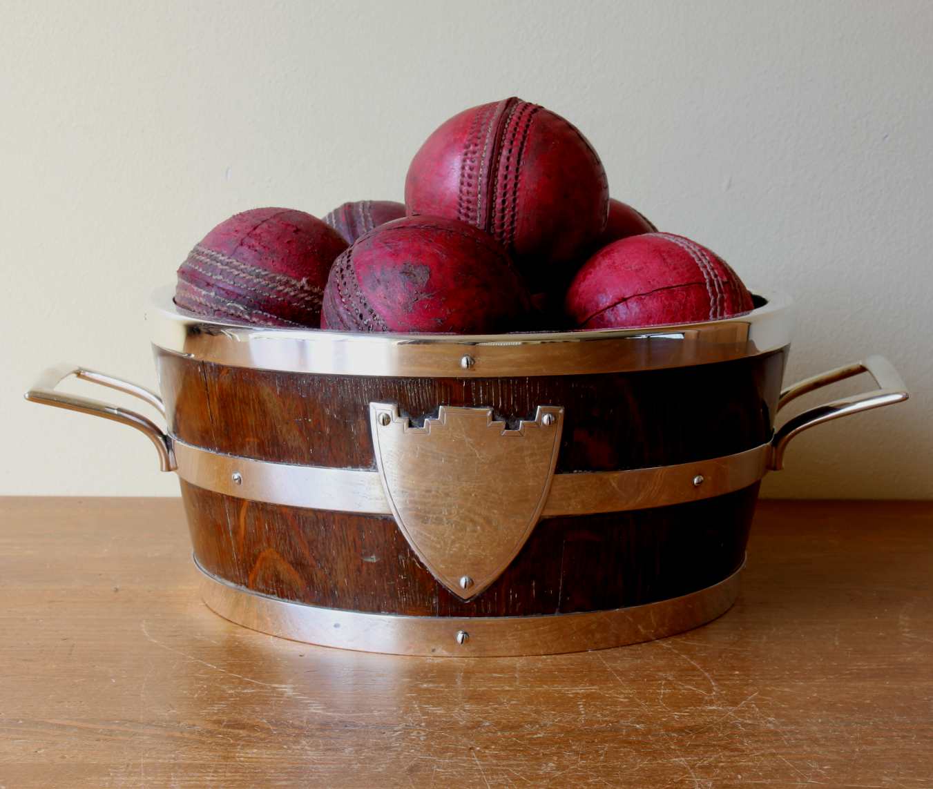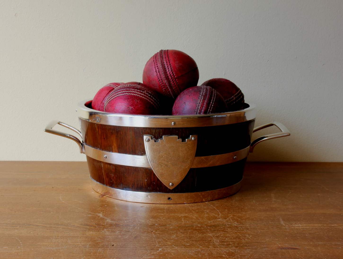 This decorative bowl is filled with 12 vintage cricket balls and makes a handsome display piece for a cricket enthusiast.