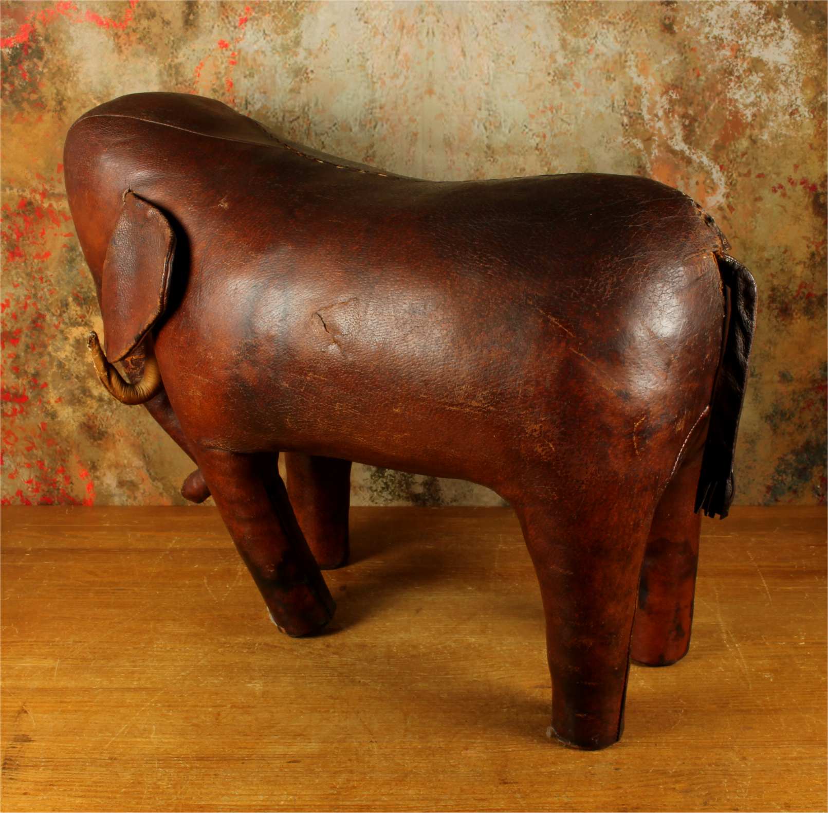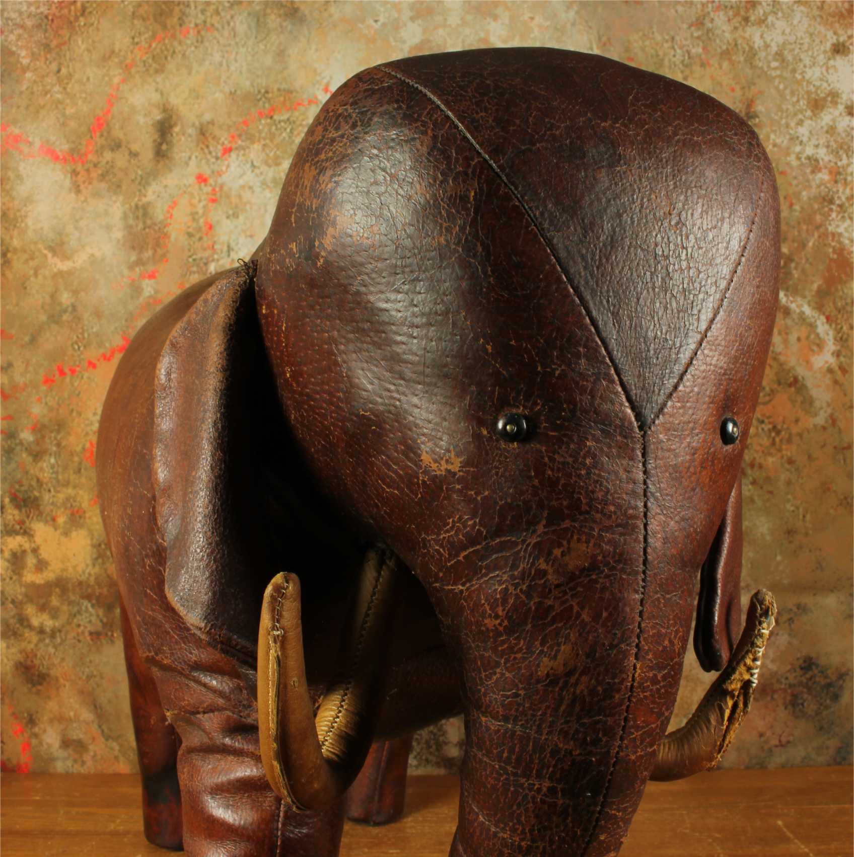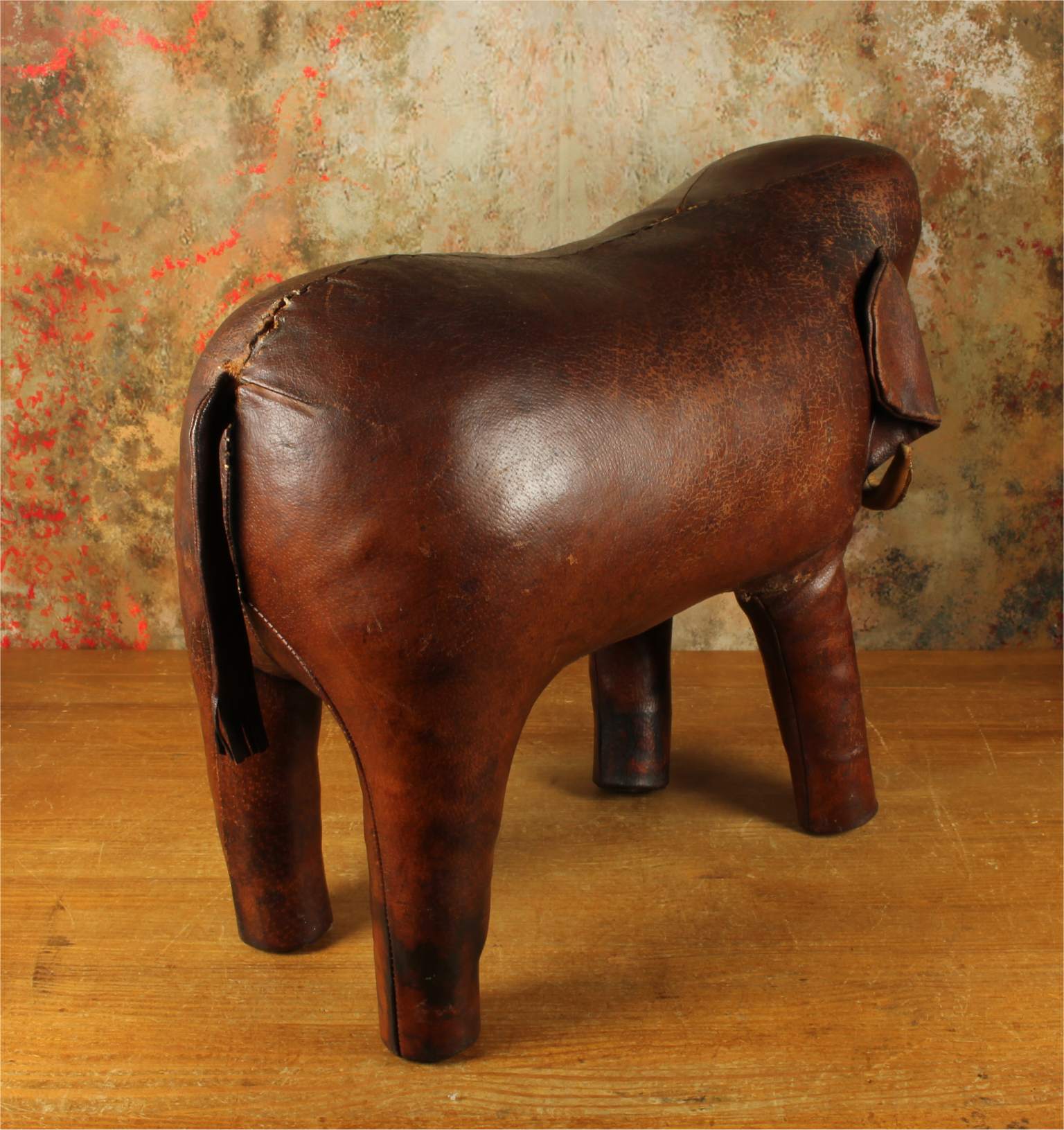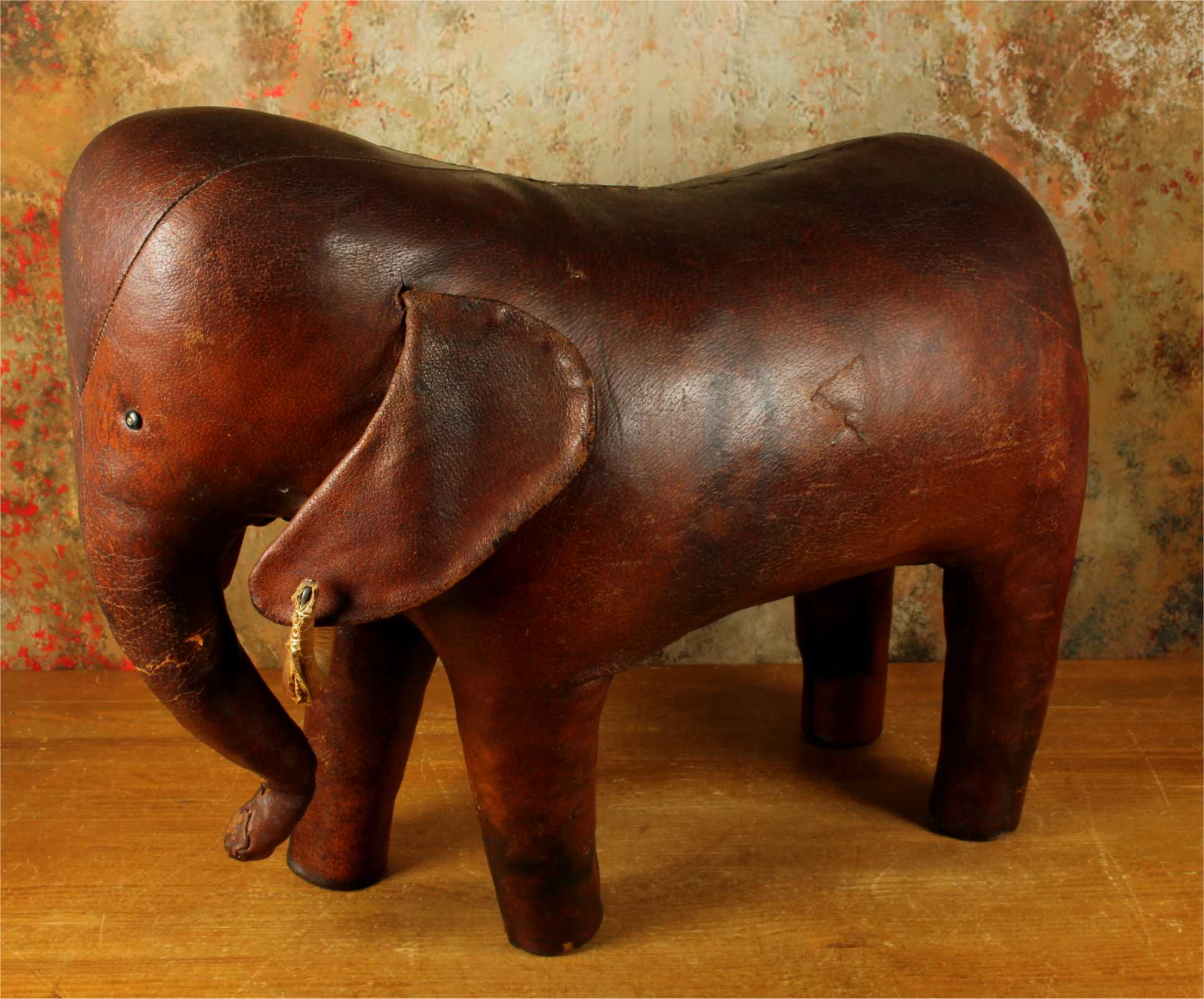 Omersa designed and made leather animals from c1959 and the elephant was the first piece he designed. These were sold exclusively through Liberty of London in the UK and Abercrombie and Fitch in USA.