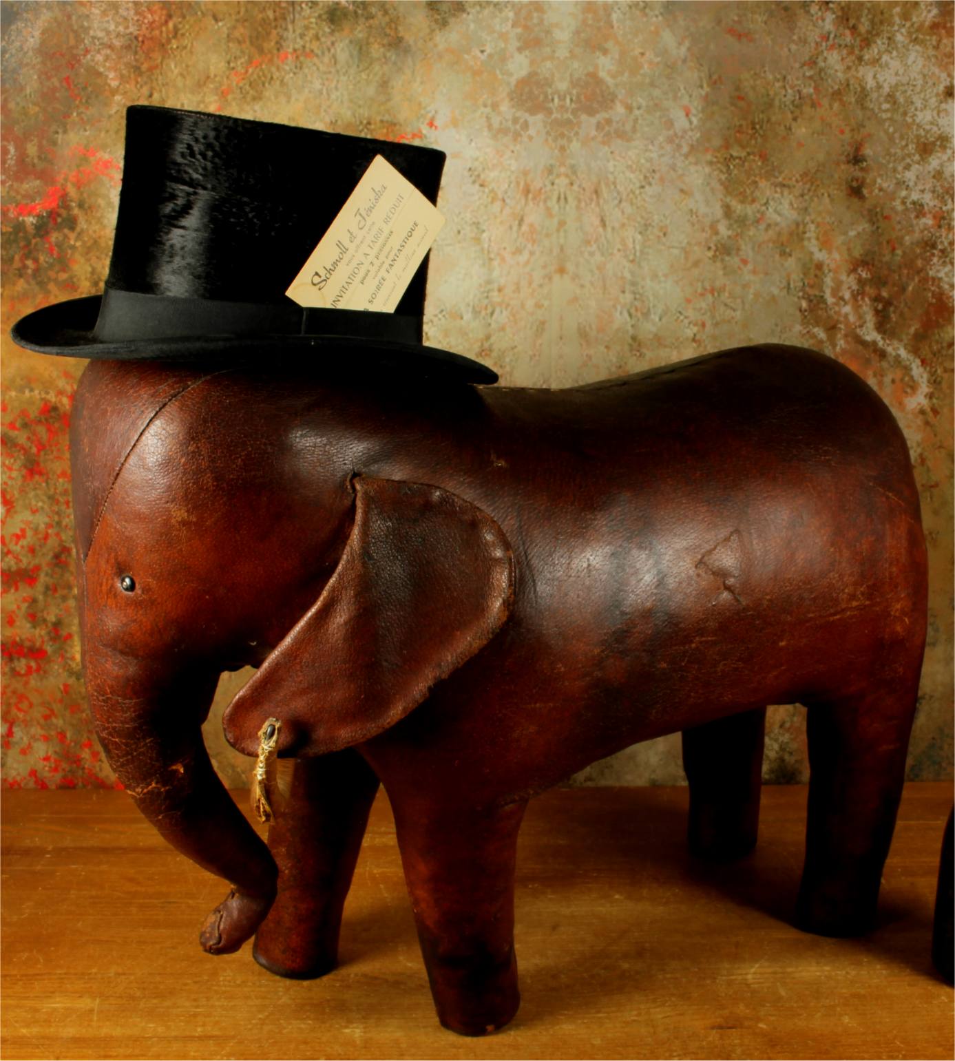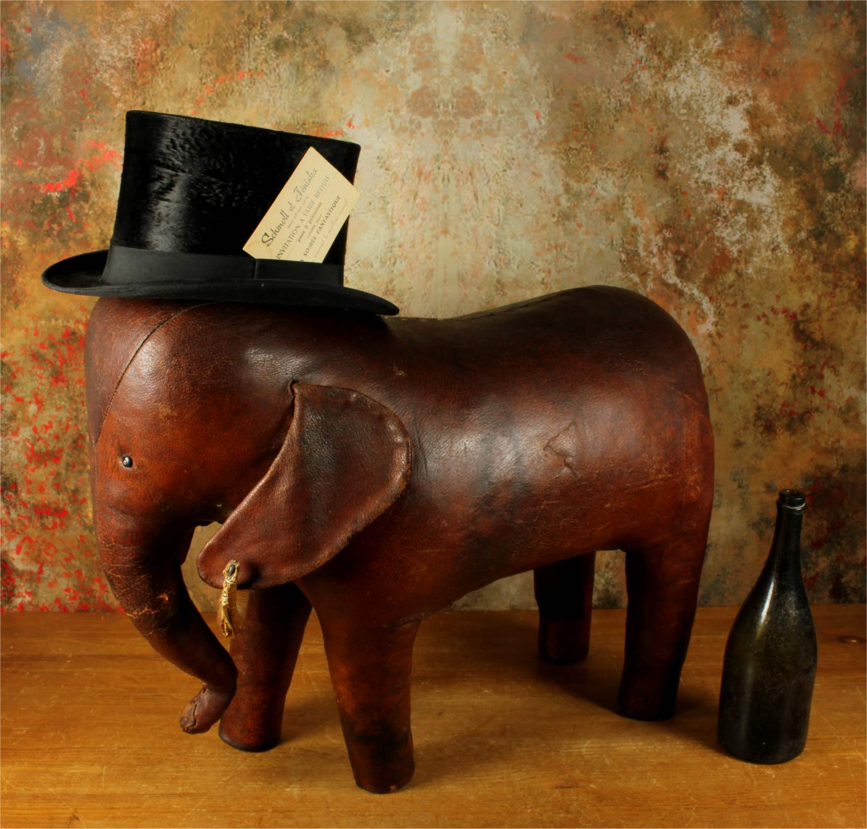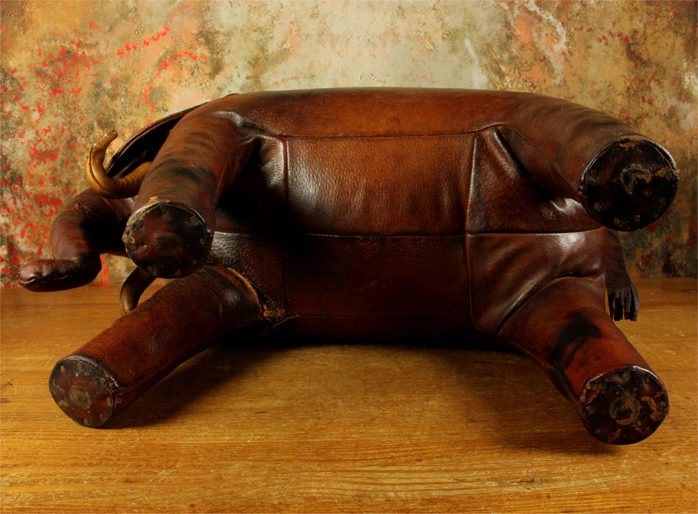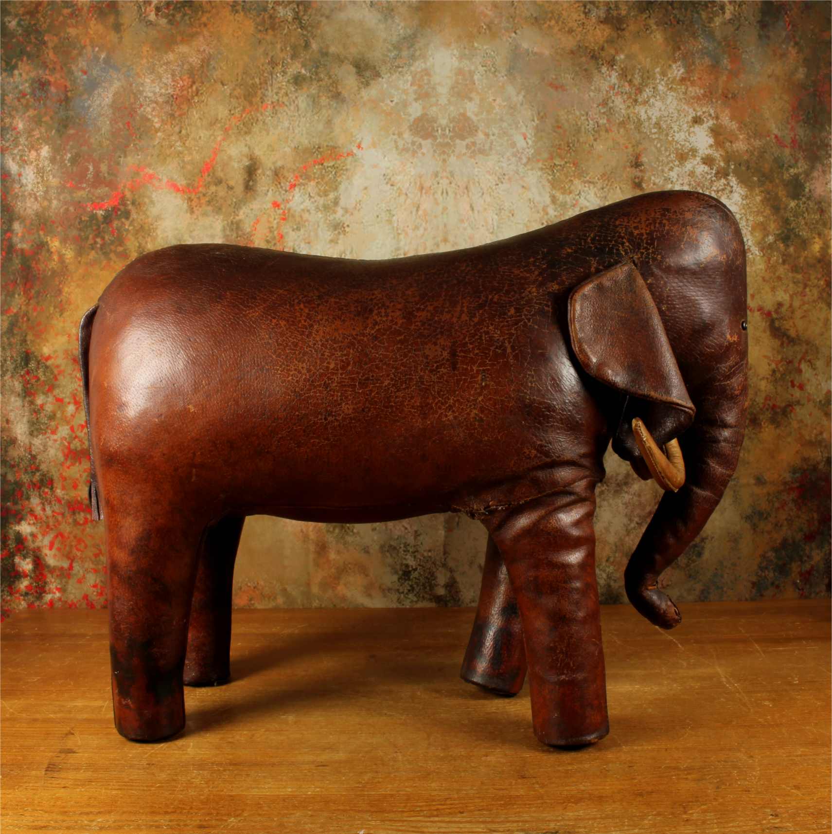 Omersa designed and made leather animals from c1959 and the elephant was the first piece he designed. These were sold exclusively through Liberty of London in the UK and Abercrombie and Fitch in USA.