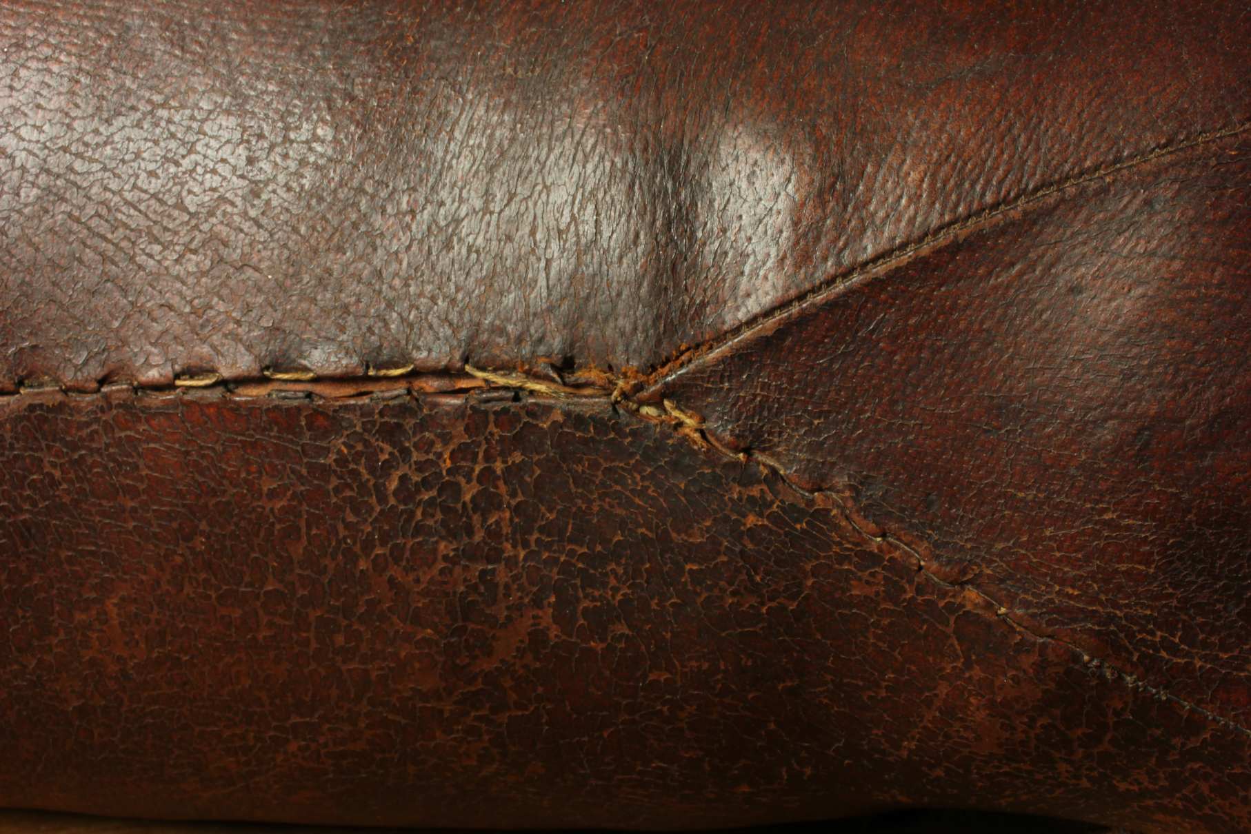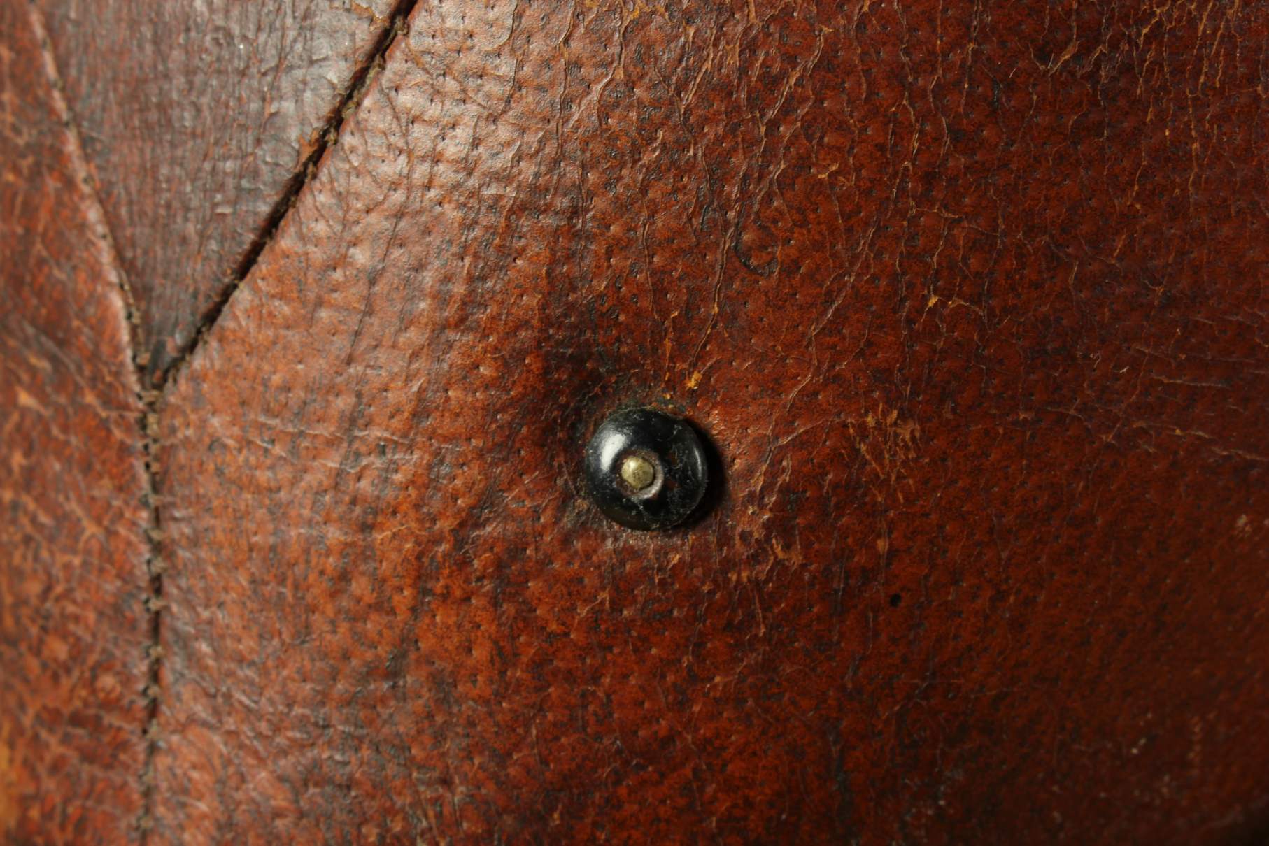 A very nice vintage piece that has is a beautiful dark brown colour with a wonderful patina. There is some damage to the leather and legs but still a lovely decorative piece with great character.
