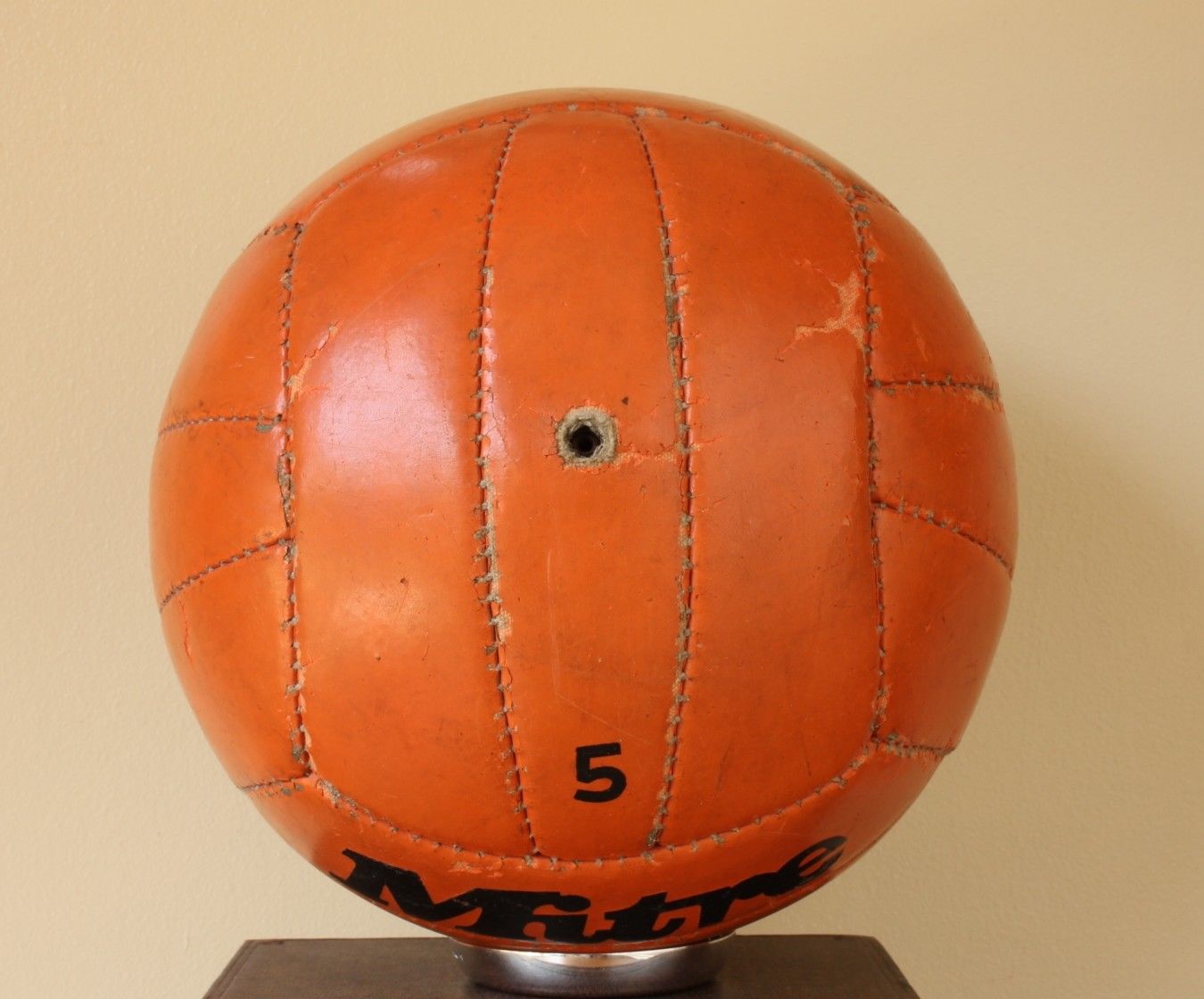 This original 1980's Mitre Multiplex Orange Football has 18 panels and features the Mitre Logo.