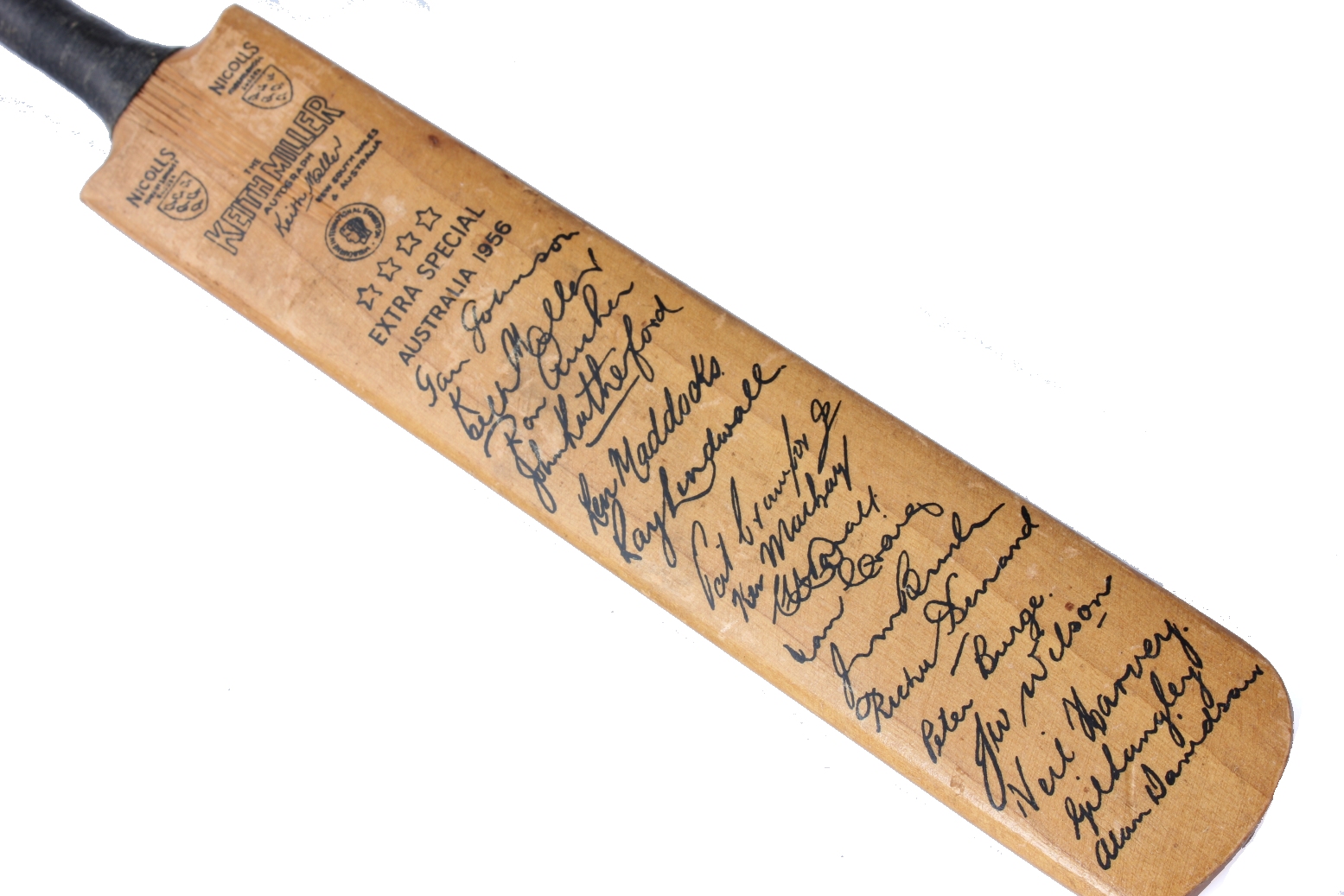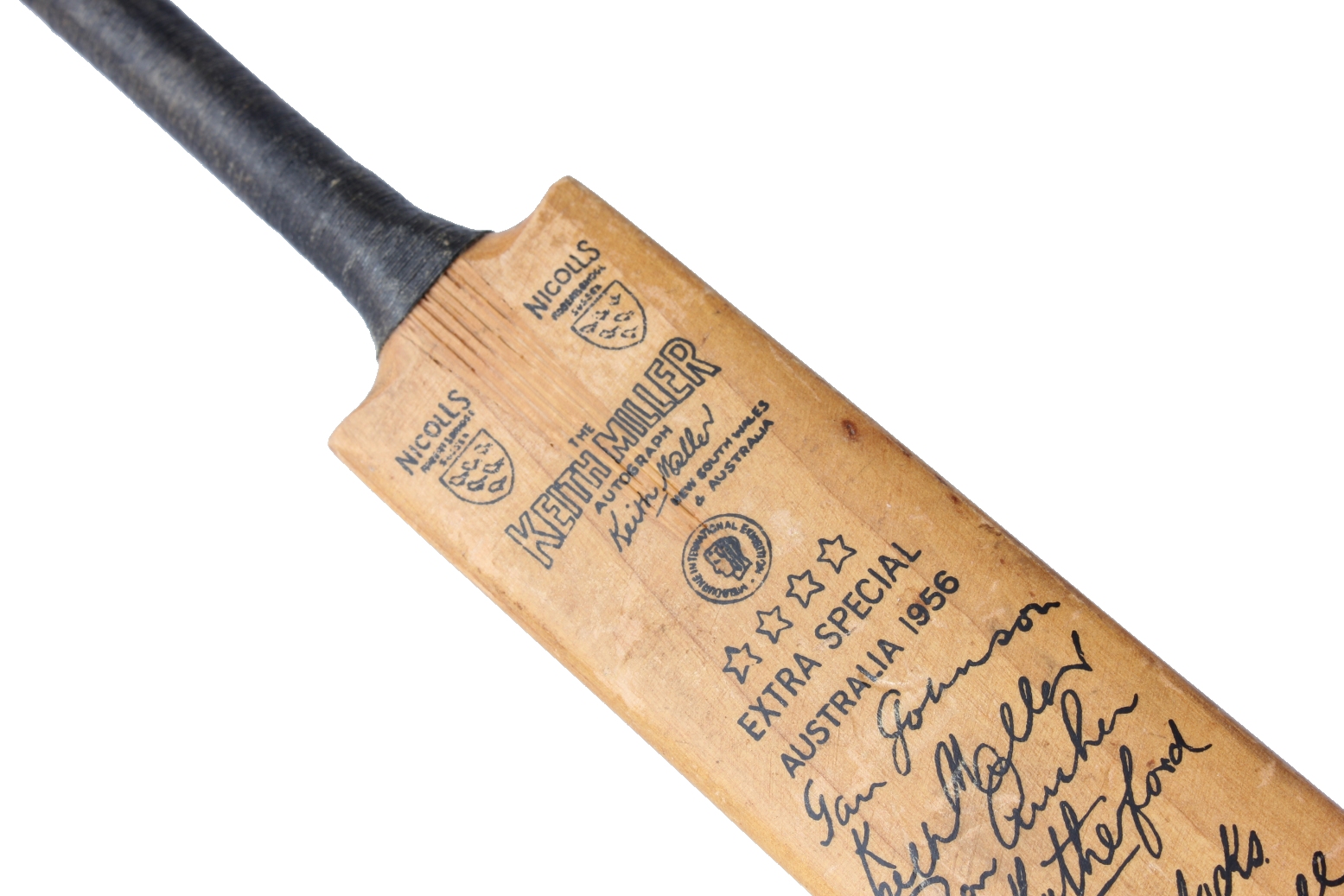 A Miniature Nicolls The Keith Miller Autograph Extra Special Cricket Bat. Australia 1956.