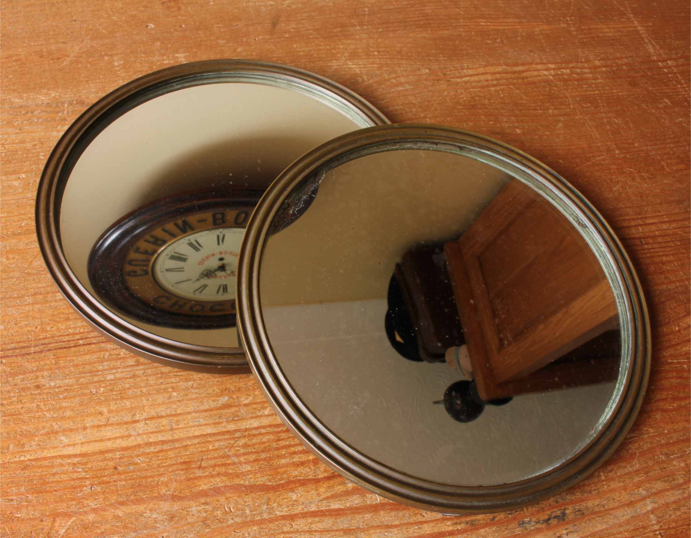 Condition: Very good original antique condition with light signs of use in keeping with age. Some foxing to the mirror plate. Some tiny bruises and marks to the frames as expected. Some staining to card backing. Please see pictures.