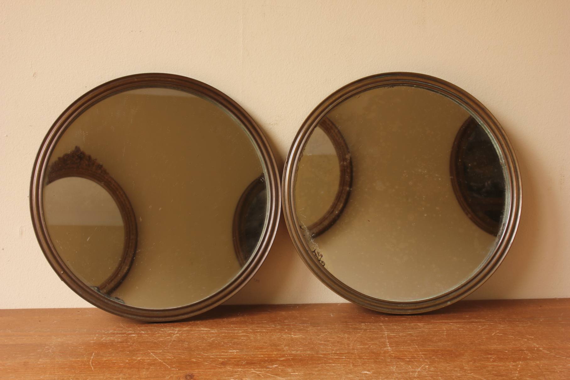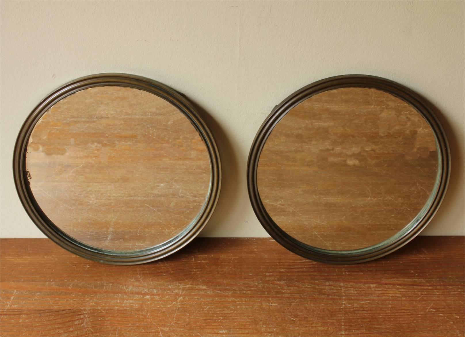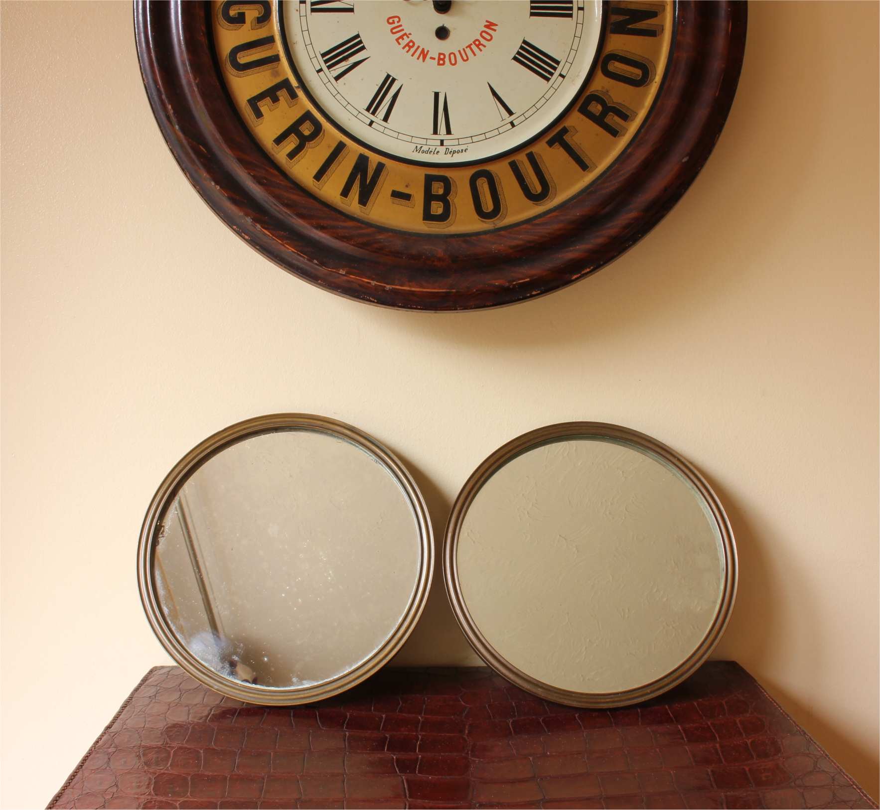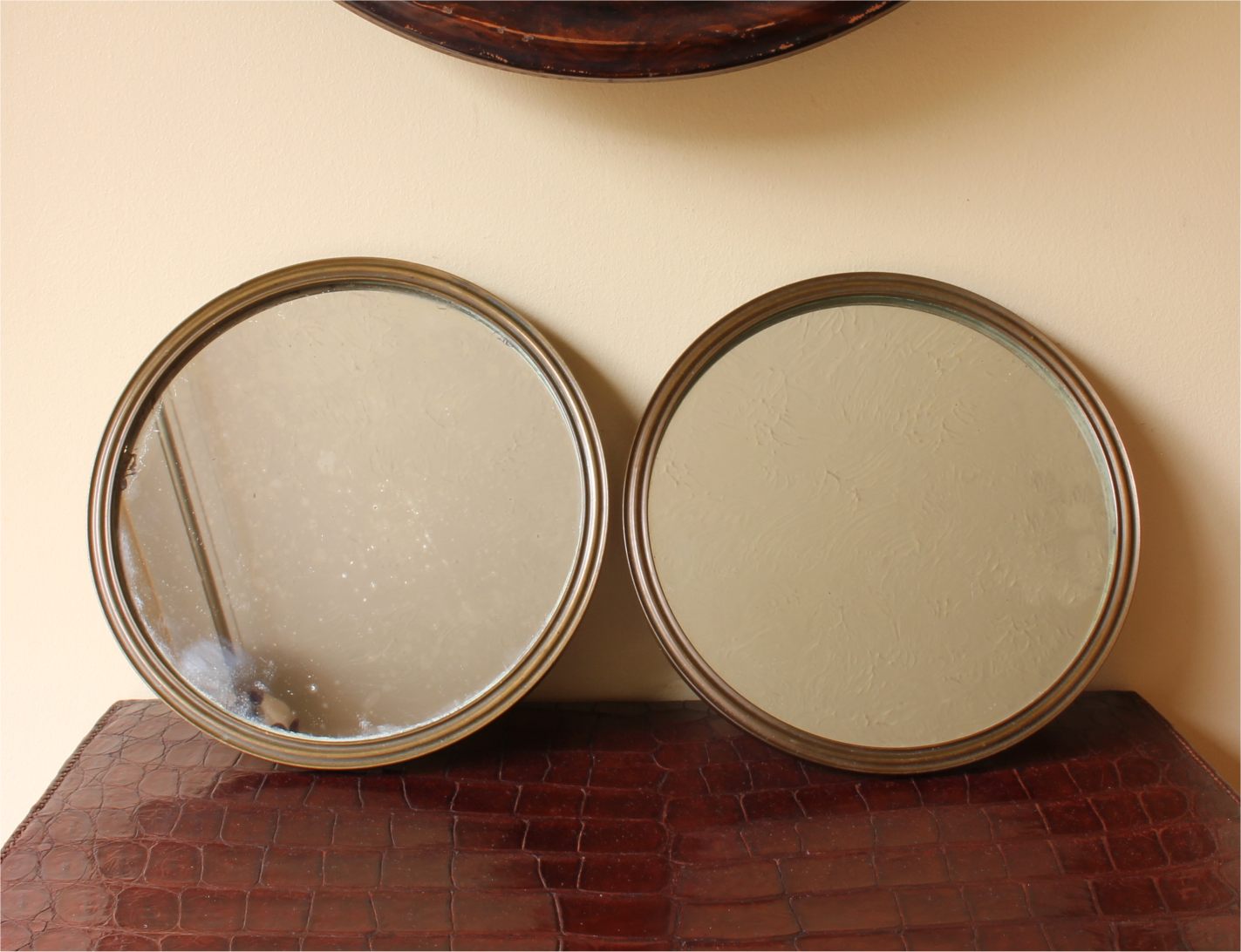 These two round mirrors have a stylish grooved design and can be hung on the wall from their chains which are fitted to the reverse.
