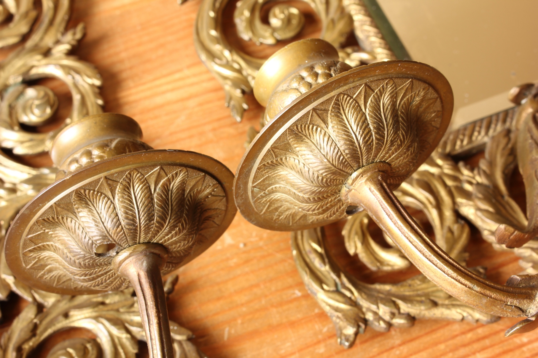 Condition: Excellent used antique condition with signs of use in keeping with age. Frames have not been over polished so have some natural tarnishing, a nice patina and remains of gilt. Some foxing, light fleck marks to mirror. They had been converted to electric at one time but the wires have now been removed so there are some holes in the sconces. Please see pictures.