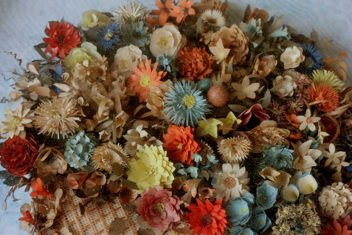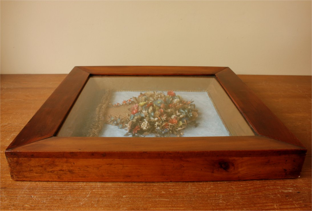 This charming antique diorama of a basket of flowers which dates from the 19th century has been skilfully and lovingly handmade using small pieces of cut coloured paper and lace.
