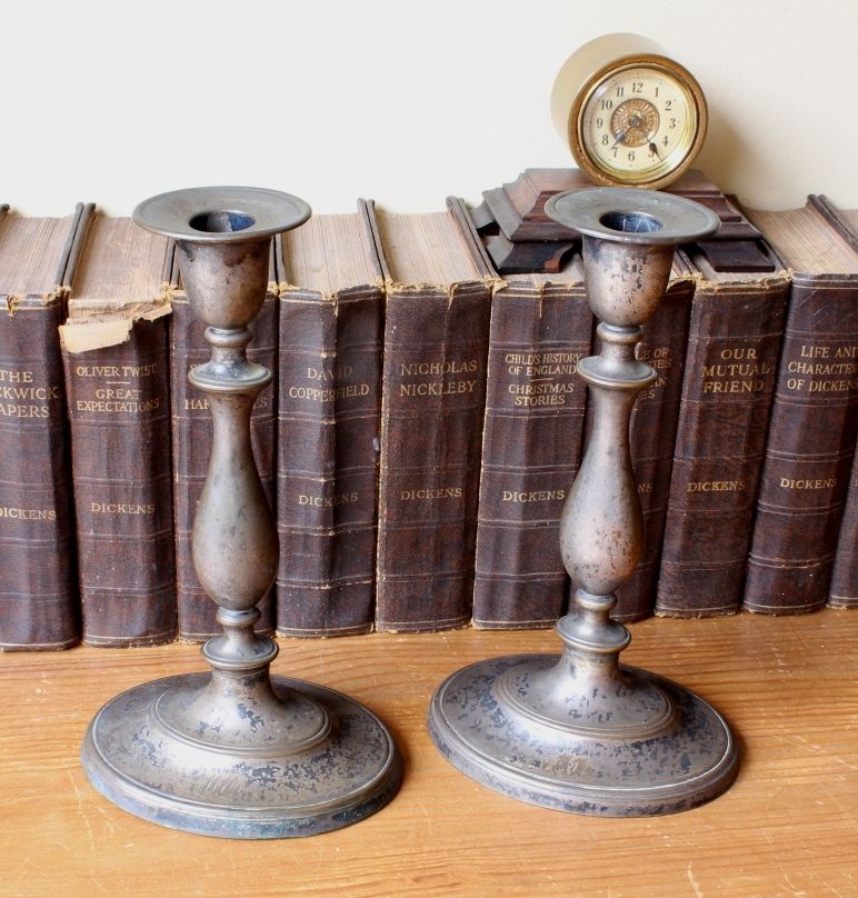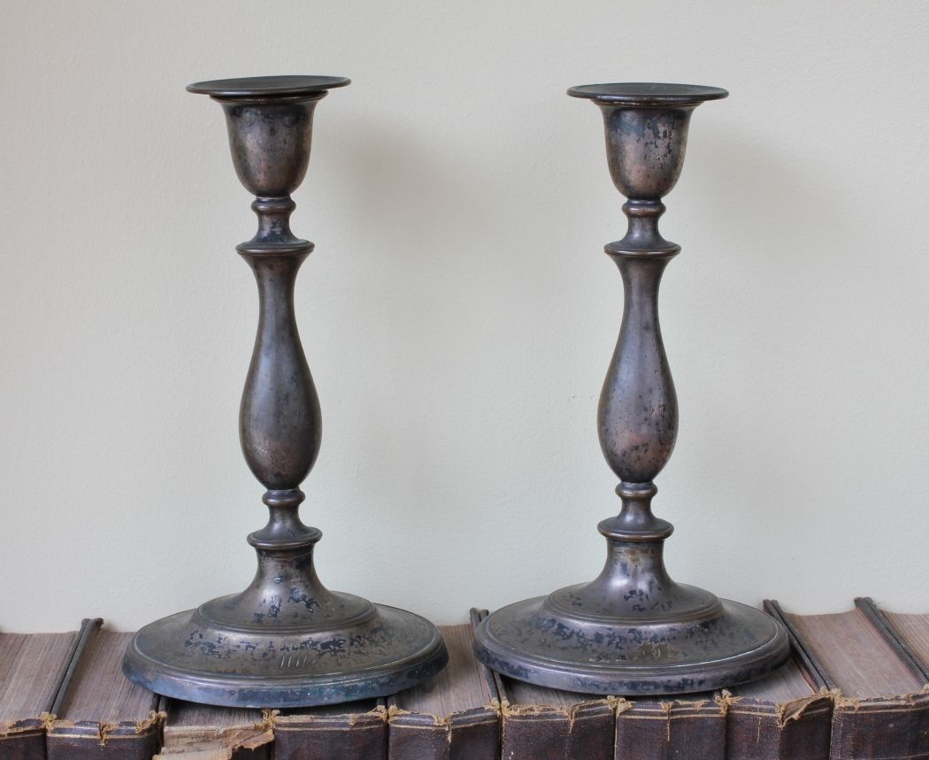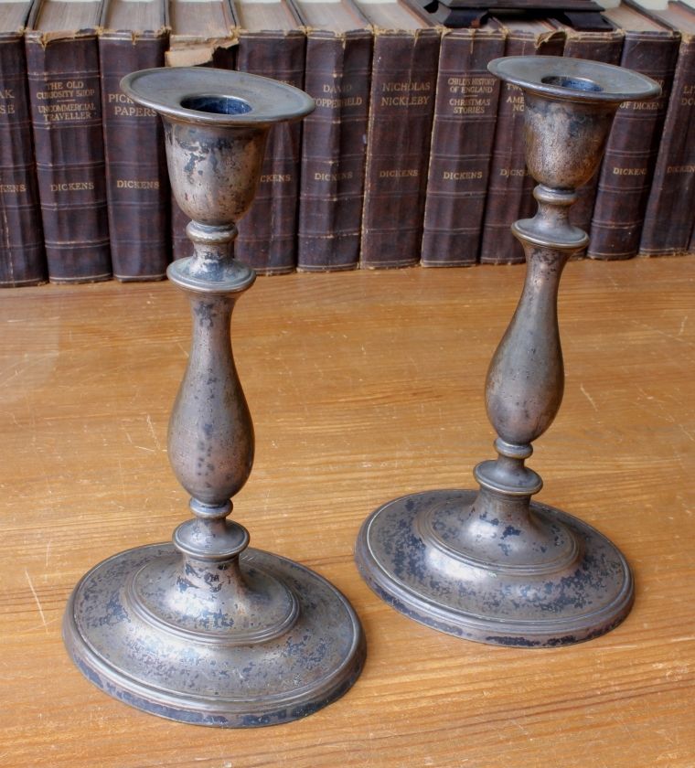 A very stylish and decorative pair of antique silver plated Candlesticks in uncleaned distressed condition that look stunning on display.