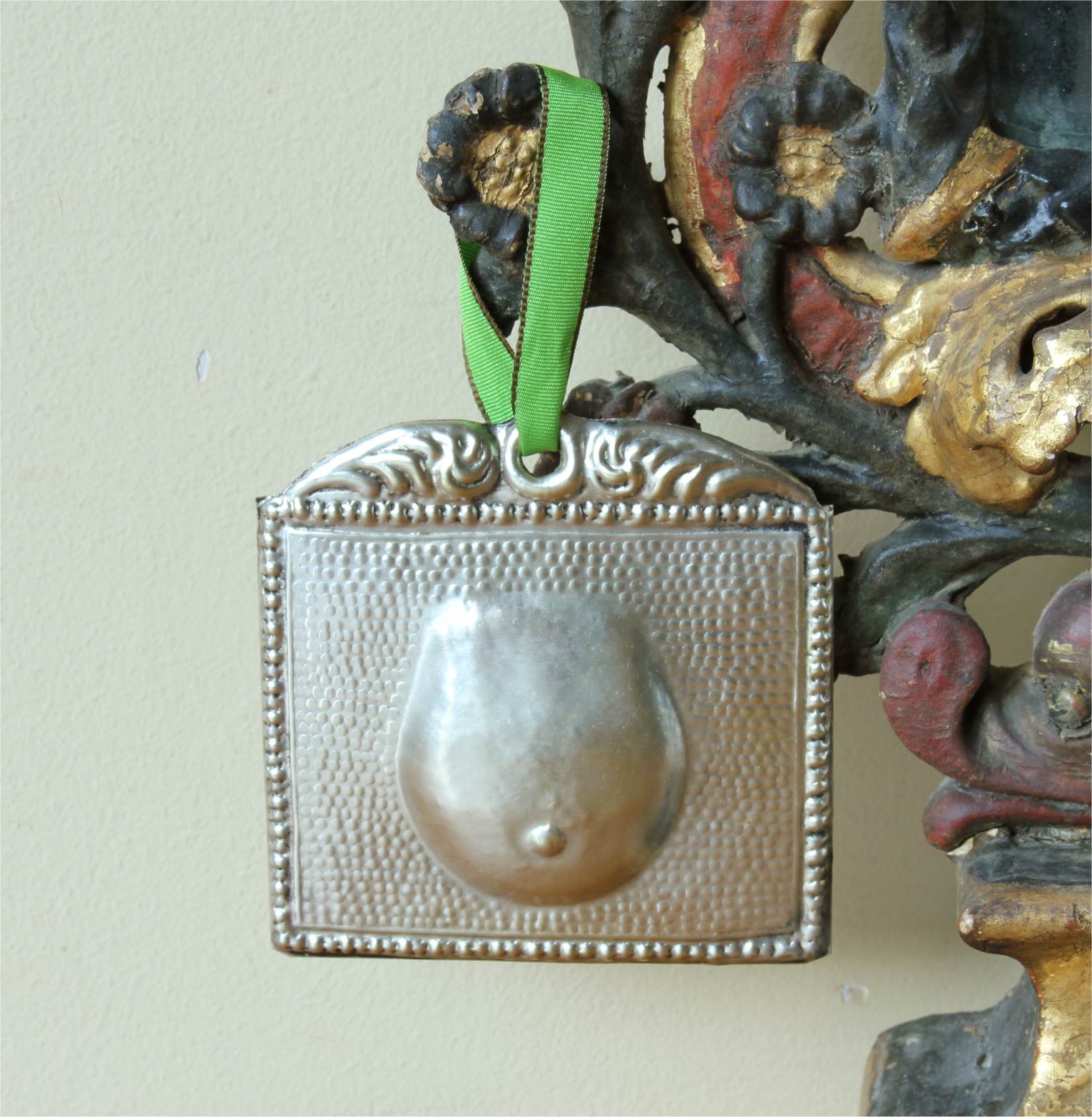 An Ex voto is a votive offering and can take a wide variety of form. They would be placed in a Catholic church by the worshipper to seek grace or give thanks to a saint for help with a problem or ailment. They usually have the form of a certain body part or object.
