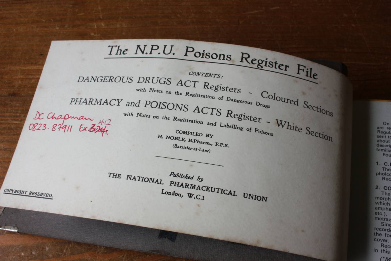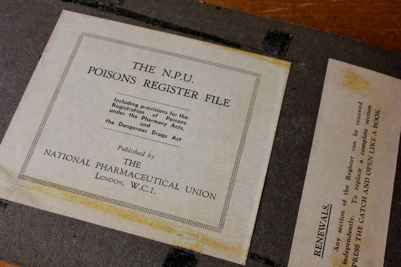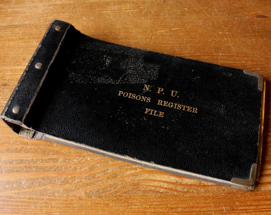 This unusual N.P.U. Poisons Register File / Drug Book which was used in a prison has interesting logs containing details of the dangerous drugs act plus details of drugs and poisons from the 1950's to 1970's.