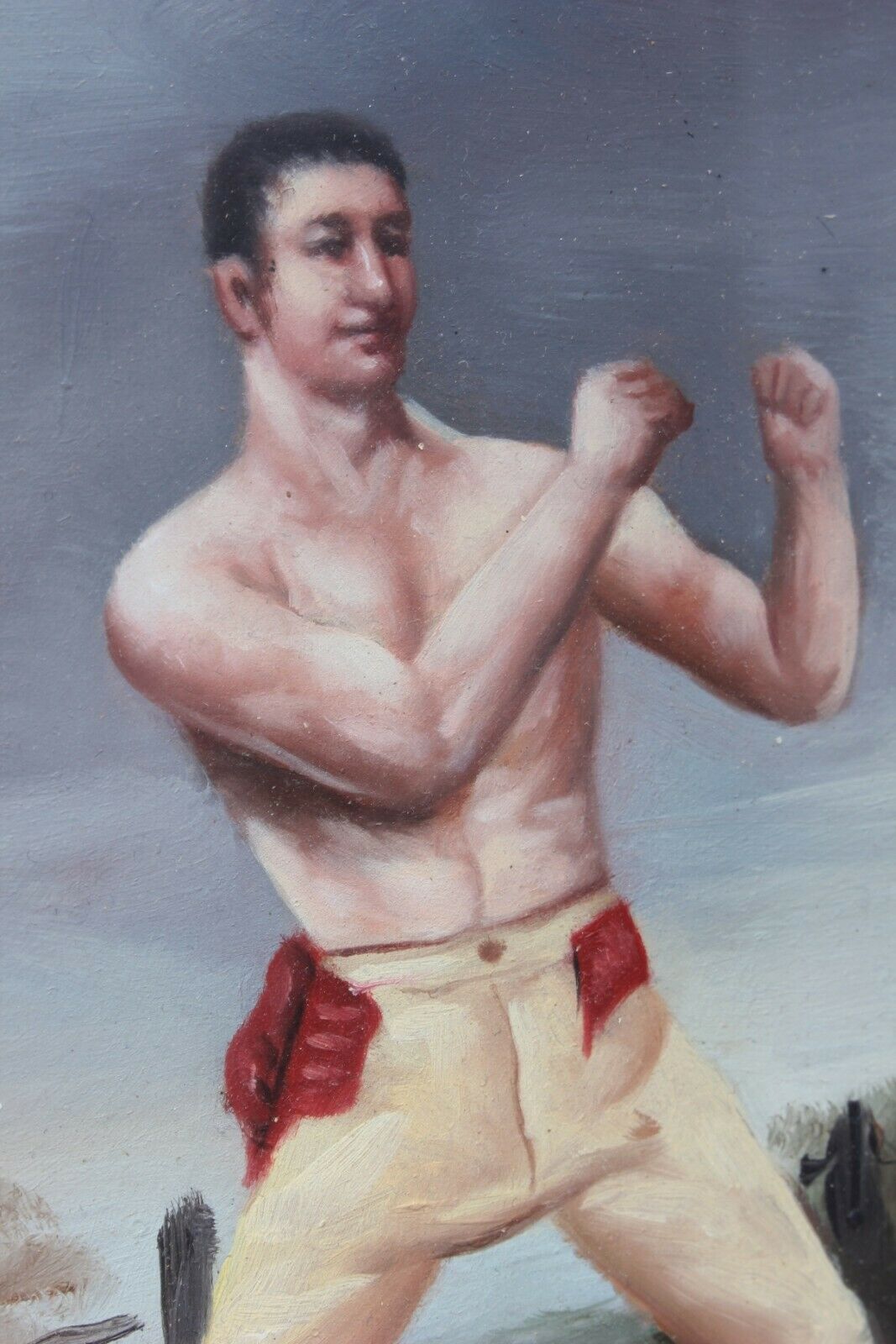 This handsome antique oil painting of early 19th century pugilist Thomas Belcher which dates from c1905 is a copy of the original 1811 painting by Thomas Douglas Guest.