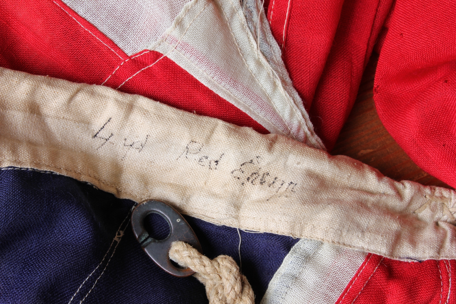 The flag which is an impressive size at 12 feet in length would have been used on board a ship.