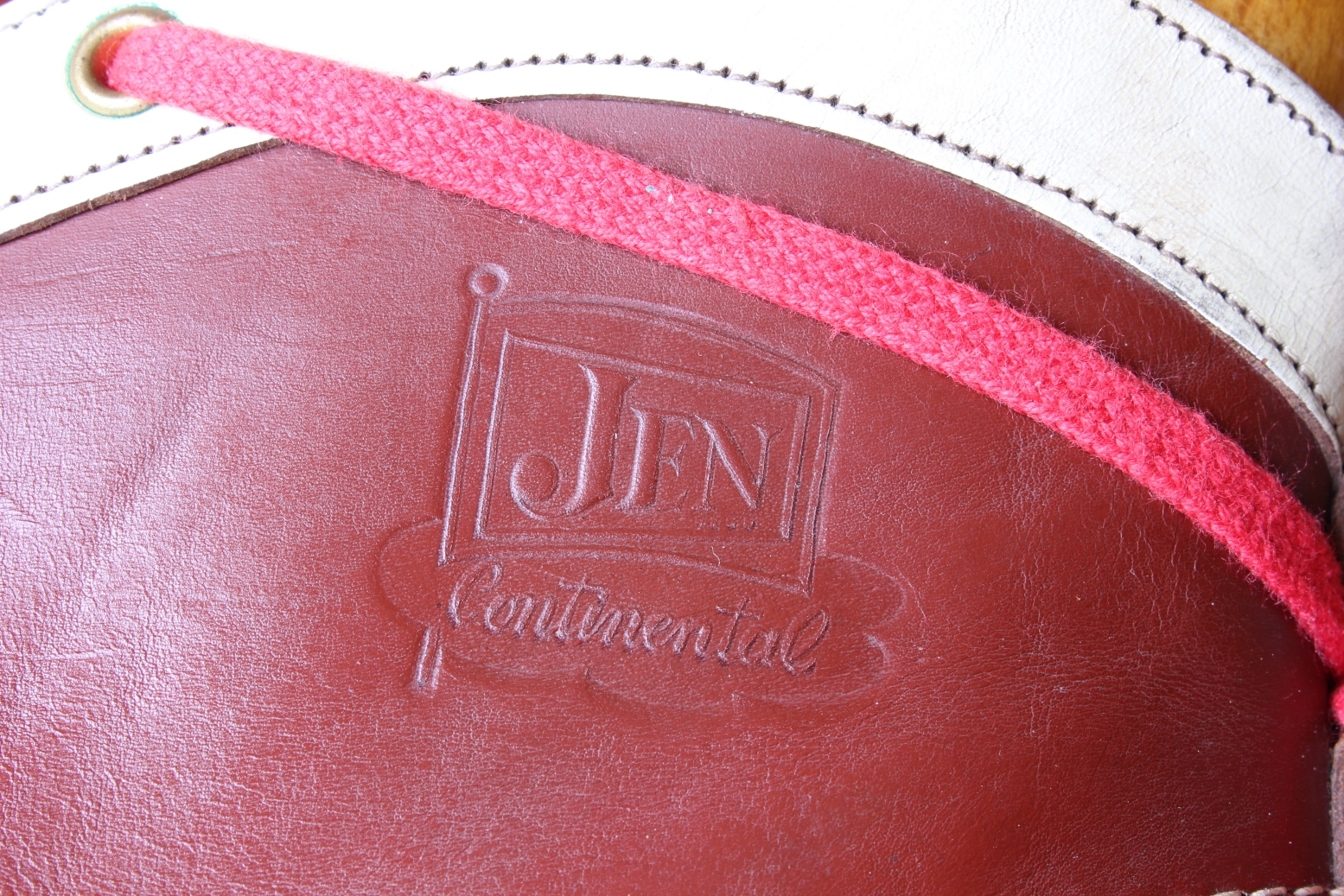 These original vintage boots which feature the Jen Continental logo on the outer sides are in unworn condition and complete with red laces.