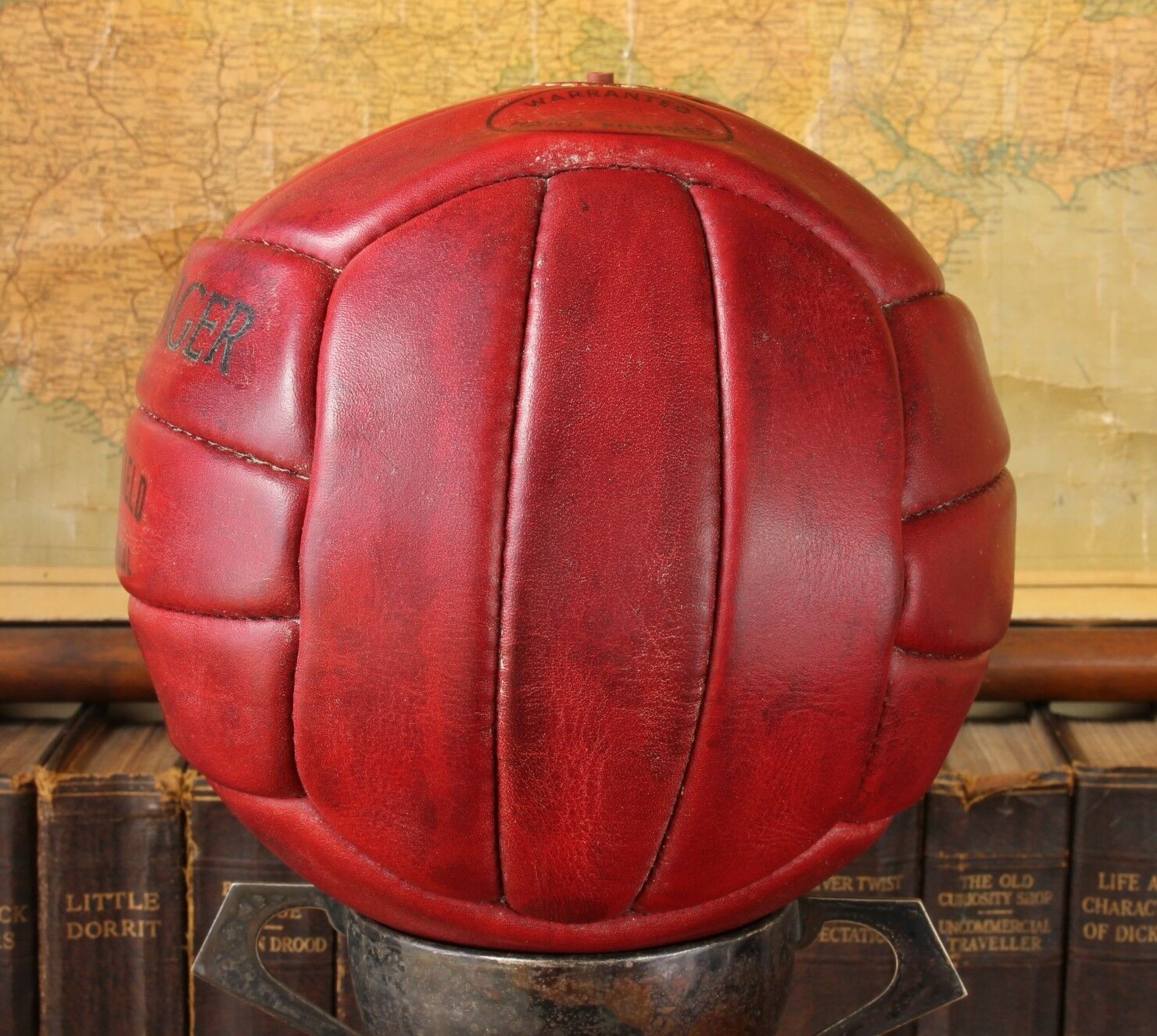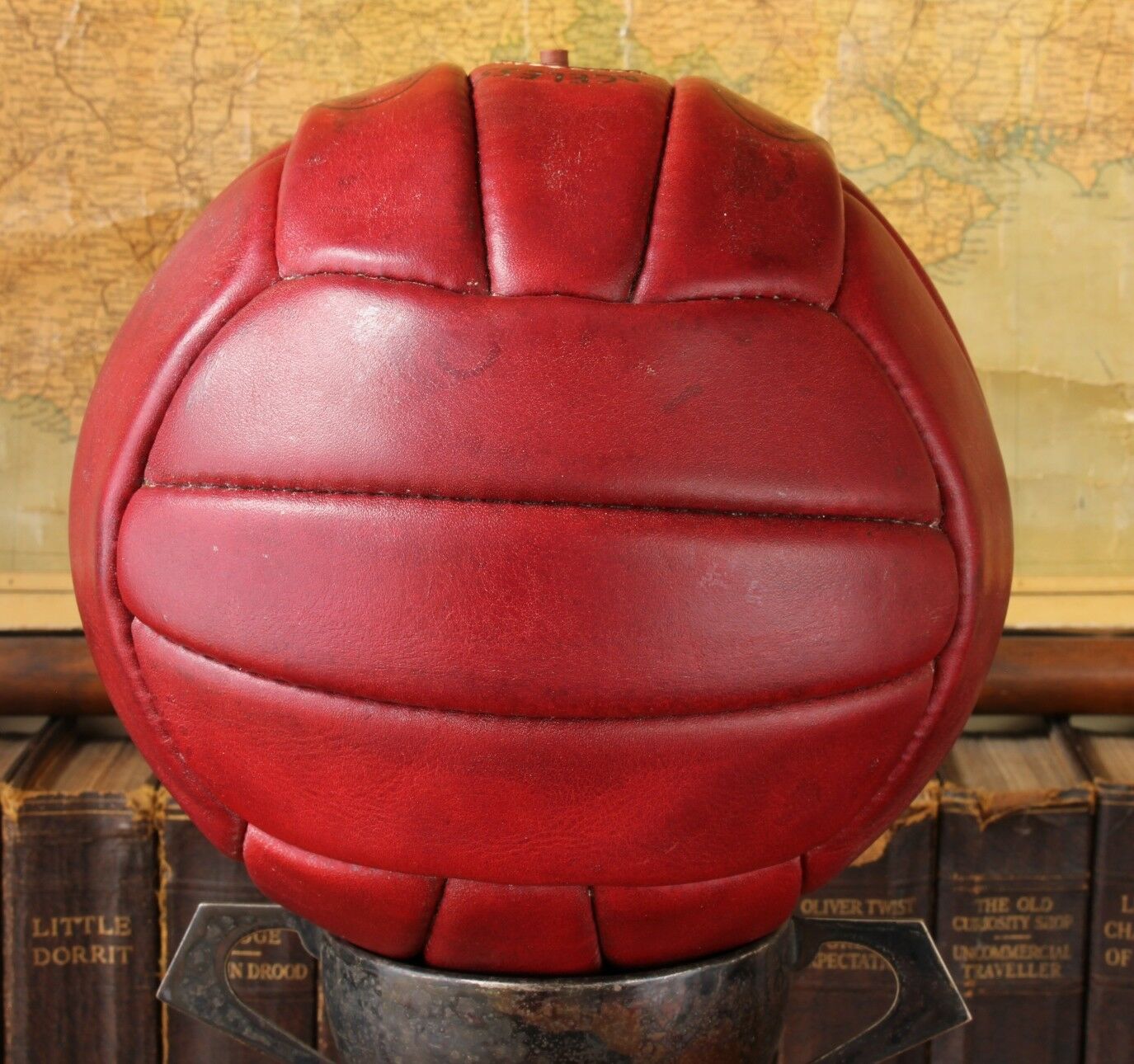 This unusual red leather ball looks stunning on display and would make an interesting collectable display ball.