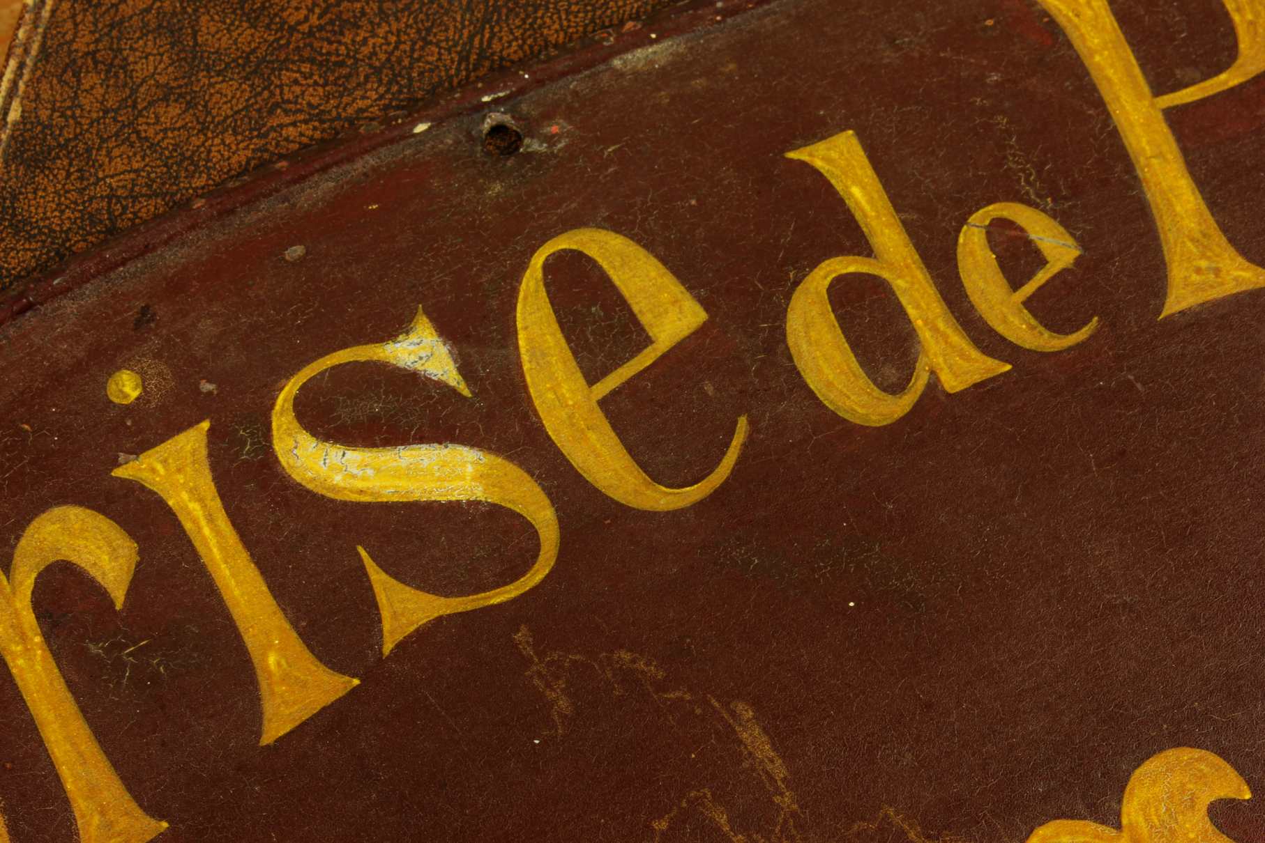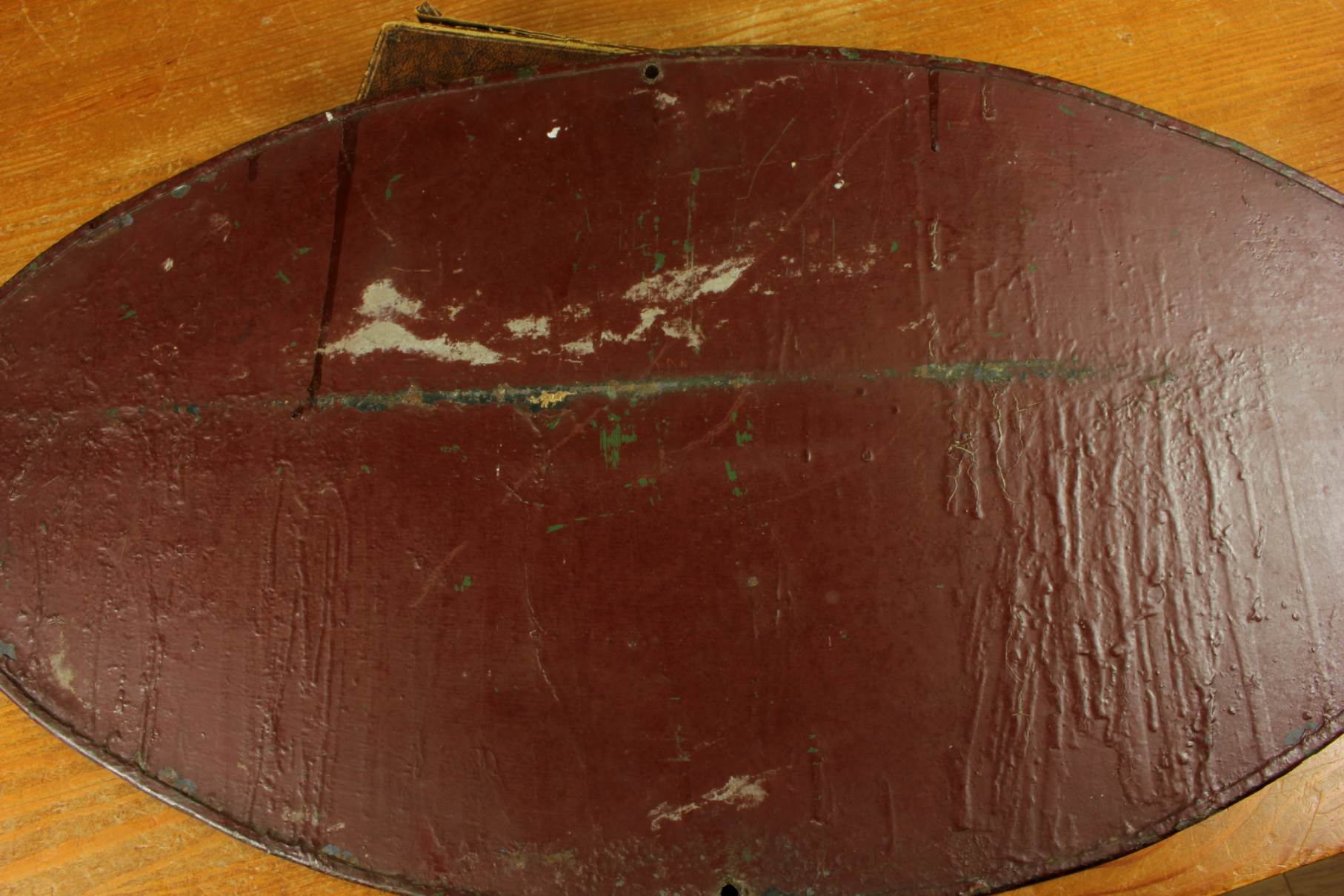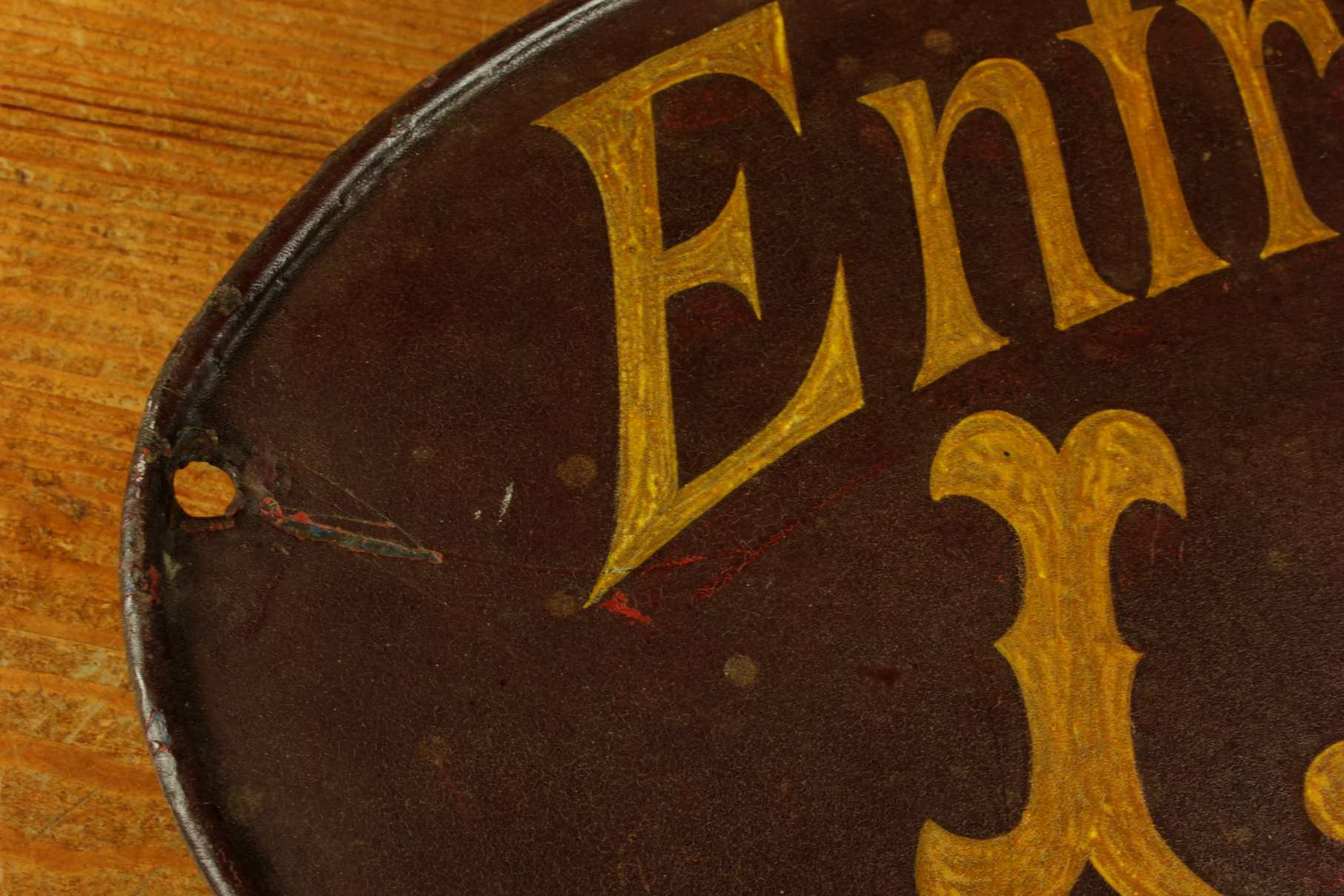 This antique trade sign that dates from the late 19th / early 20th century would have been fixed to a wall to advertise a French painter's business. The oval shape and wonderful rustic charm with flaky paint that shows years of aging and wear all add to the decorative look.