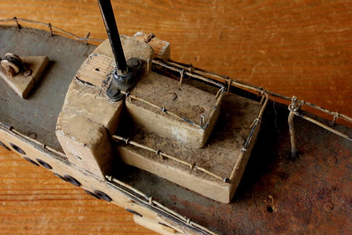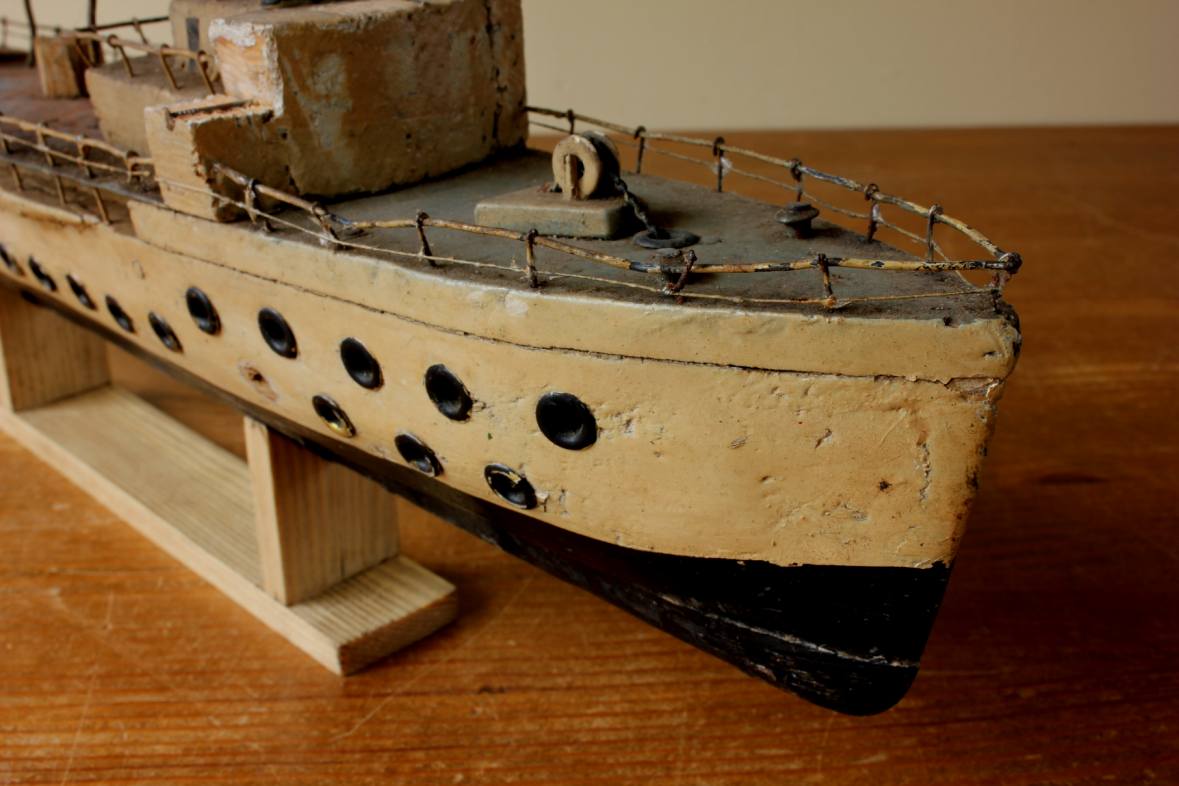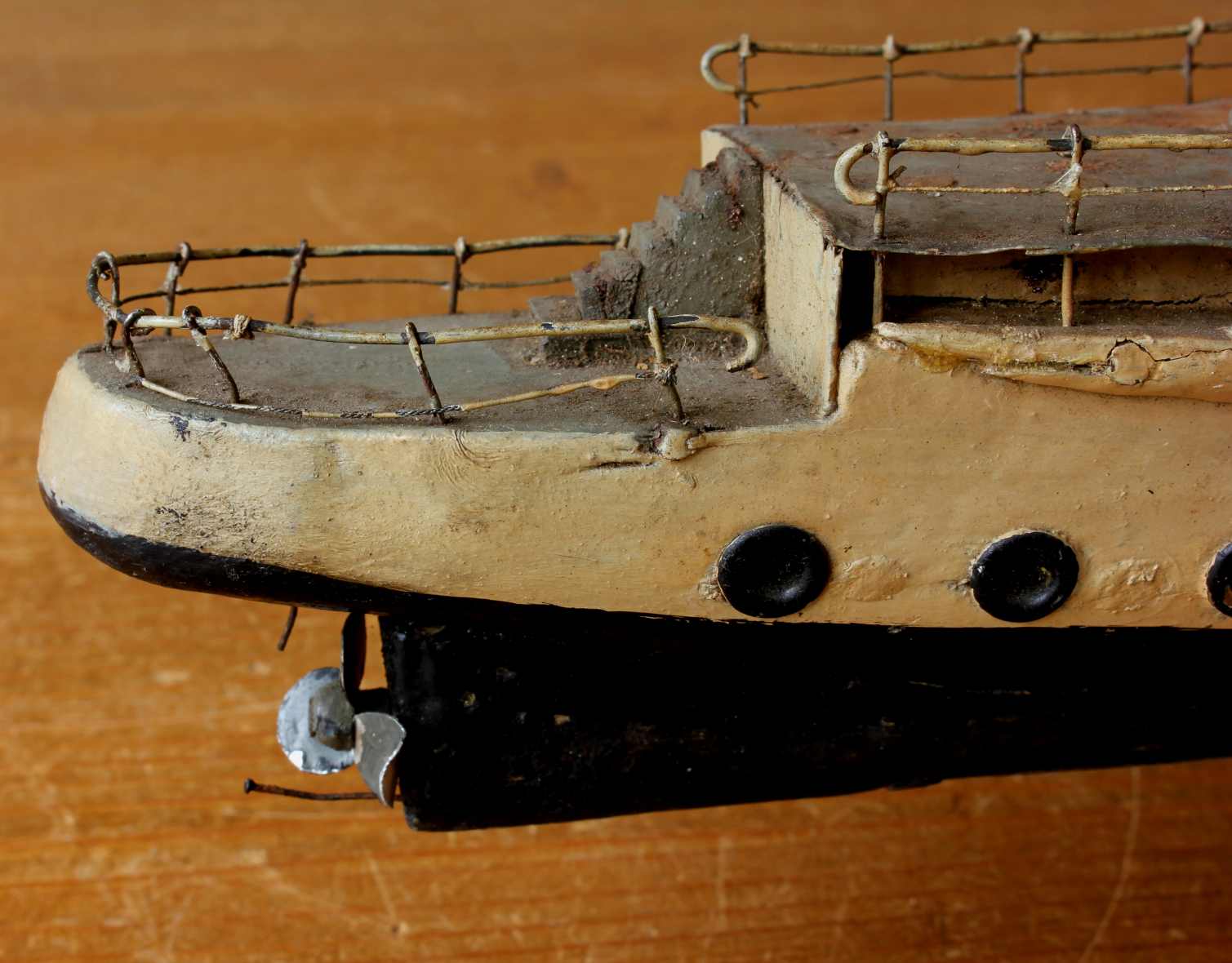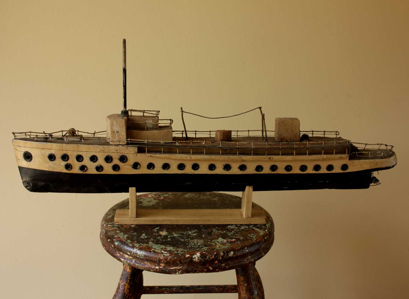 This interesting ship dates from the first half of the 20th century and has good detail that include portholes, steps, prop and the whole piece has a wonderful charming look.