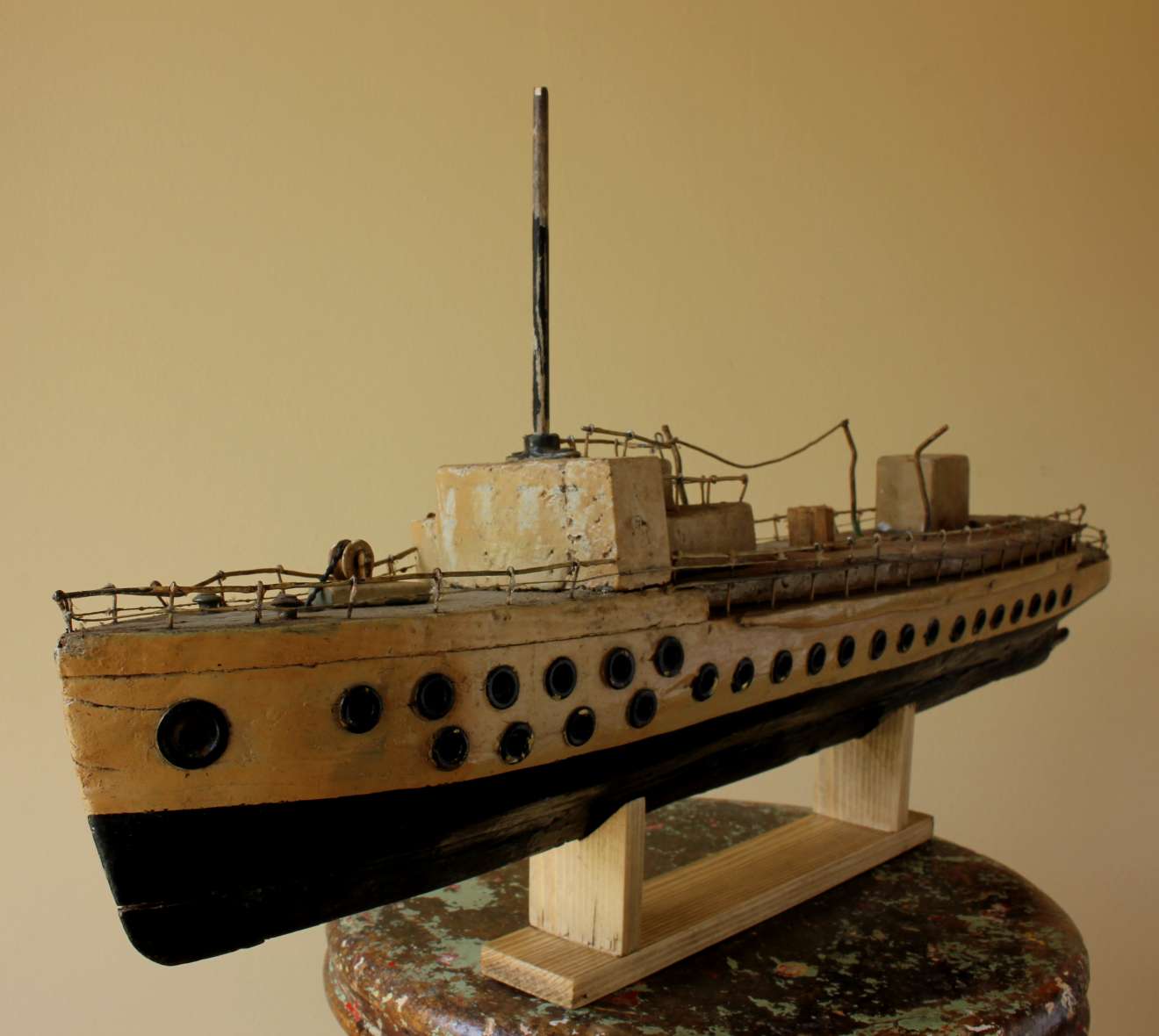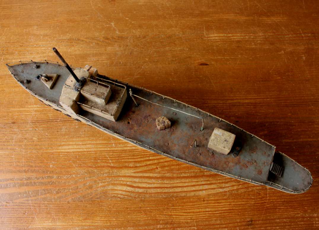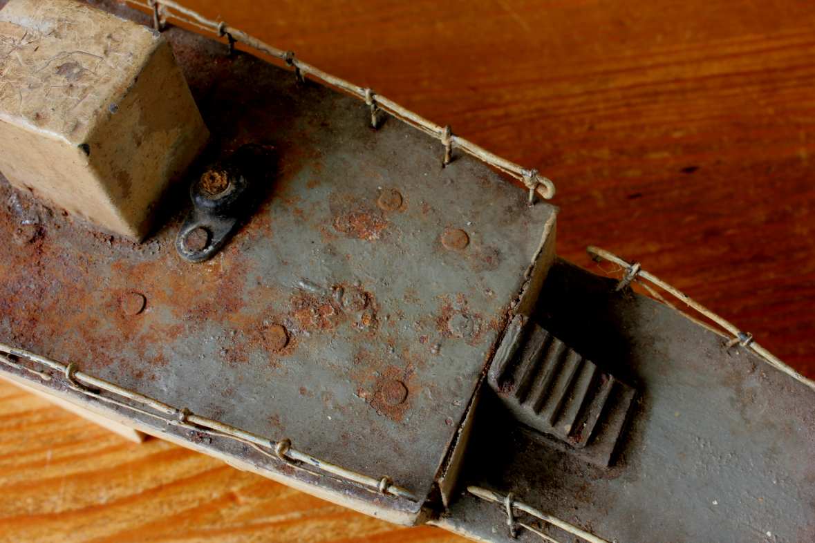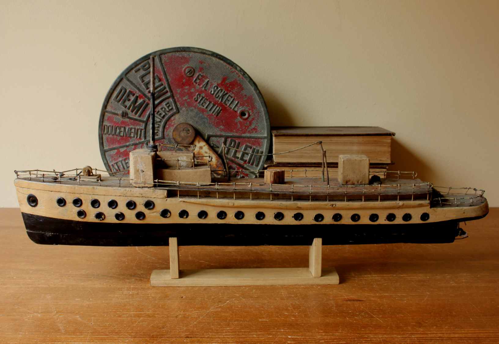 This interesting ship dates from the first half of the 20th century and has good detail that include portholes, steps, prop and the whole piece has a wonderful charming look.