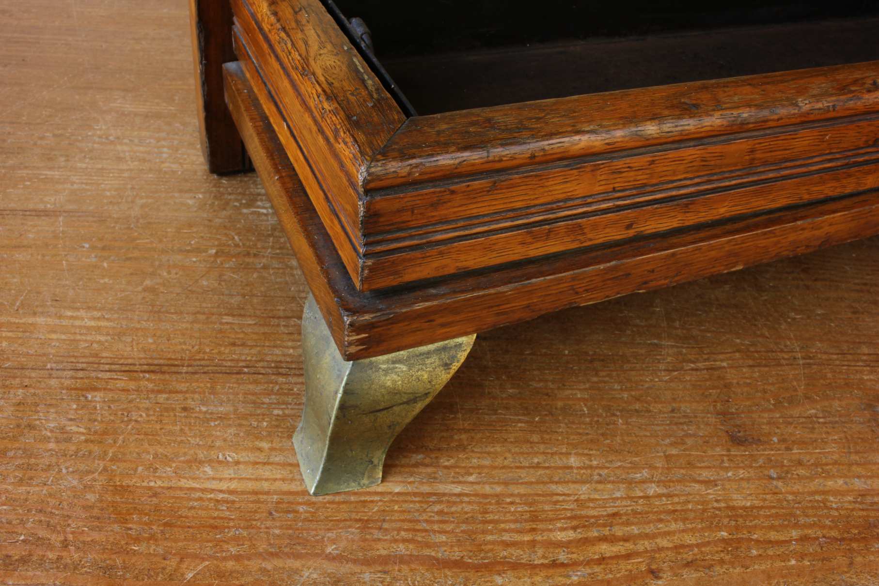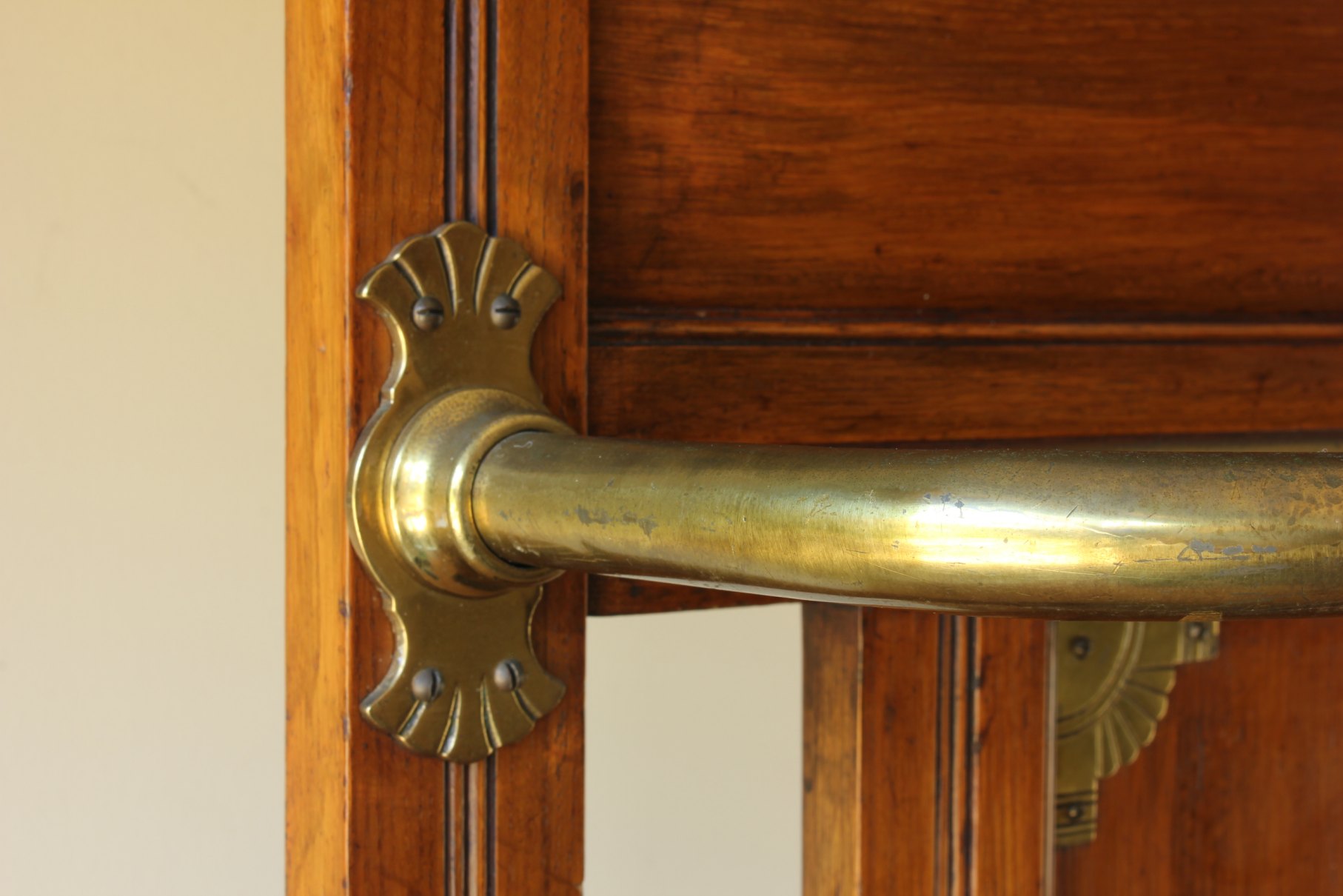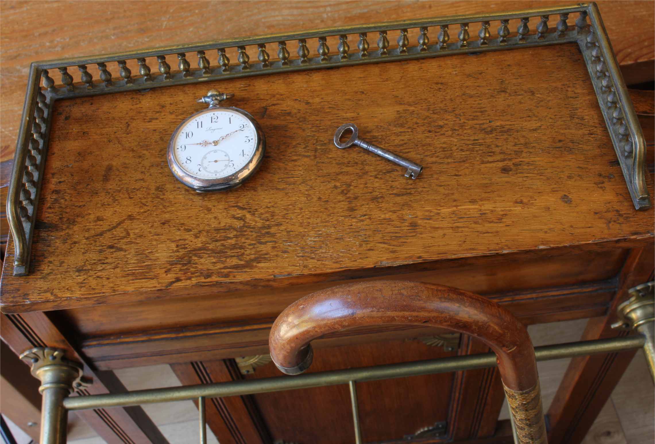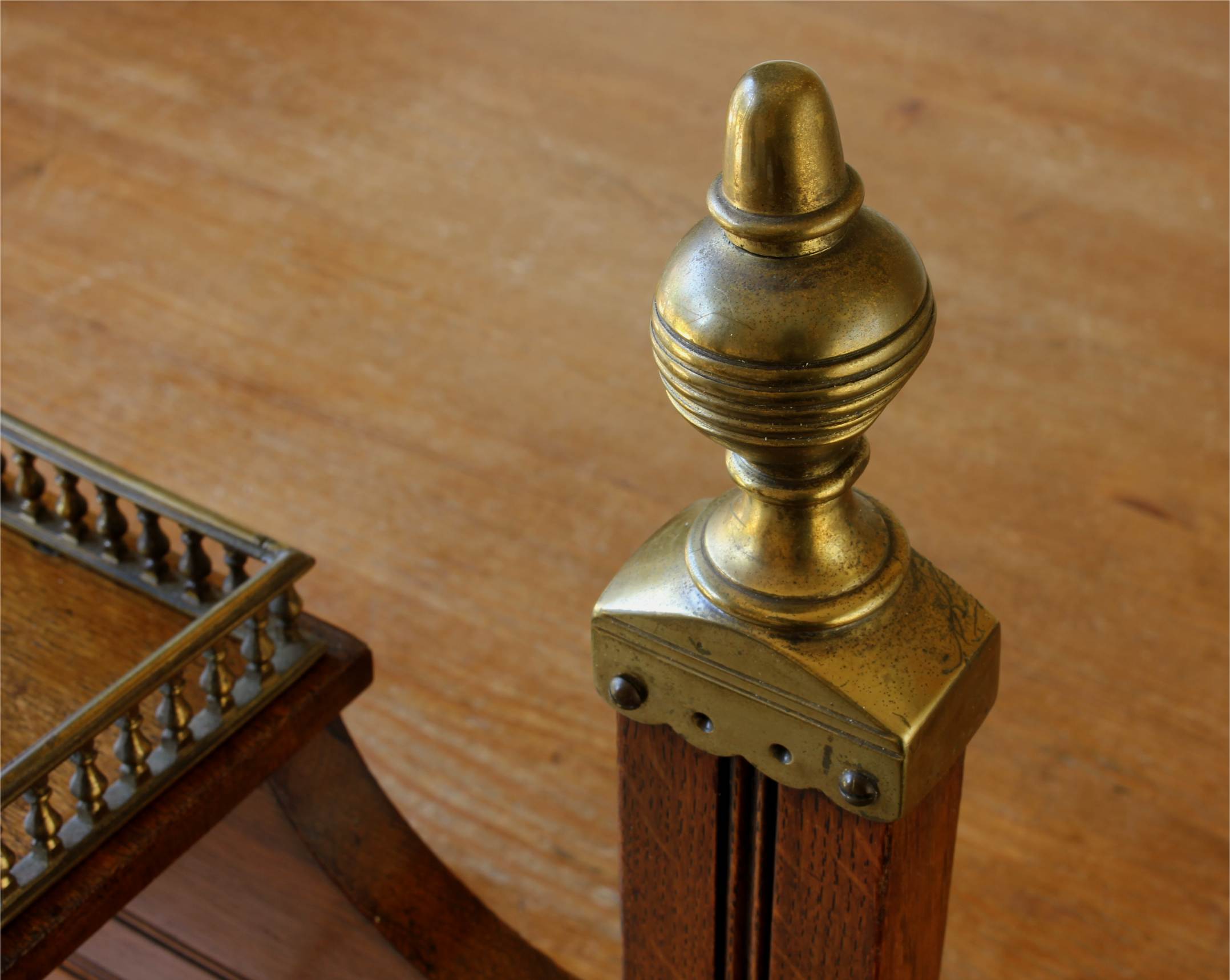 This fine quality Victorian hall stand which dates from the 19th century is well made of oak, has brass finials and fittings, a removable lower drip tray and has a wonderful rich patina.