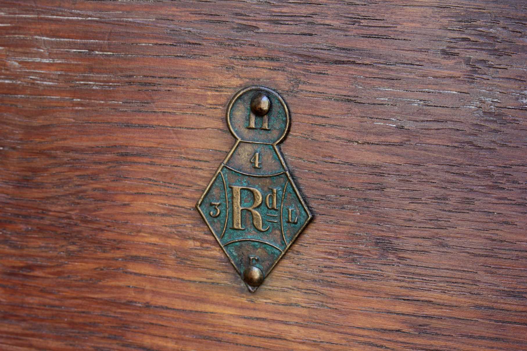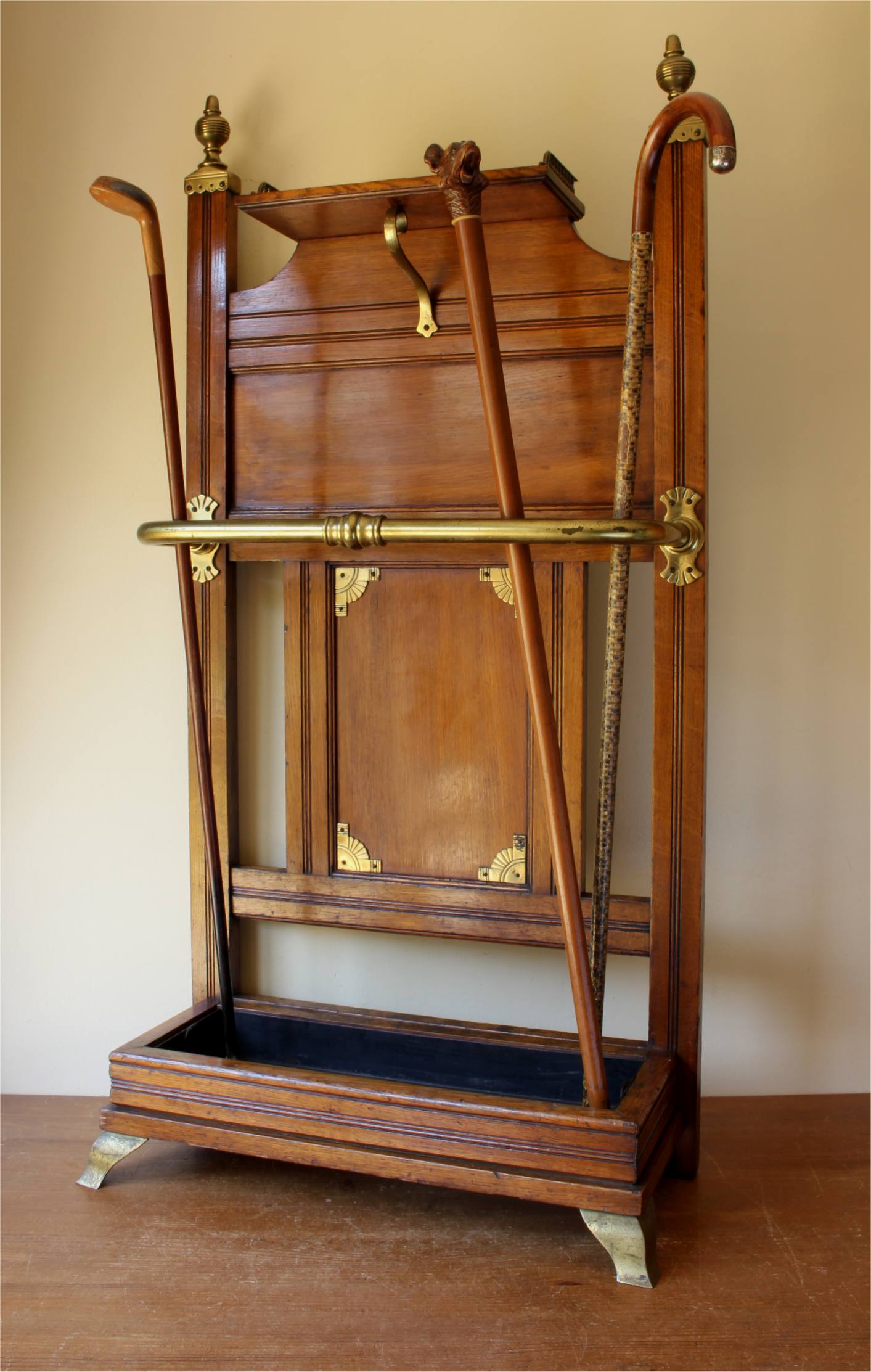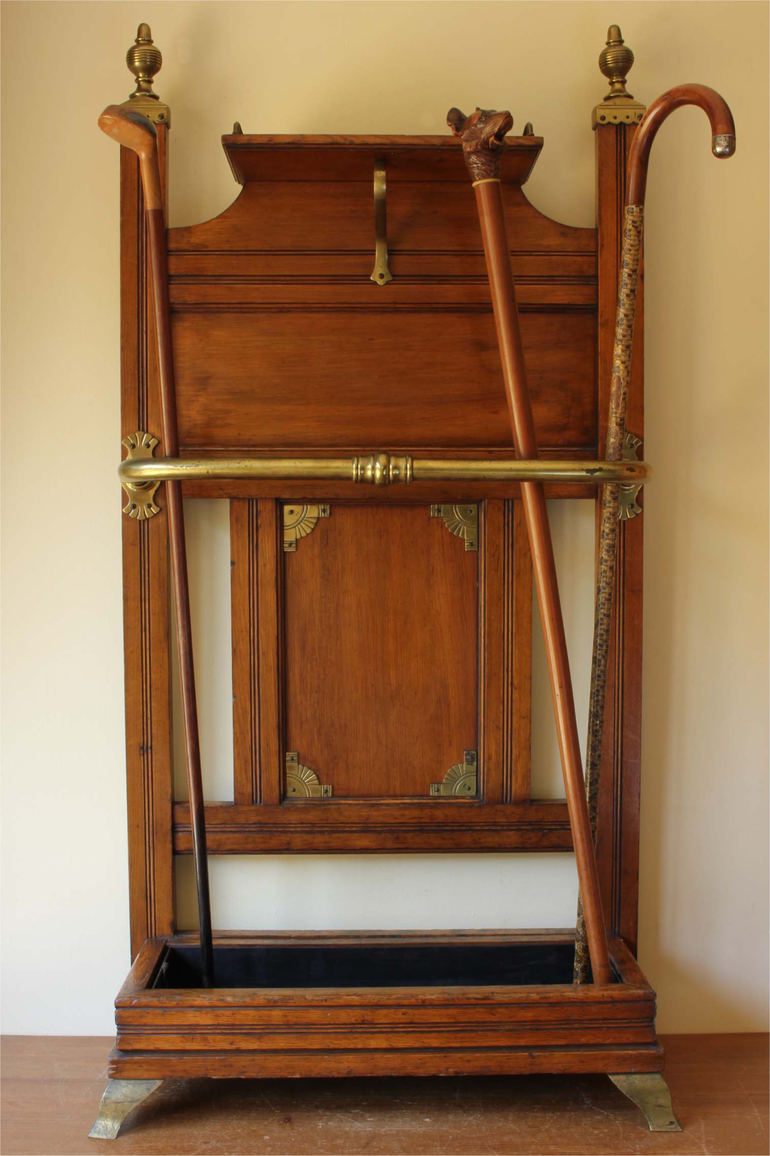 This handsome wooden stick/umbrella stand which is attributed to James Shoolbred & Co has a diamond registration kite mark to the reverse which dates from 1882.