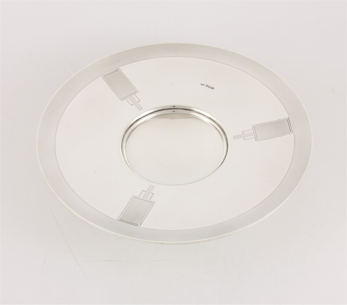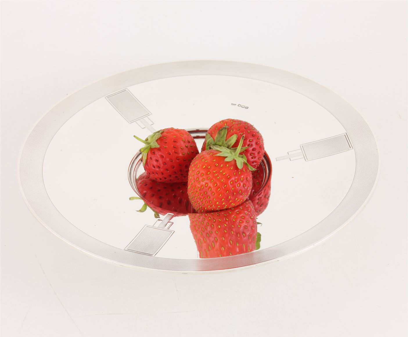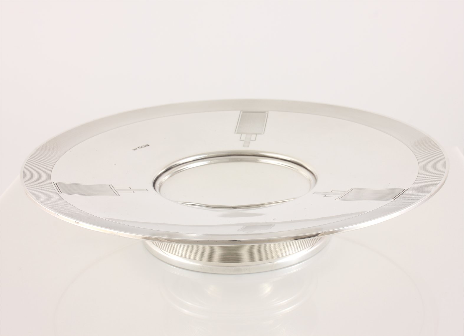 This handsome dish has a fabulous look and sits on it's raised central pedestal foot which has engine turning decoration and is also marked to the underside for Walker & Hall, Sheffield.