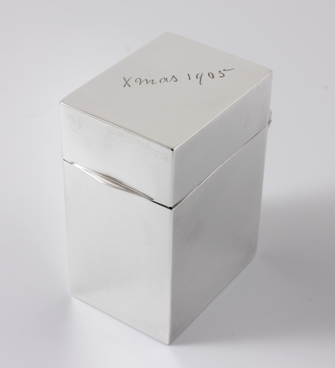 Hallmarked: To lid with Lion for sterling silver and date letter e for 1904.