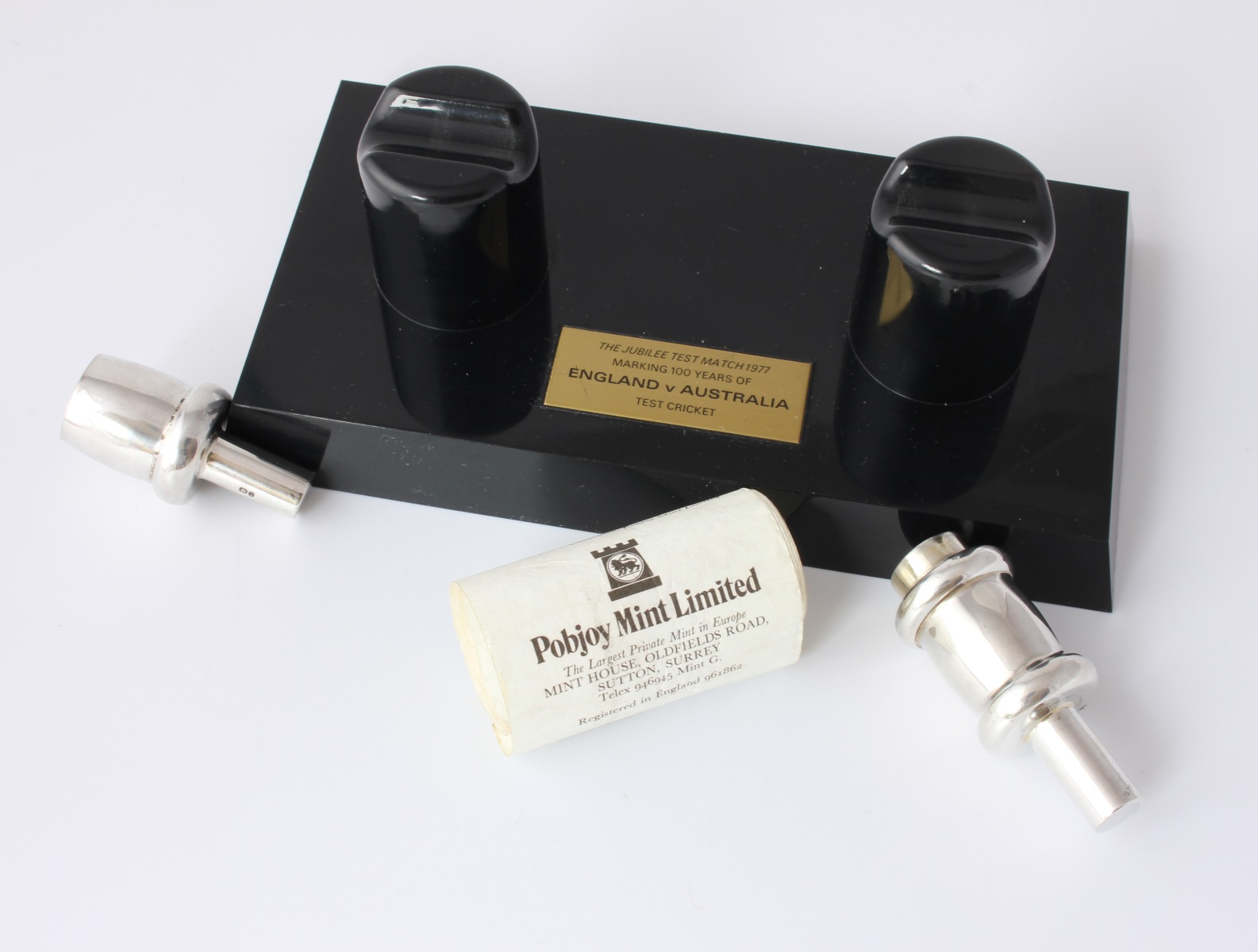 This Limited Edition collectors item was made by Pobjoy Mint to commemorate the 1977 Jubilee Test and is fully hallmarked 1977.