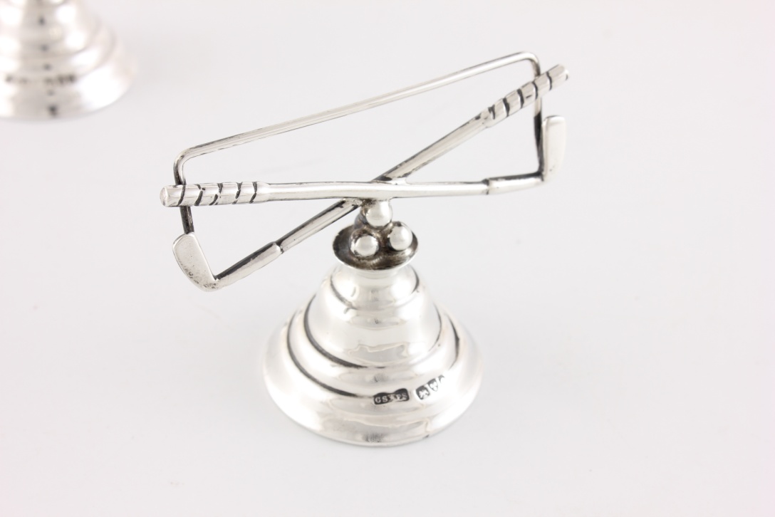 These menu holders which are designed as two crossed golf clubs on top of some golf balls could also be used to display a photograph, business card or party invitation and look very nice on display just on their own.
