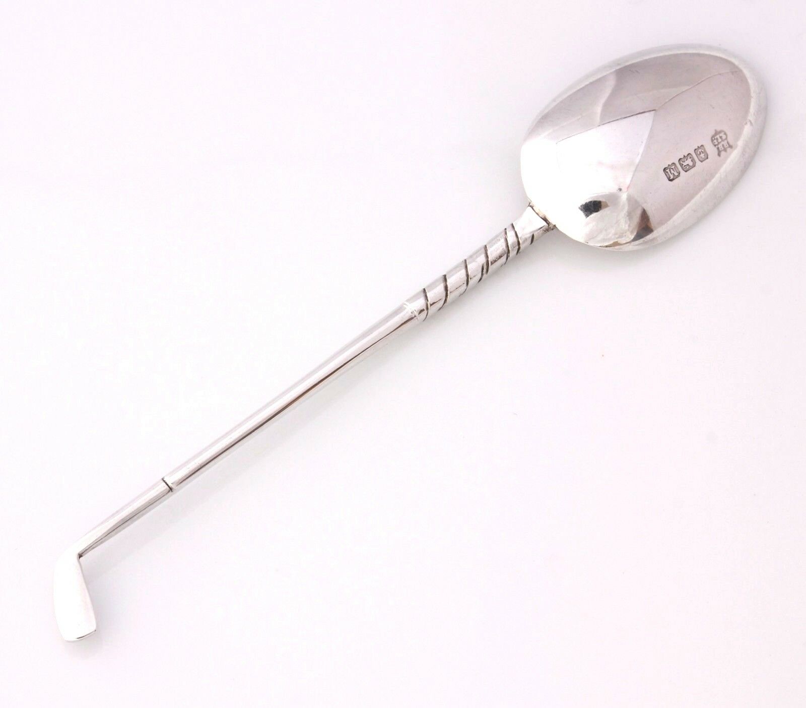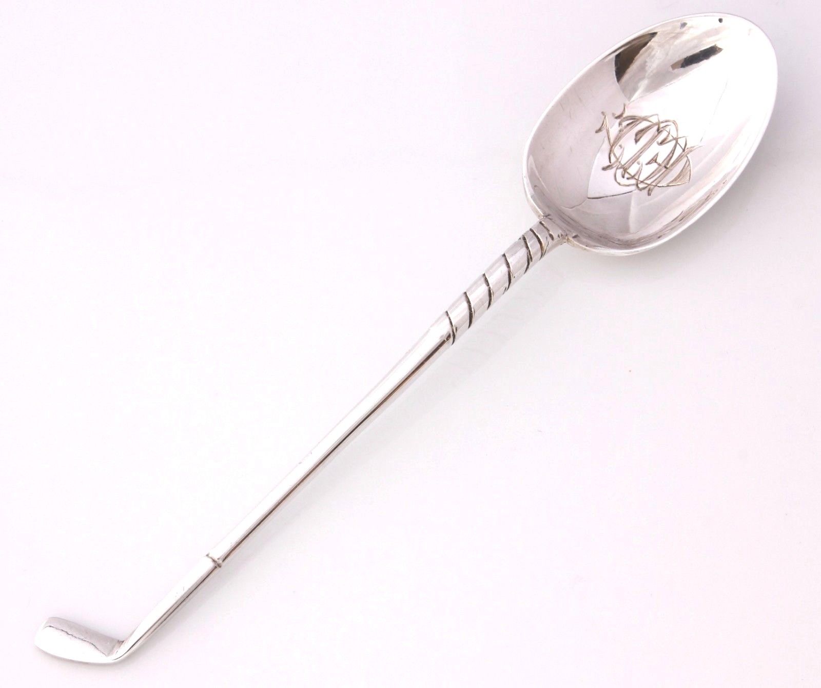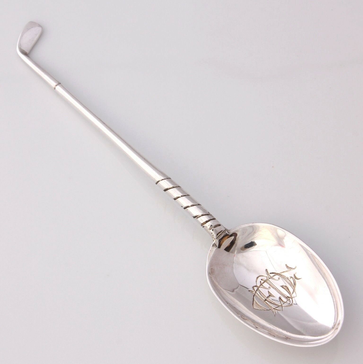 This beautiful solid silver spoon which has a handle in the form of a golf club looks wonderful on display and would make a fantastic gift for a golfing fan. The spoon is a little different because of the monogram engraved in the centre of the bowl.