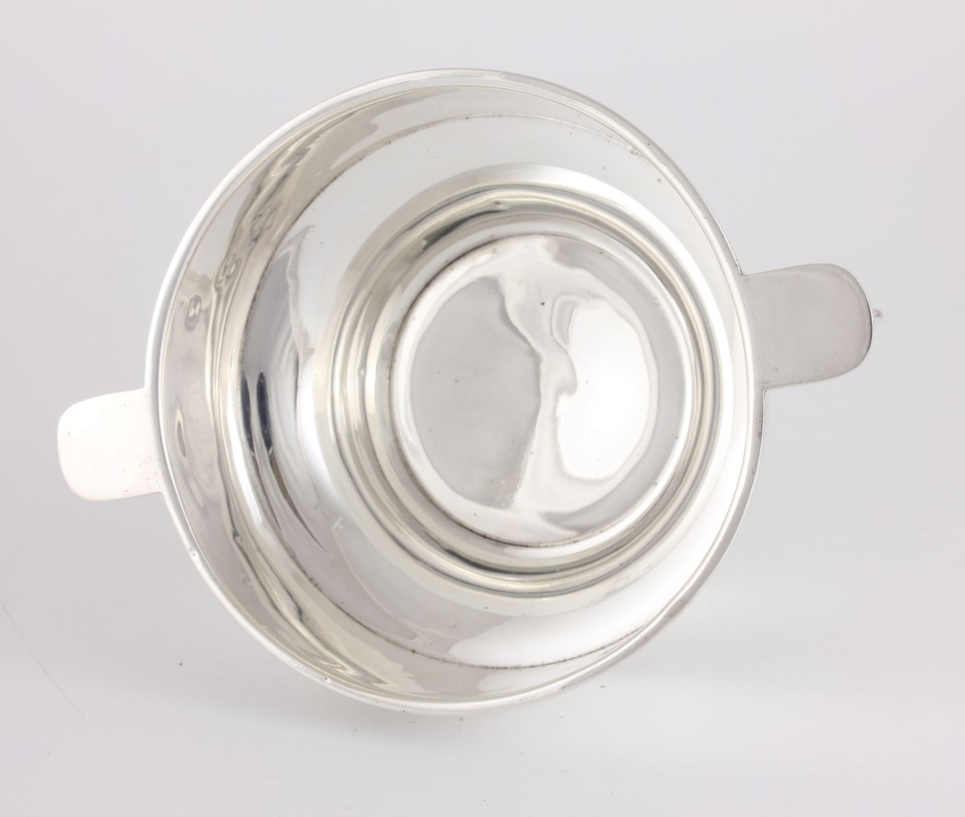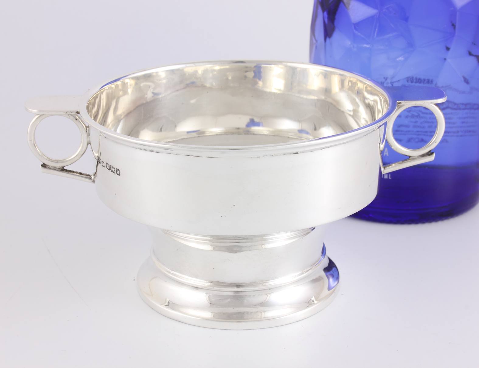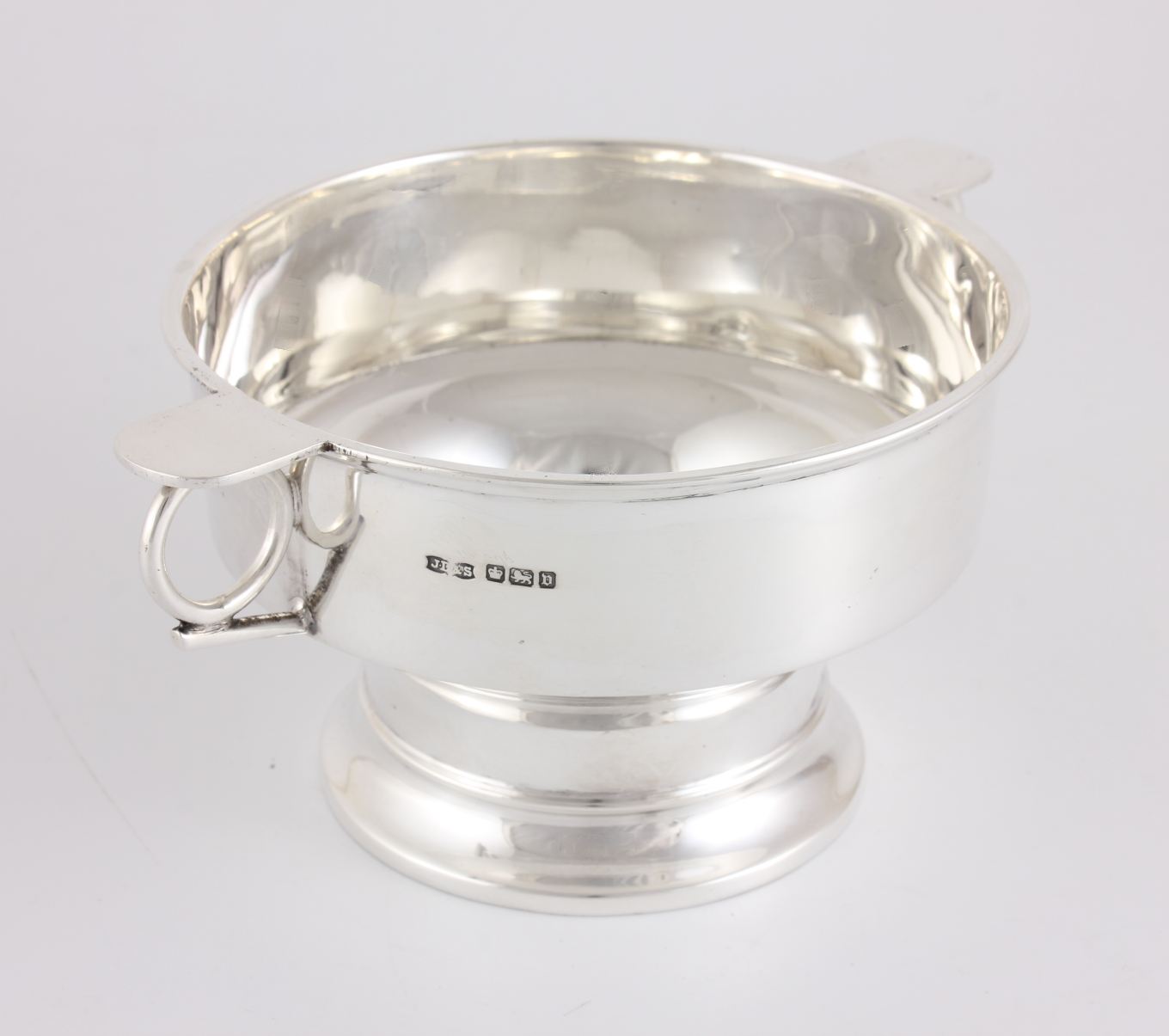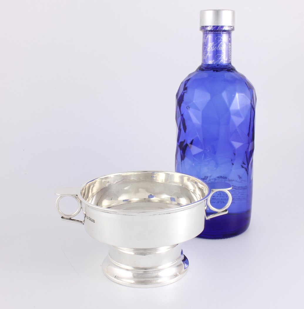 This fabulous porringer cup has two stylish side handles and sits on a raised base.