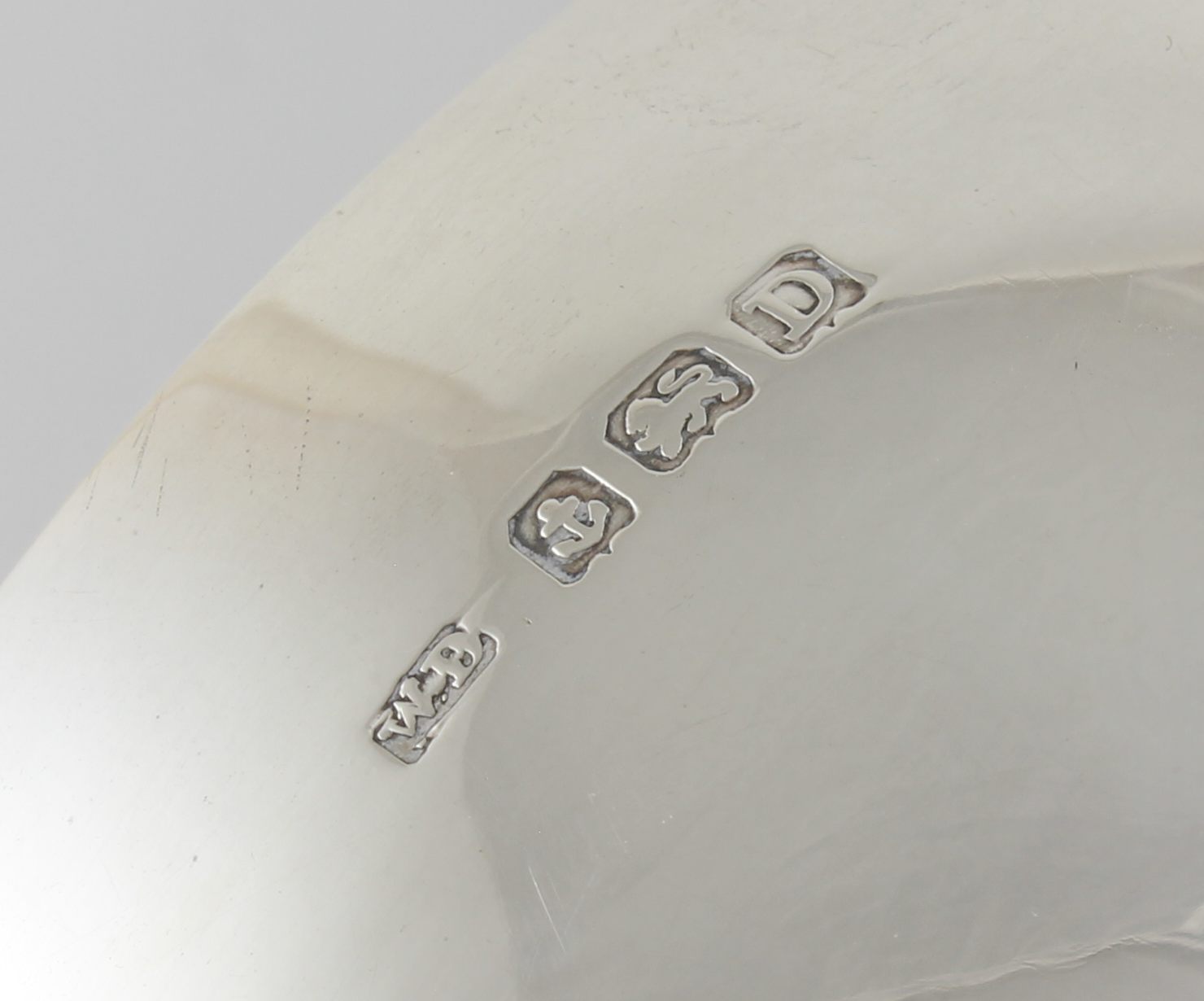 Hallmark: Lion for Sterling Silver. Anchor for Birmingham. Date letter D for 1928. Maker's mark W.D for William Devenport.