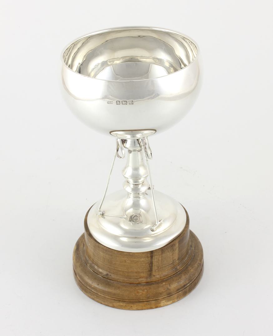 Weight of silver trophy only: 134 g. Total weight including wooden base: 300 g.