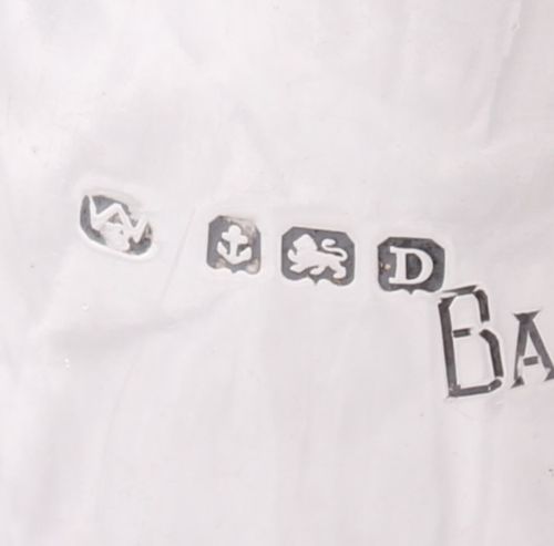 Hallmark: Lion for Sterling Silver. Anchor for Birmingham. Date letter D for 1928 and maker's mark.