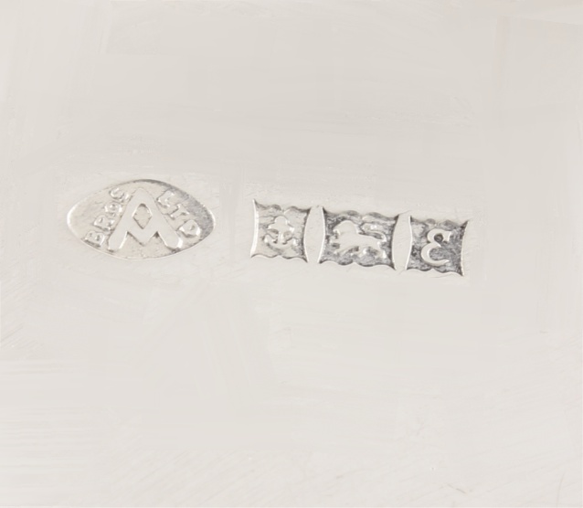 Hallmark: All four dishes are fully hallmarked with Lion for Sterling Silver. Anchor for Birmingham. Date letter E for 1954 and maker's mark A Bros Ltd for Adie Brothers Ltd.