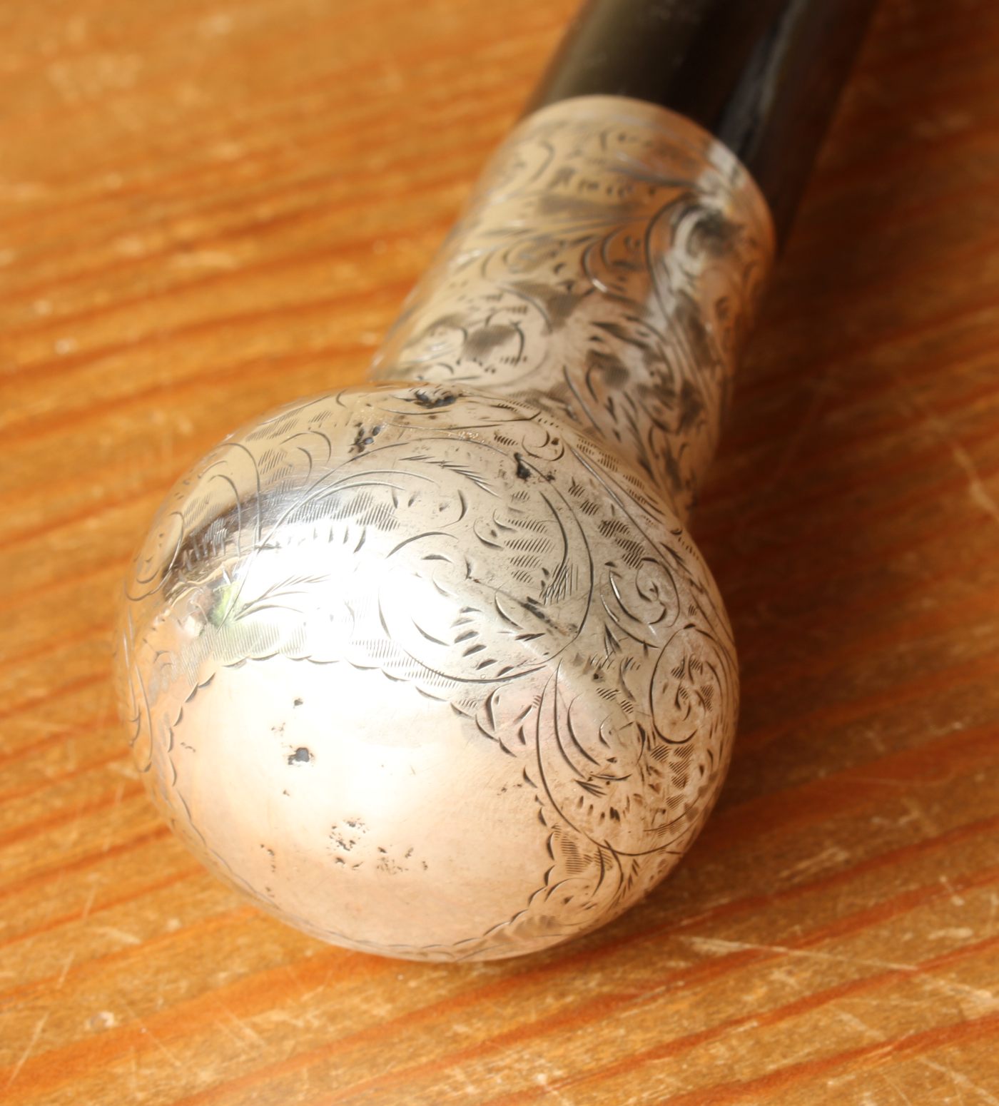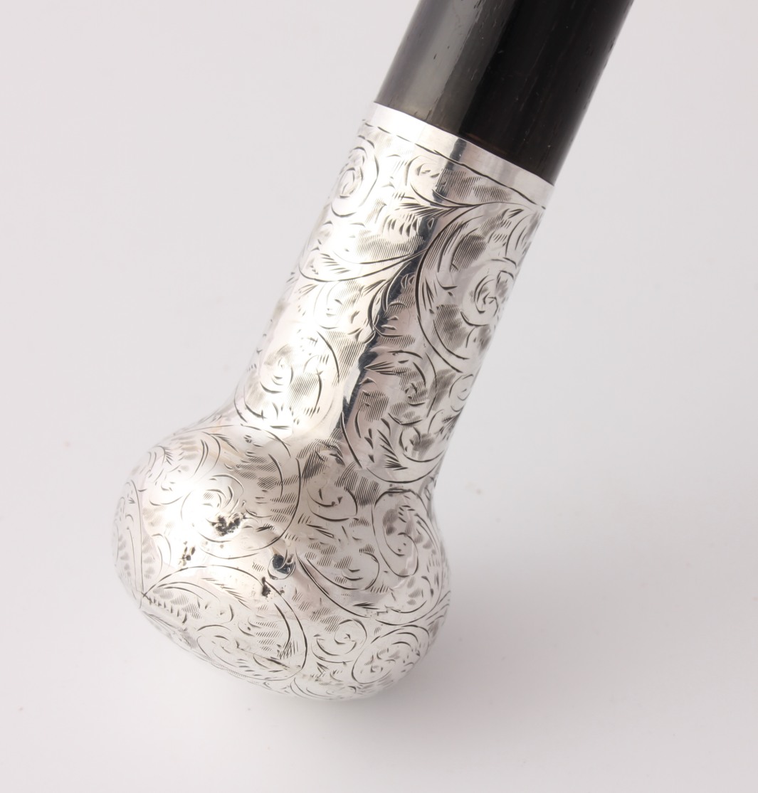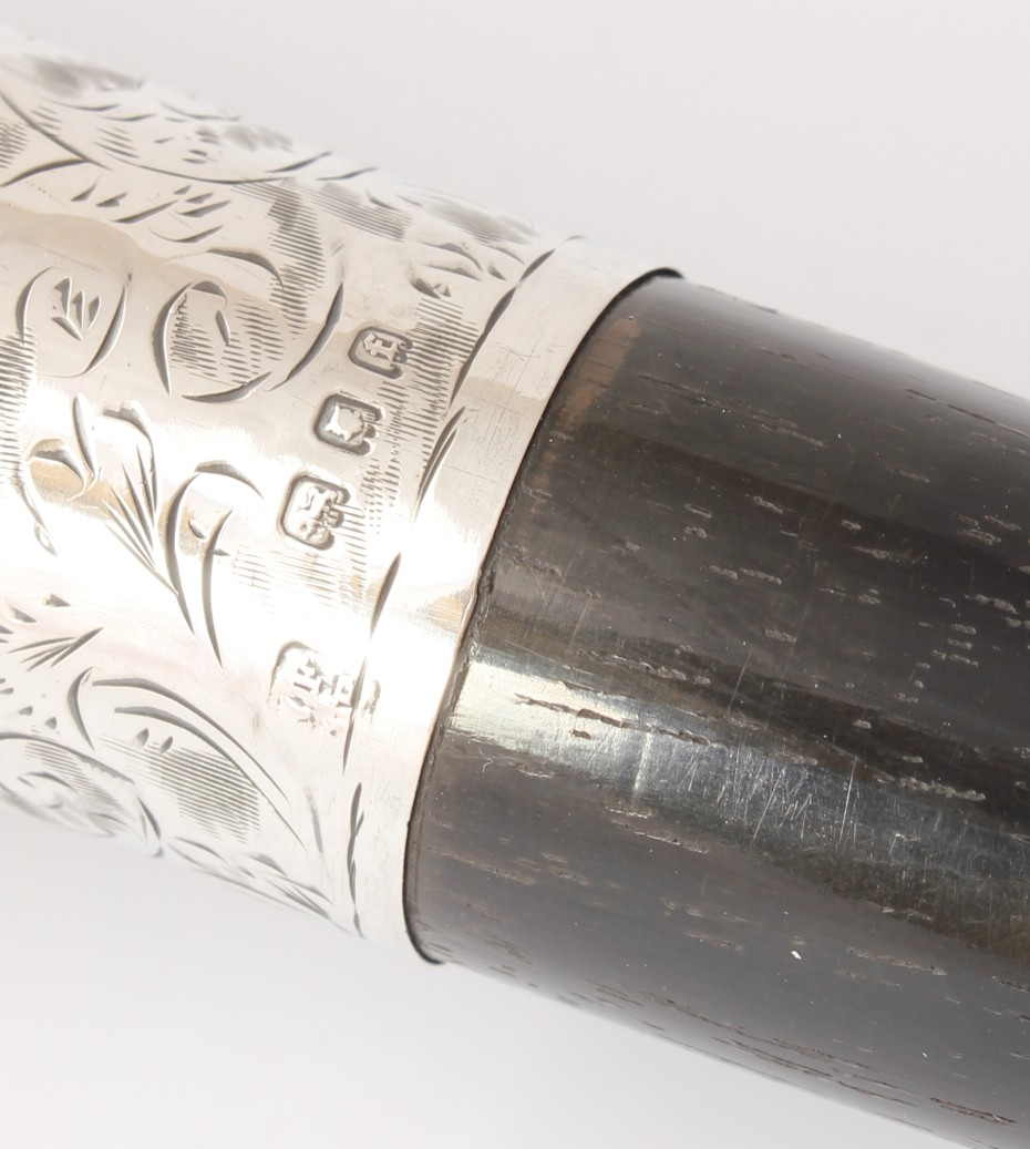 Materials: Ebony shaft. Silver top. Brass ferrule.