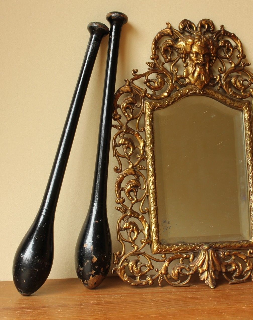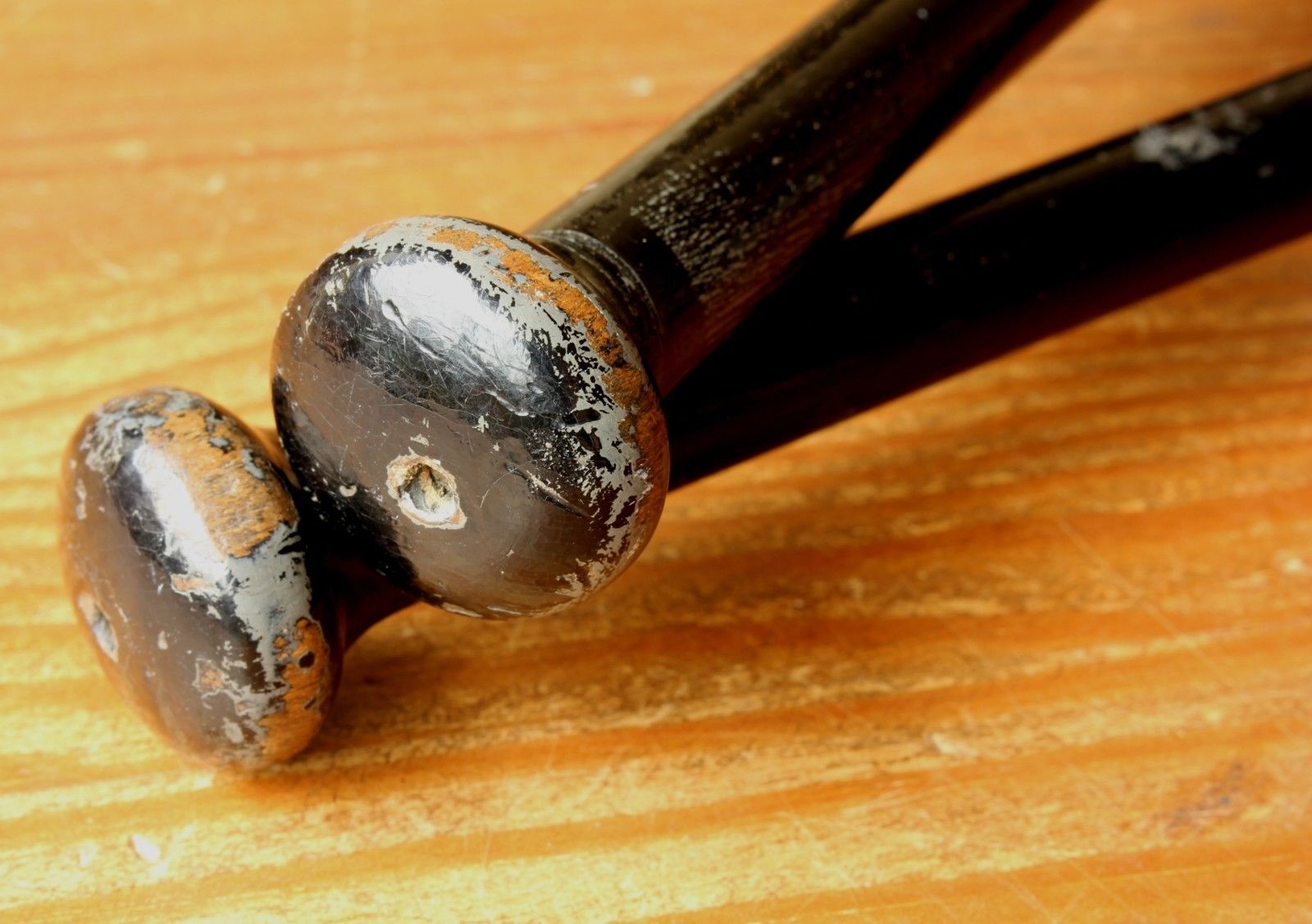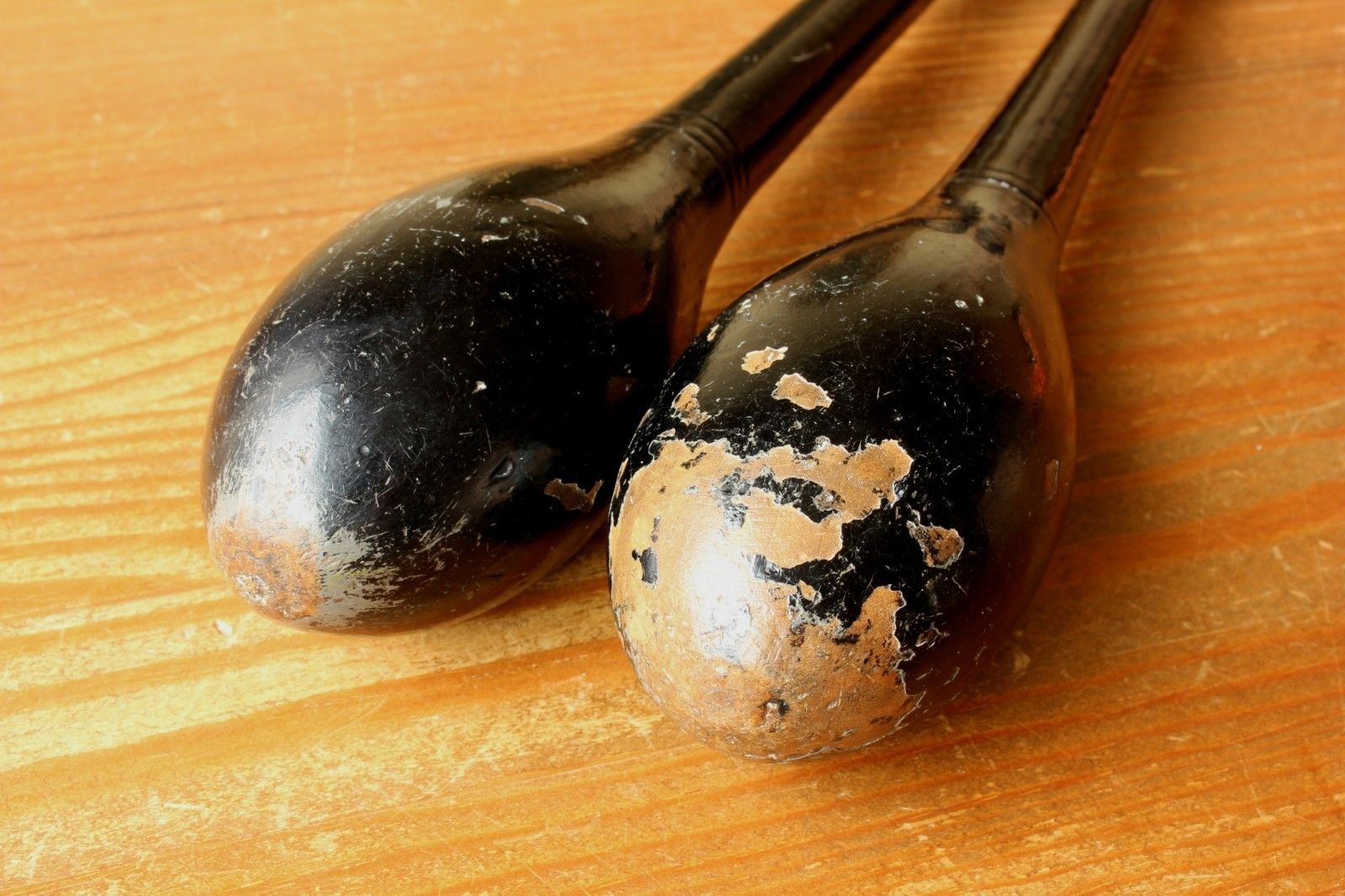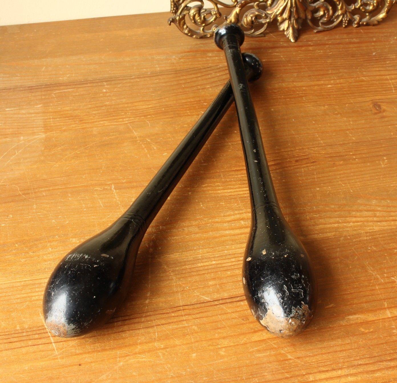 These very unusual items of antique sporting equipment have an unusual black original finish and would make fantastic decorative home or gym display items and super props.