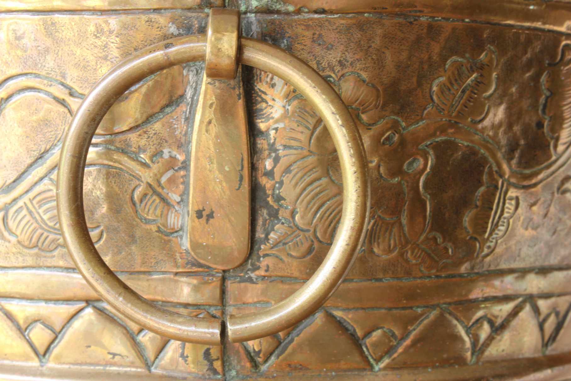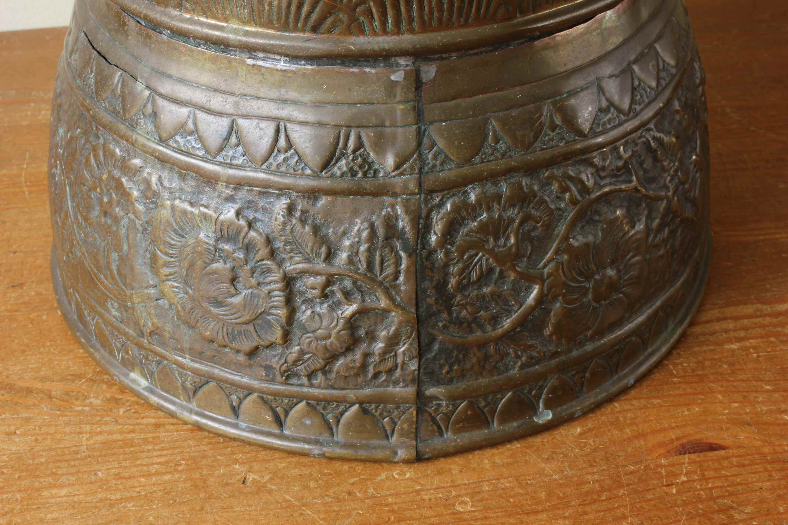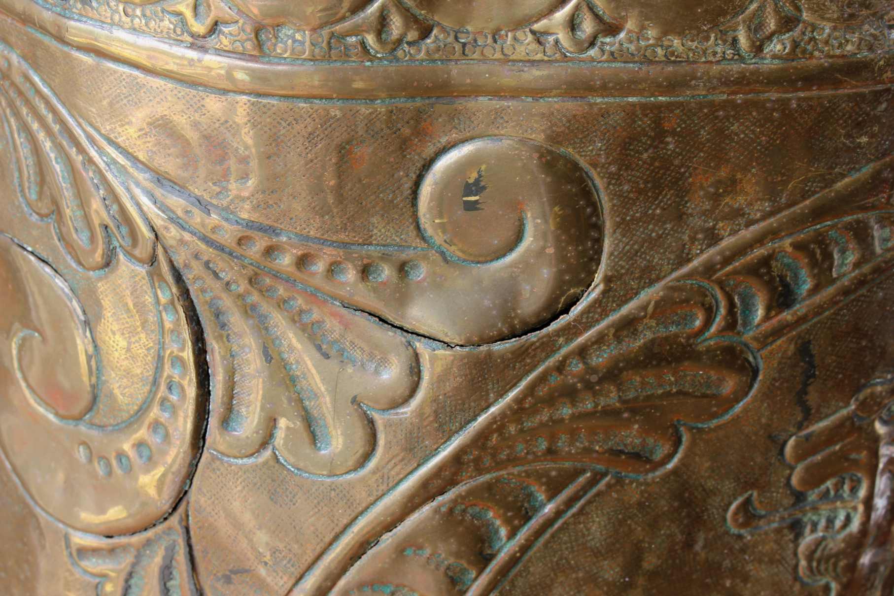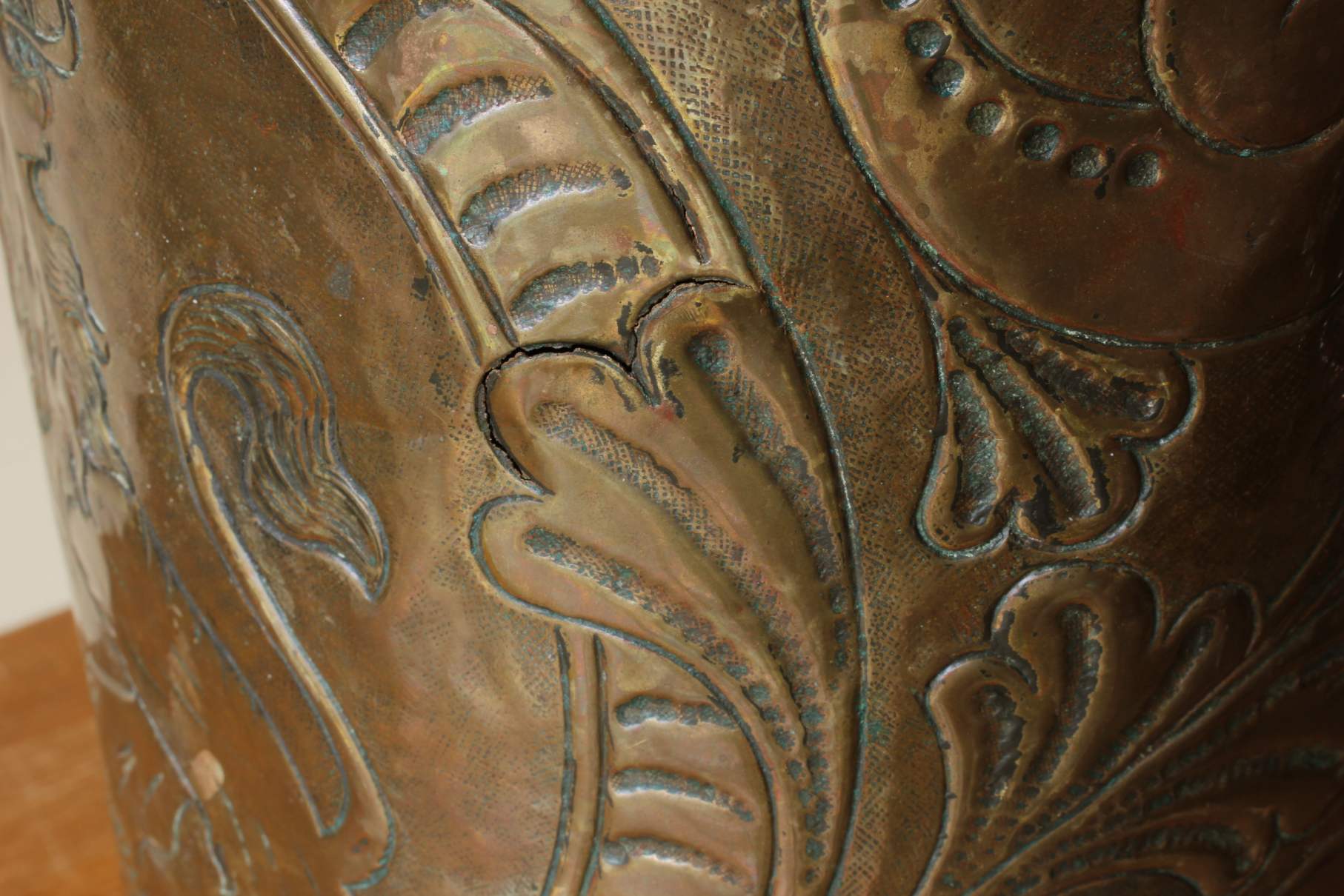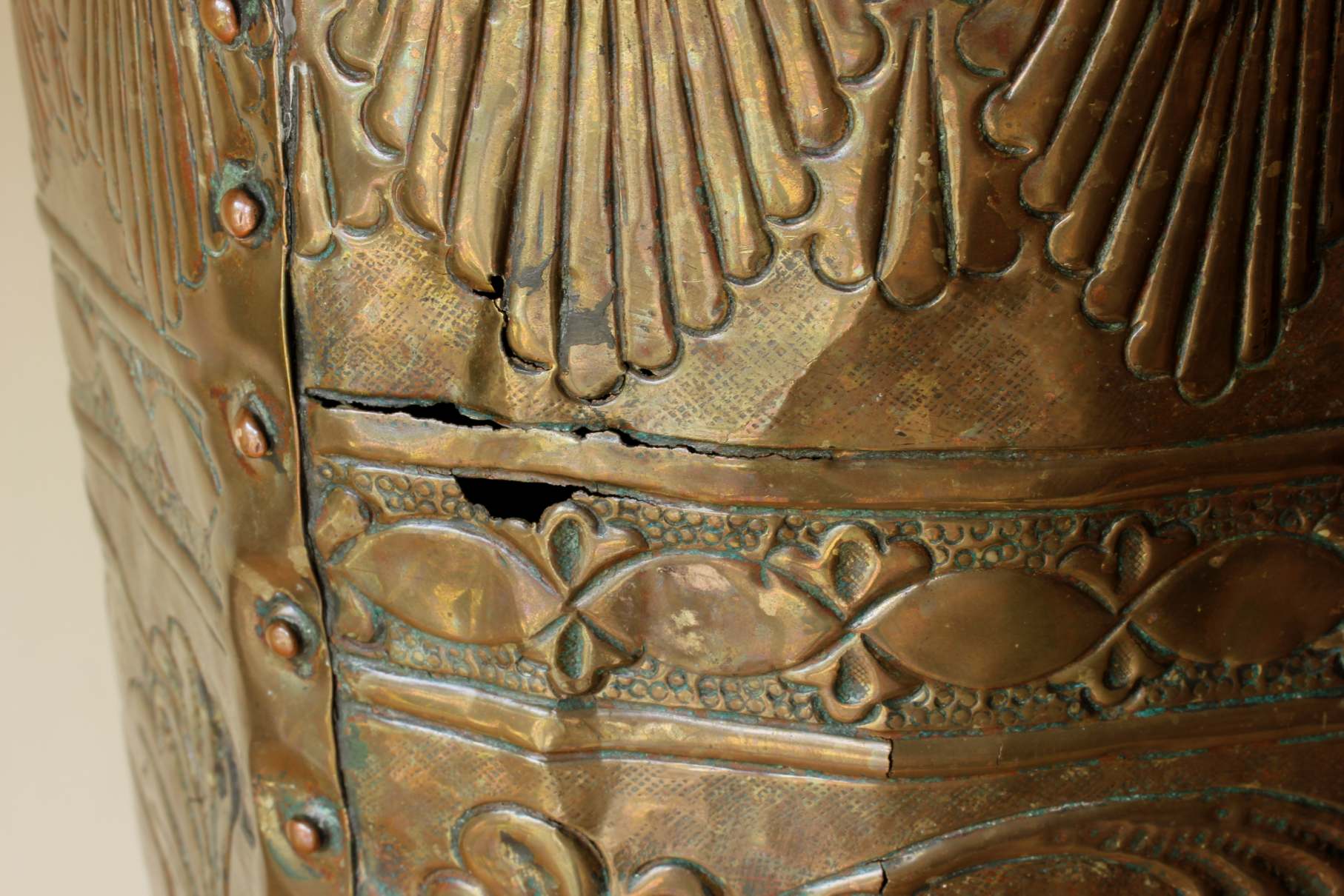 This large handsome antique brass umbrella / stick stand which was made in Netherlands dates from the beginning of the 20th century.