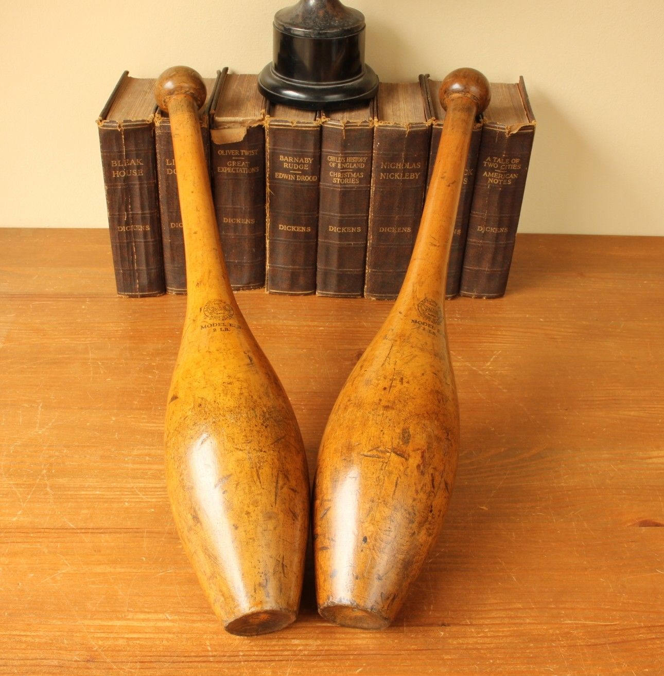 This stunning pair of antique hand made wooden Indian clubs or exercise meels which date from the early 20th century weigh approx 820 grams each and are approx 48 cm - 19" in length.