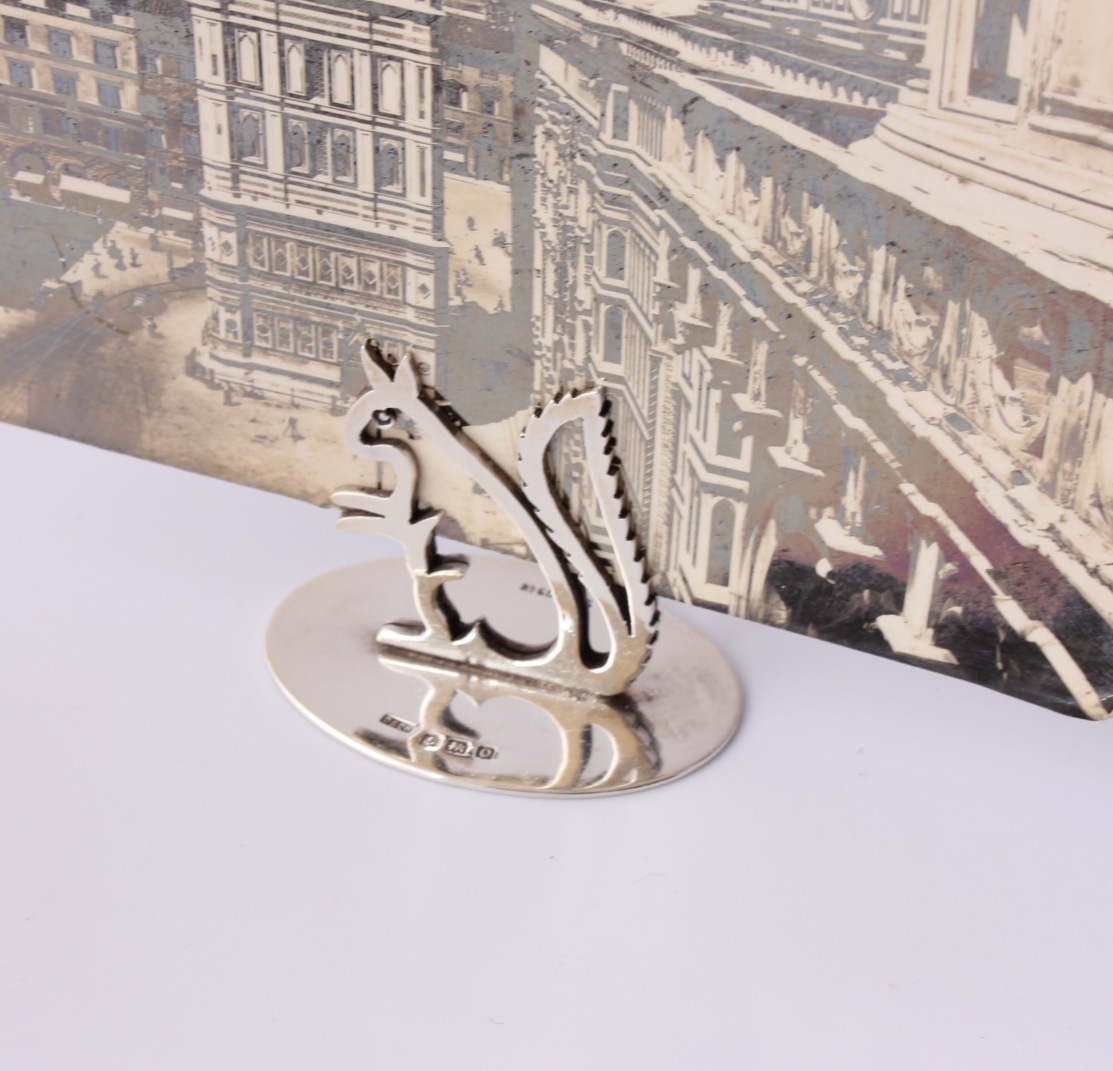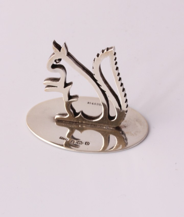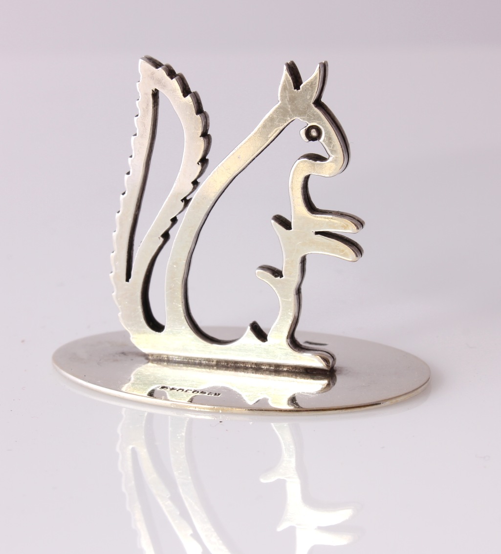 This menu holder which is designed as a squirrel on an oval base could also be used to display a photograph, business card or party invitation and looks very nice on display just on it's own.