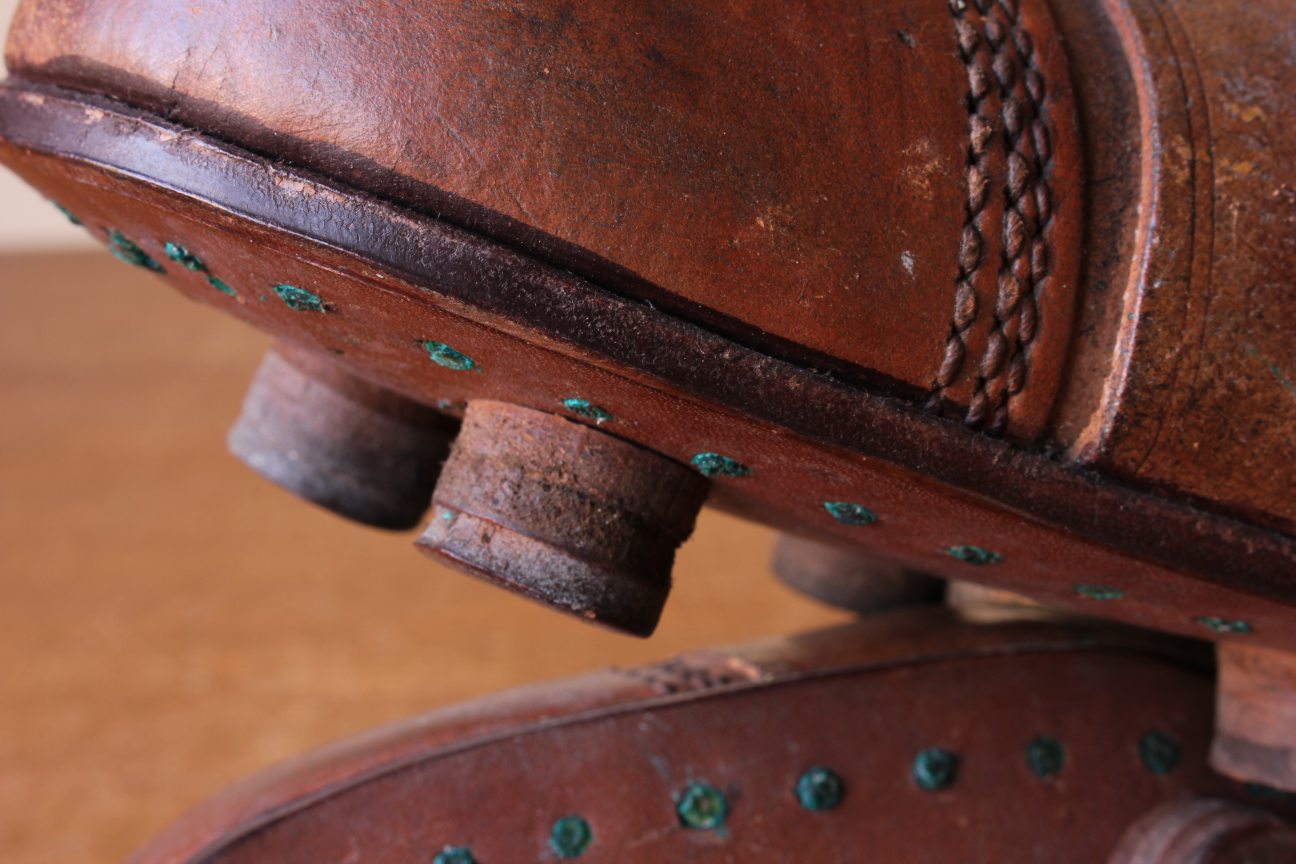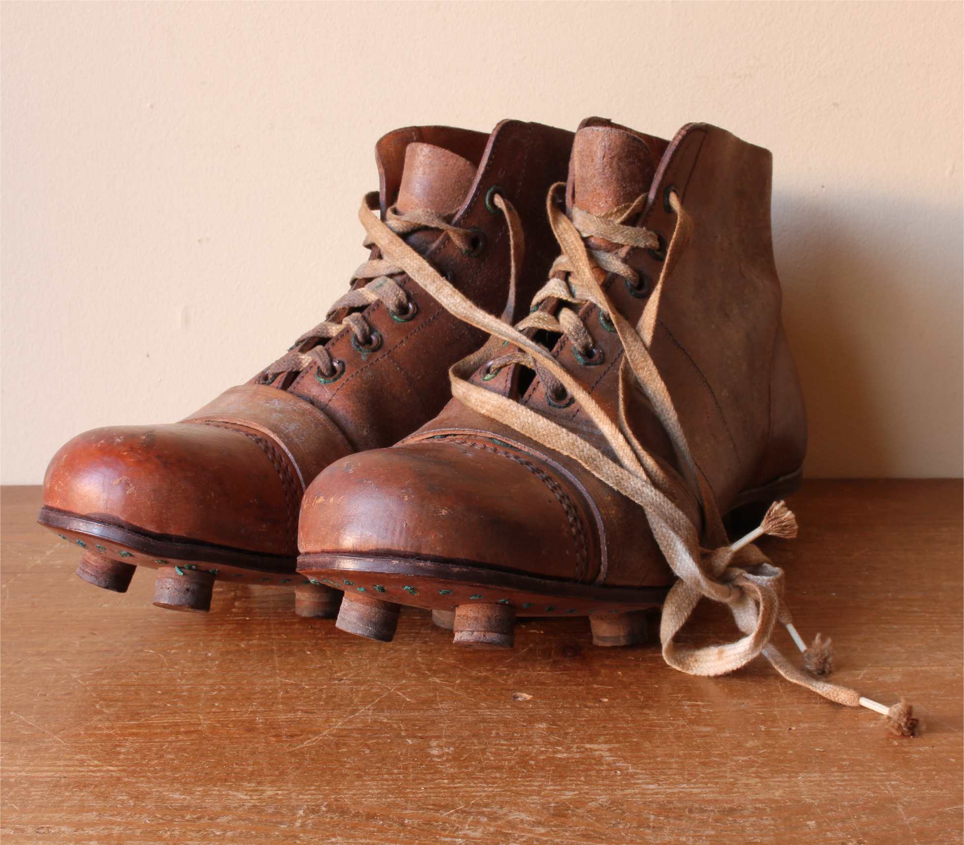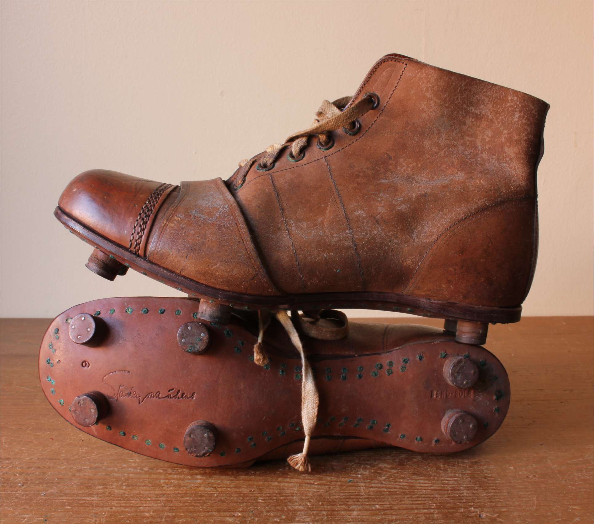 This original vintage pair of Stanley Matthews football boots which are made of brown leather with leather soles and nailed on studs date from the 1950's and are by CWS.