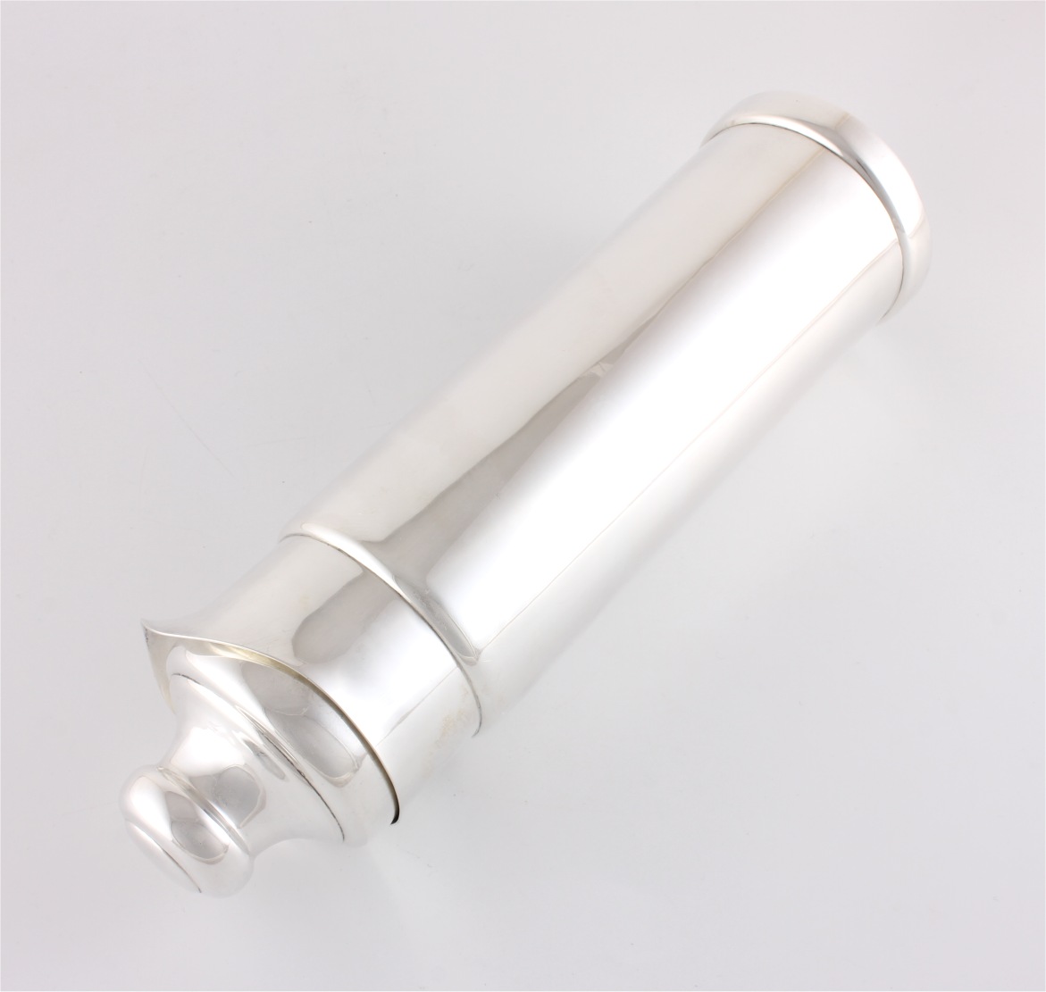 This fabulous American Art Deco cocktail shaker which is made of sterling silver dates from the 1930's and is made by Frank W. Smith Silver Company.