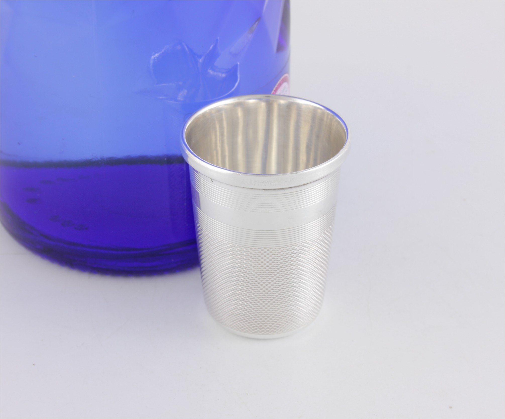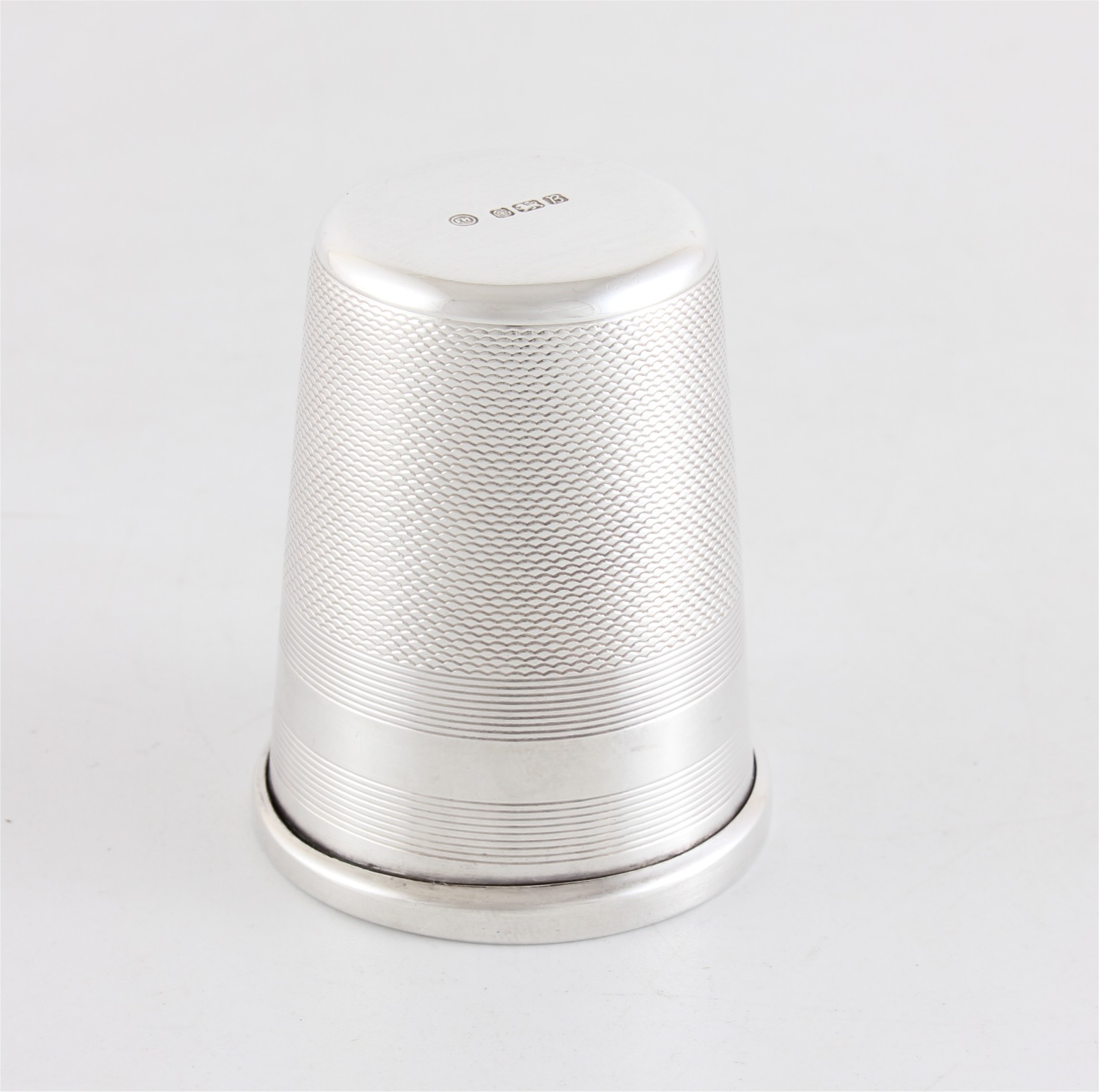 This handsome solid silver drinks spirit measure which is in the form of a large thimble is made by Francis Howard and is nicely hallmarked on the base for Sterling Silver Sheffield 1976.