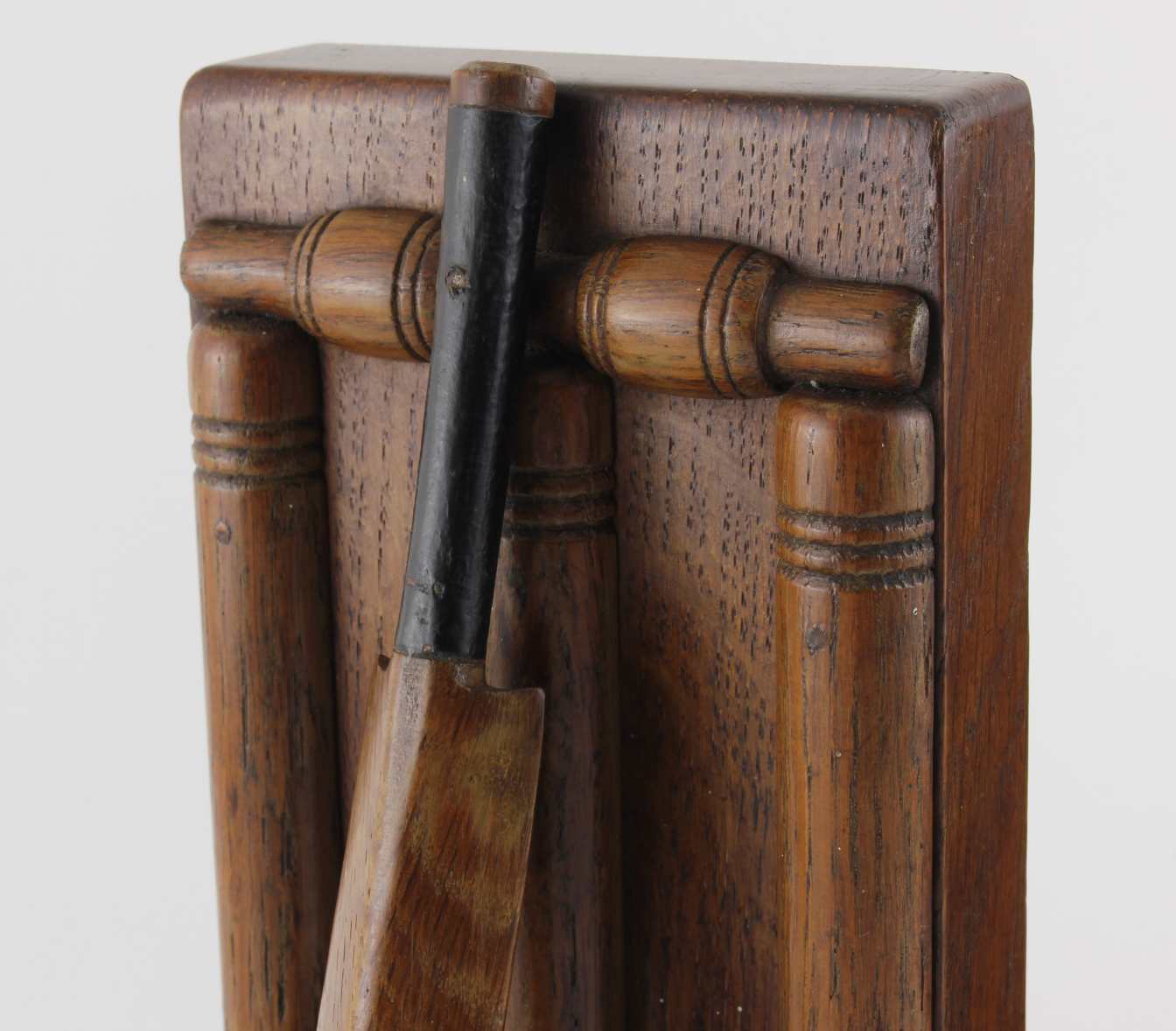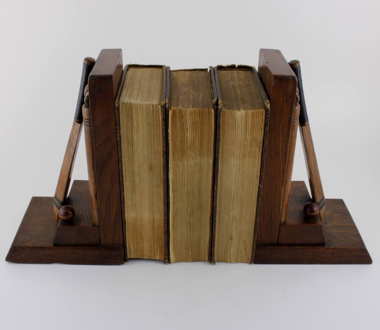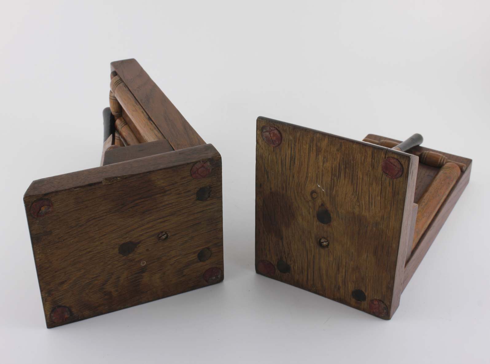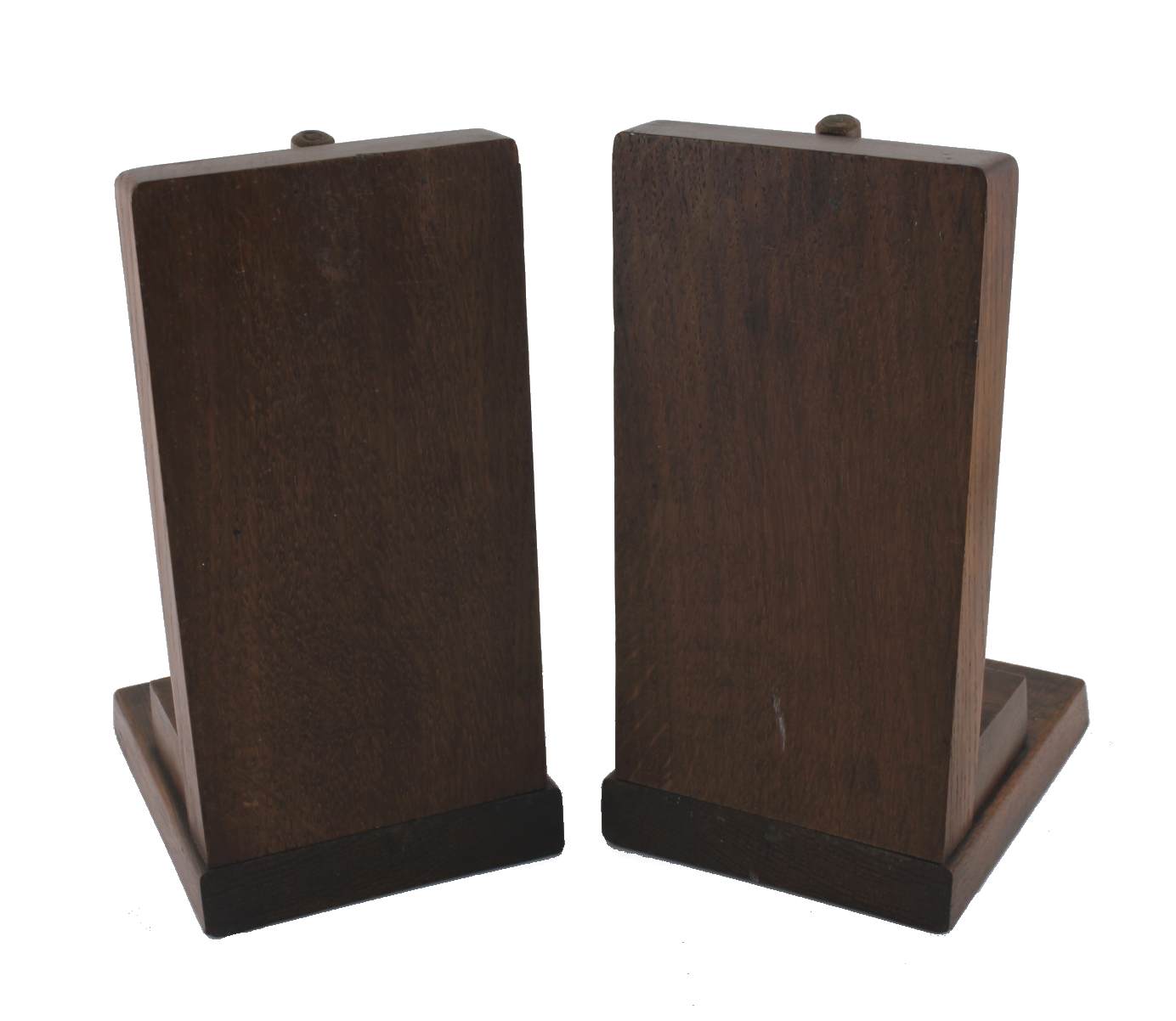 This handsome pair of Art Deco bookends which were handmade by the Thornton-Smith Company in the 1930's are made of oak, have wonderful details and are in the form of cricket stumps with miniature bats and red cricket balls.