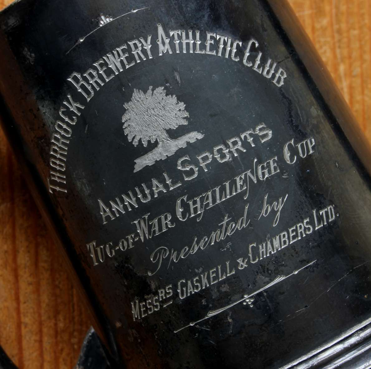 Thorrock Brewery Athletic Club. Annual Sports. Tug-Of-War Challenge Cup. Presented by Messrs. Gaskell & Chambers Ltd.