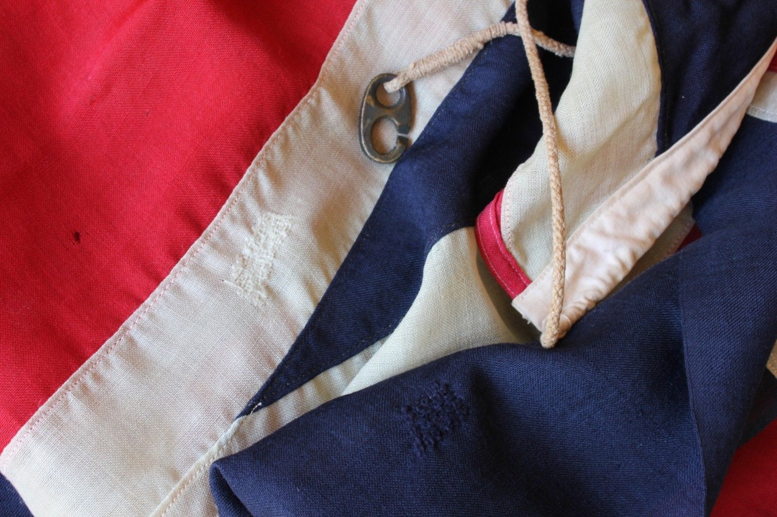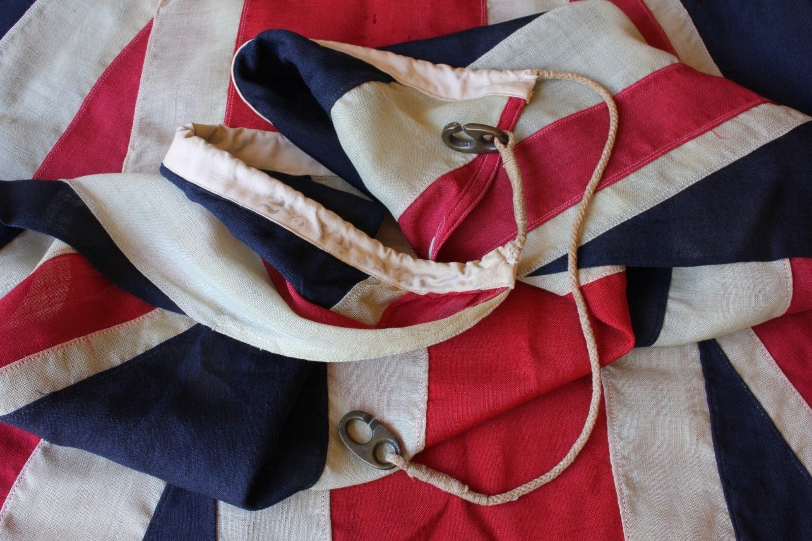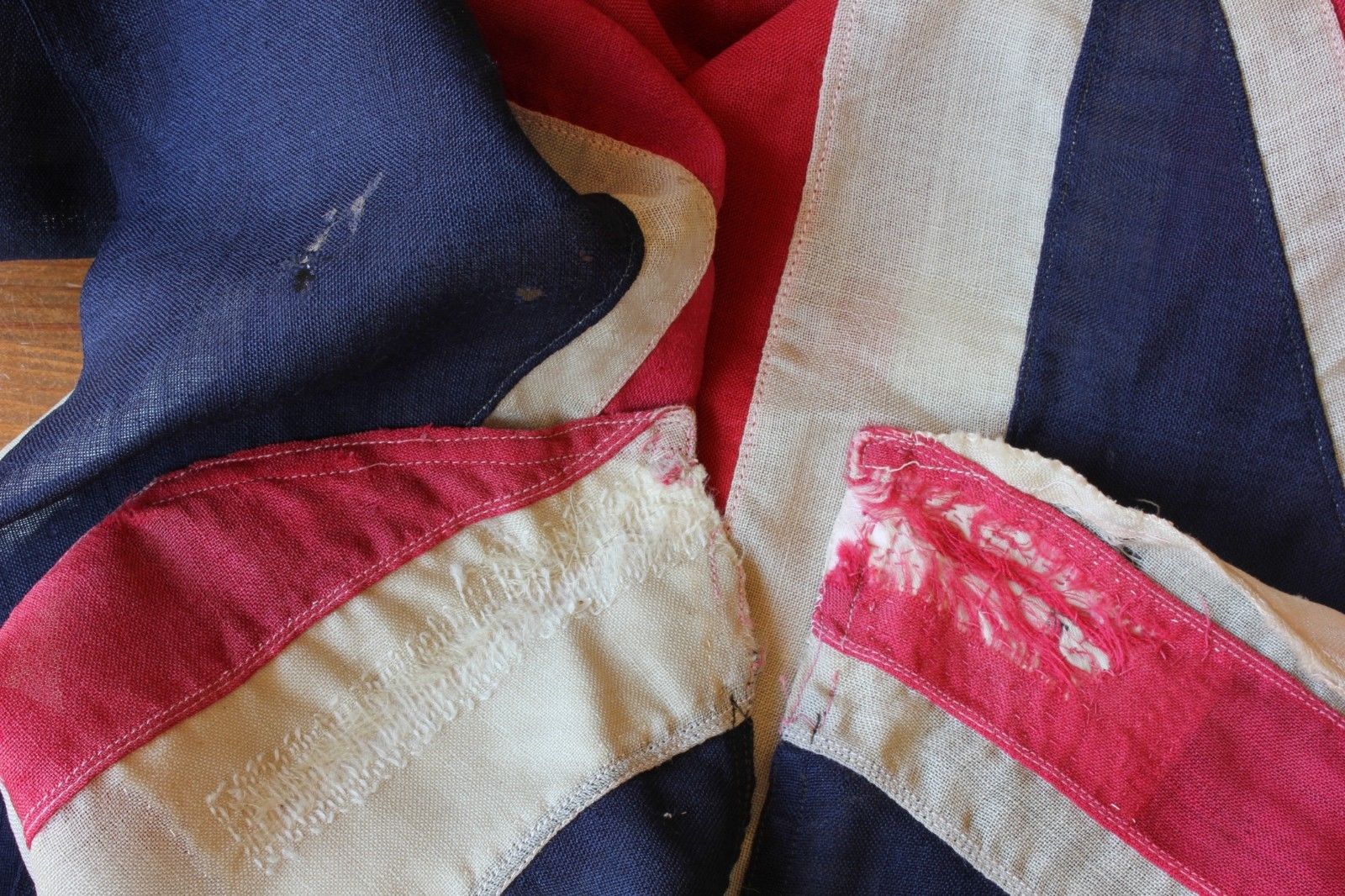 This large original period manufactured Union Jack Flag with each segment individually sewn has halyard rope and bronze inglefield clips.